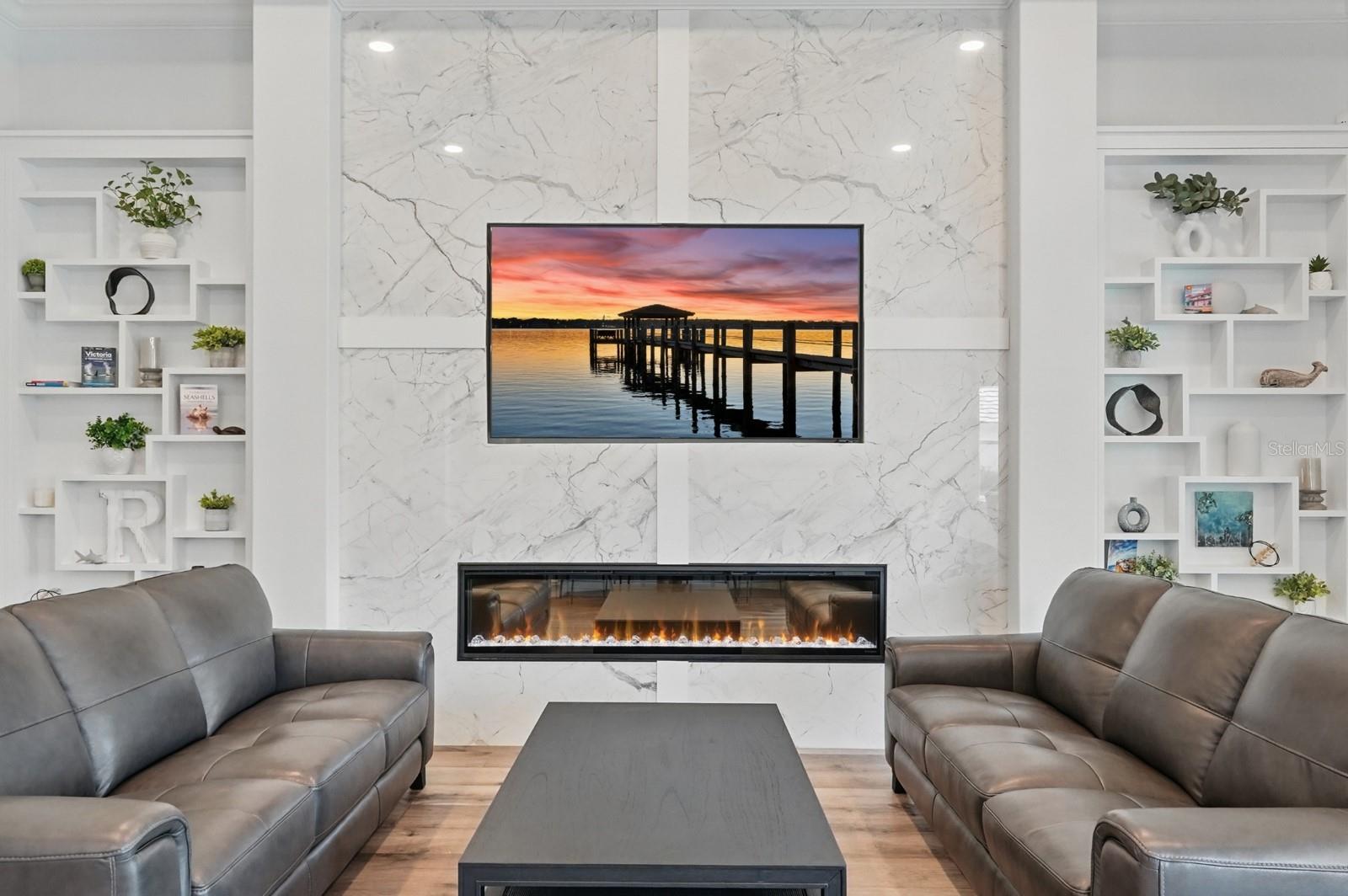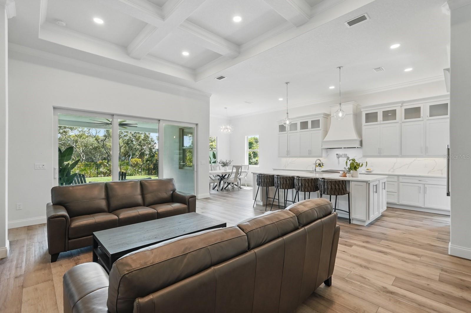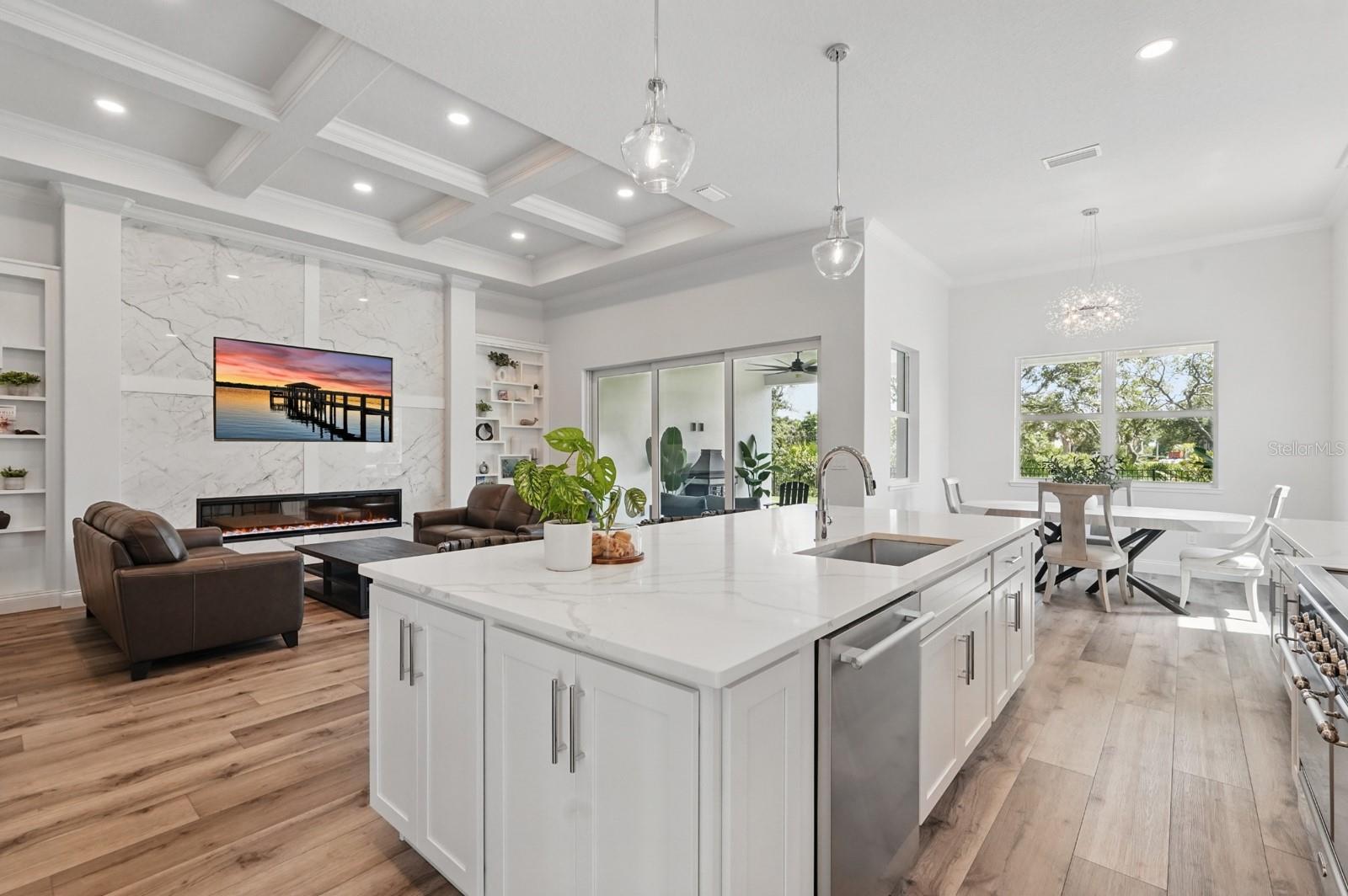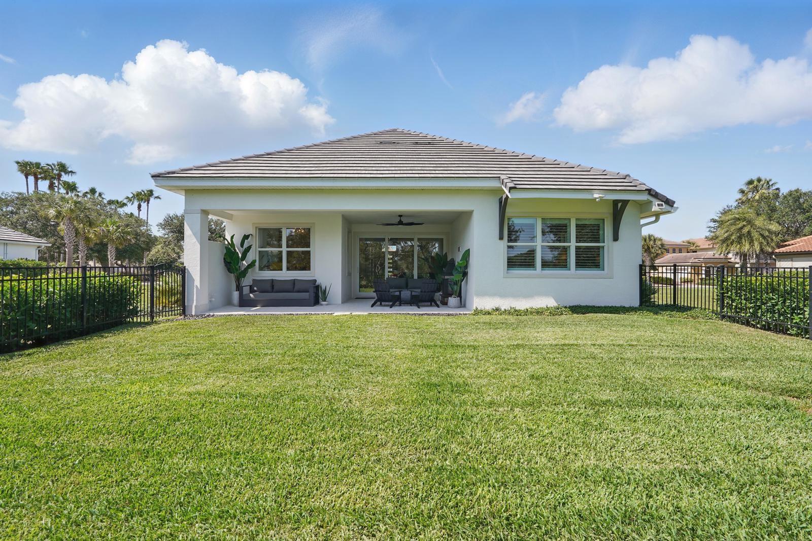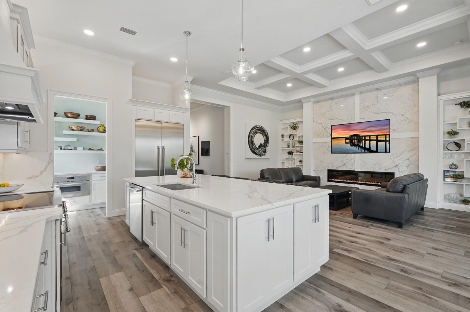 This is the one you've been waiting for! Welcome to 17 Kingfisher Lane, a breathtaking single-story home that combines modern sophistication with coastal charm, just steps from the beach! This coastal sanctuary offers stylish contemporary design features and views of the famous Jack Nicklaus Signature Ocean Course, less than 1/2 of a mile from the ocean. Built in 2023, this pristine home is practically brand-new, and offers 3 spacious bedrooms plus a dedicated office across 2,438 luxurious sq. ft. under air. Step inside through the striking front door and you'll be greeted by soaring 12-foot ceilings, elegant crown molding, and luxury vinyl plank flooring throughout. Natural light fills the open-concept living area thanks to large impact-glass windows and an 8-foot, three-panel sliding door that seamlessly connects the interior to the outdoor living space. The chef’s kitchen is a true showpiece, featuring custom soft-close cabinetry, quartz countertops and backsplash, a large island with four-sided storage, and high-end stainless-steel appliances - the refrigerator, dishwasher and microwave are Thermador and the range/oven is Ilvey. A stylish open pantry with floating shelves and a microwave station adds both functionality and design appeal. The family room centers around a dramatic linear fireplace, beautifully framed in 48” porcelain slabs with a recessed TV. Flanking the fireplace are two custom-built bookcases made of exotic Benack wood imported from Brazil—one of which cleverly conceals a hidden passage to the serene primary suite! The master bedroom is a private retreat with a spa-inspired ensuite bathroom showcasing modern tile floors, a double vanity with quartz counters, sconce lighting, a large walk-in shower, and a private water closet. Additional highlights of the home include a beautiful office space, plush guest suite with ensuite bathroom, and a versatile bonus room that could be utilized as a den or 3rd bedroom. Situated along the 3rd hole of the renowned Ocean Course, the home offers fairway views from its expansive covered lanai. The spacious fenced-in backyard has ample room for the young ones or furry friends. Or design your own pool and create the oasis of your dreams. Outdoor fireplace and the potential for a full summer kitchen make this the perfect place for entertaining friends and family. Located just 0.4 miles from the ocean, in the prestigious gated community of Ocean Hammock, this home allows you to enjoy daily ocean breezes and the soothing sound of waves. Walk to the beach or take a short trip to nearby Hammock Beach Resort. Explore Florida’s top state parks, trails, and marinas, or enjoy the convenience of being just 35 minutes to St. Augustine and 30 minutes to Daytona Beach. This jaw-dropping one-of-a-kind home won't last- don't delay!