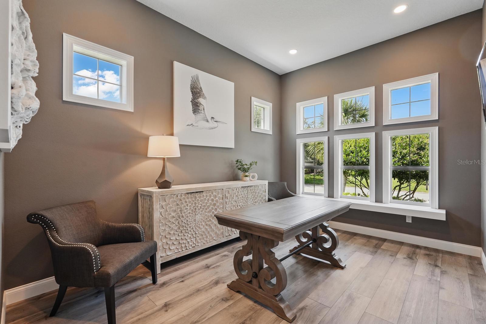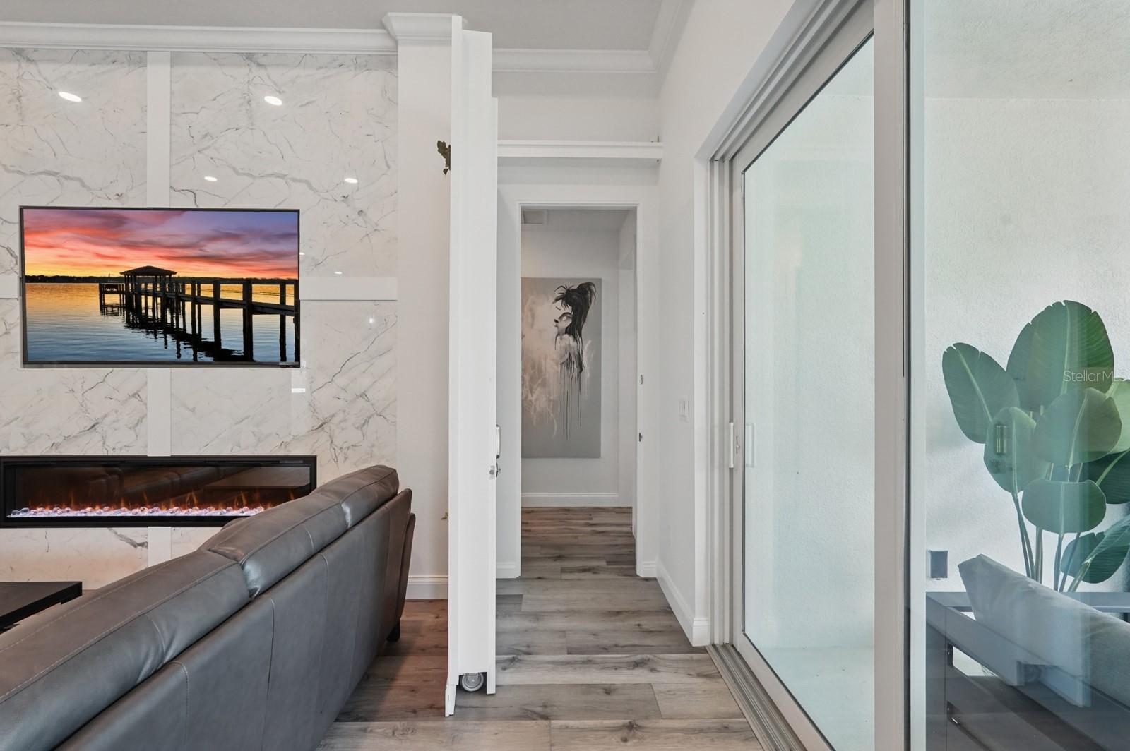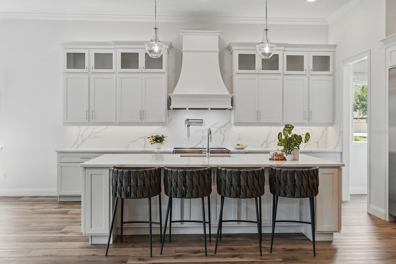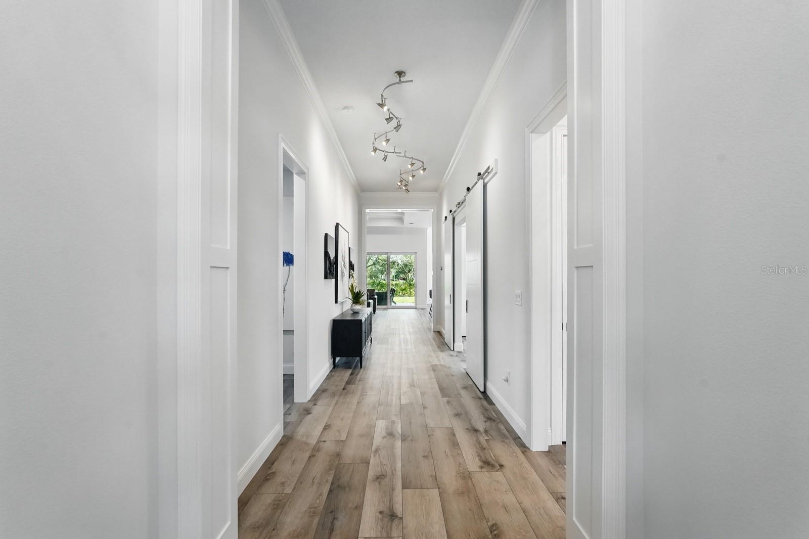 This is the one you've been waiting for! Welcome to 17 Kingfisher Lane, a breathtaking single-story home that combines modern sophistication with coastal charm, just steps from the beach! This coastal sanctuary offers stylish contemporary design features and views of the famous Jack Nicklaus Signature Ocean Course, less than 1/2 of a mile from the ocean. Built in 2023, this pristine home is practically brand-new, and offers 3 spacious bedrooms plus a dedicated office across 2,438 luxurious sq. ft. under air. Step inside through the striking front door and you'll be greeted by soaring 12-foot ceilings, elegant crown molding, and luxury vinyl plank flooring throughout. Natural light fills the open-concept living area thanks to large impact-glass windows and an 8-foot, three-panel sliding door that seamlessly connects the interior to the outdoor living space. The chef’s kitchen is a true showpiece, featuring custom soft-close cabinetry, quartz countertops and backsplash, a large island with four-sided storage, and high-end stainless-steel appliances - the refrigerator, dishwasher and microwave are Thermador and the range/oven is Ilvey. A stylish open pantry with floating shelves and a microwave station adds both functionality and design appeal. The family room centers around a dramatic linear fireplace, beautifully framed in 48” porcelain slabs with a recessed TV. Flanking the fireplace are two custom-built bookcases made of exotic Benack wood imported from Brazil—one of which cleverly conceals a hidden passage to the serene primary suite! The master bedroom is a private retreat with a spa-inspired ensuite bathroom showcasing modern tile floors, a double vanity with quartz counters, sconce lighting, a large walk-in shower, and a private water closet. Additional highlights of the home include a beautiful office space, plush guest suite with ensuite bathroom, and a versatile bonus room that could be utilized as a den or 3rd bedroom. Situated along the 3rd hole of the renowned Ocean Course, the home offers fairway views from its expansive covered lanai. The spacious fenced-in backyard has ample room for the young ones or furry friends. Or design your own pool and create the oasis of your dreams. Outdoor fireplace and the potential for a full summer kitchen make this the perfect place for entertaining friends and family. Located just 0.4 miles from the ocean, in the prestigious gated community of Ocean Hammock, this home allows you to enjoy daily ocean breezes and the soothing sound of waves. Walk to the beach or take a short trip to nearby Hammock Beach Resort. Explore Florida’s top state parks, trails, and marinas, or enjoy the convenience of being just 35 minutes to St. Augustine and 30 minutes to Daytona Beach. This jaw-dropping one-of-a-kind home won't last- don't delay!