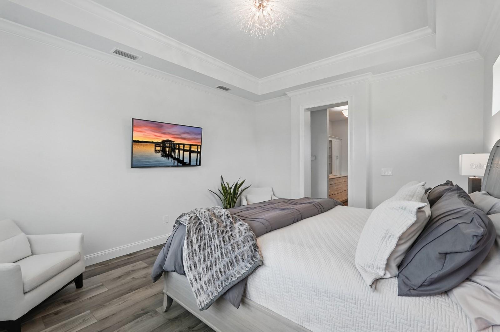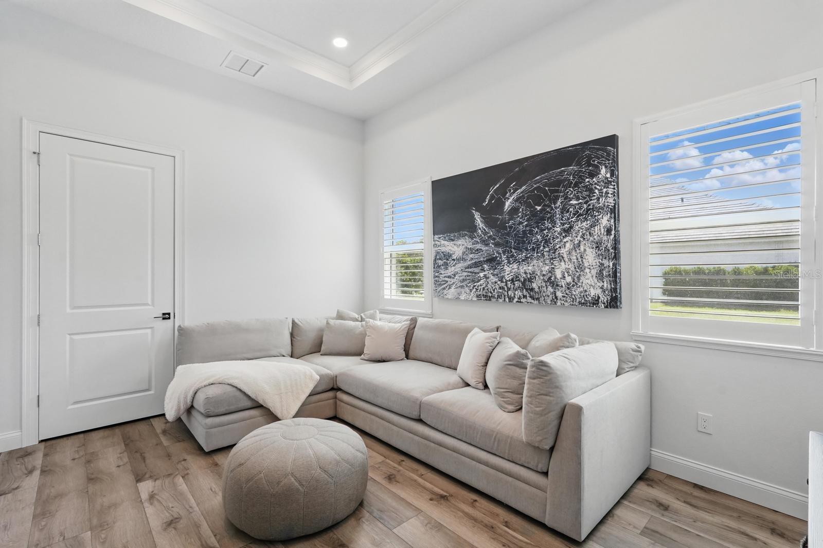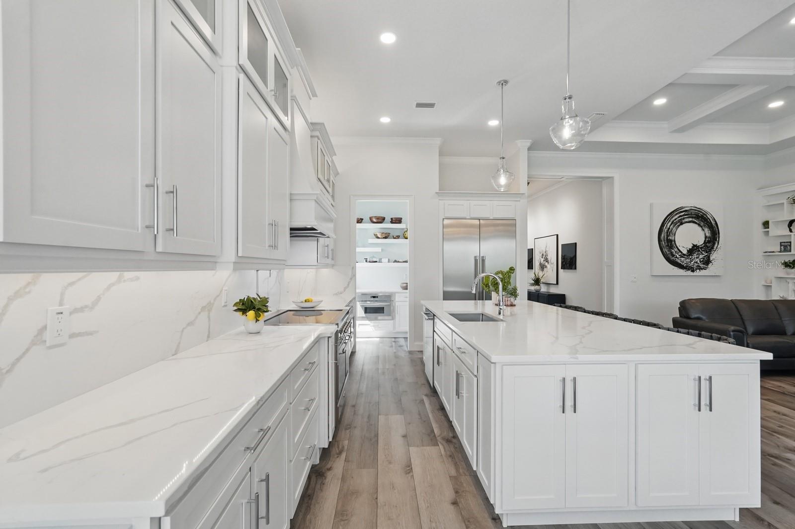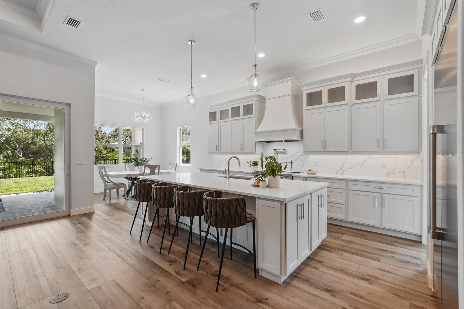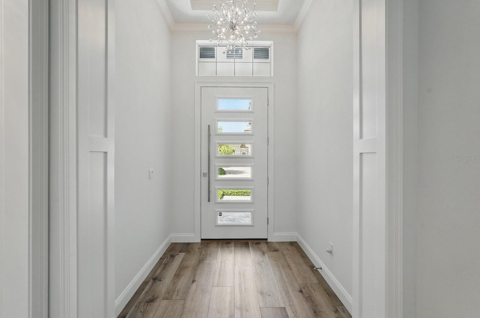 This is the one you've been waiting for! Welcome to 17 Kingfisher Lane, a breathtaking single-story home that combines modern sophistication with coastal charm, just steps from the beach! This coastal sanctuary offers stylish contemporary design features and views of the famous Jack Nicklaus Signature Ocean Course, less than 1/2 of a mile from the ocean. Built in 2023, this pristine home is practically brand-new, and offers 3 spacious bedrooms plus a dedicated office across 2,438 luxurious sq. ft. under air. Step inside through the striking front door and you'll be greeted by soaring 12-foot ceilings, elegant crown molding, and luxury vinyl plank flooring throughout. Natural light fills the open-concept living area thanks to large impact-glass windows and an 8-foot, three-panel sliding door that seamlessly connects the interior to the outdoor living space. The chef’s kitchen is a true showpiece, featuring custom soft-close cabinetry, quartz countertops and backsplash, a large island with four-sided storage, and high-end stainless-steel appliances - the refrigerator, dishwasher and microwave are Thermador and the range/oven is Ilvey. A stylish open pantry with floating shelves and a microwave station adds both functionality and design appeal. The family room centers around a dramatic linear fireplace, beautifully framed in 48” porcelain slabs with a recessed TV. Flanking the fireplace are two custom-built bookcases made of exotic Benack wood imported from Brazil—one of which cleverly conceals a hidden passage to the serene primary suite! The master bedroom is a private retreat with a spa-inspired ensuite bathroom showcasing modern tile floors, a double vanity with quartz counters, sconce lighting, a large walk-in shower, and a private water closet. Additional highlights of the home include a beautiful office space, plush guest suite with ensuite bathroom, and a versatile bonus room that could be utilized as a den or 3rd bedroom. Situated along the 3rd hole of the renowned Ocean Course, the home offers fairway views from its expansive covered lanai. The spacious fenced-in backyard has ample room for the young ones or furry friends. Or design your own pool and create the oasis of your dreams. Outdoor fireplace and the potential for a full summer kitchen make this the perfect place for entertaining friends and family. Located just 0.4 miles from the ocean, in the prestigious gated community of Ocean Hammock, this home allows you to enjoy daily ocean breezes and the soothing sound of waves. Walk to the beach or take a short trip to nearby Hammock Beach Resort. Explore Florida’s top state parks, trails, and marinas, or enjoy the convenience of being just 35 minutes to St. Augustine and 30 minutes to Daytona Beach. This jaw-dropping one-of-a-kind home won't last- don't delay!
