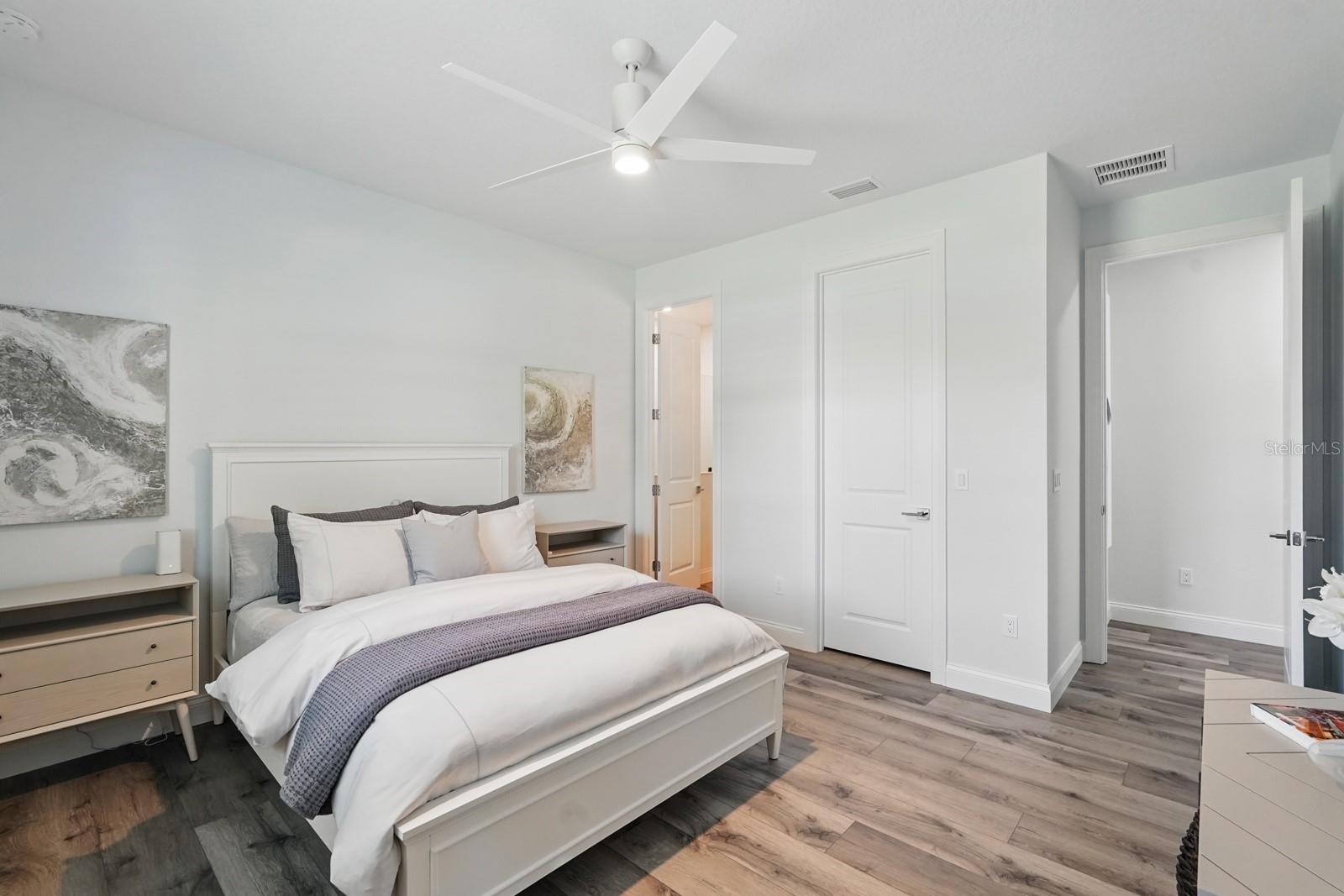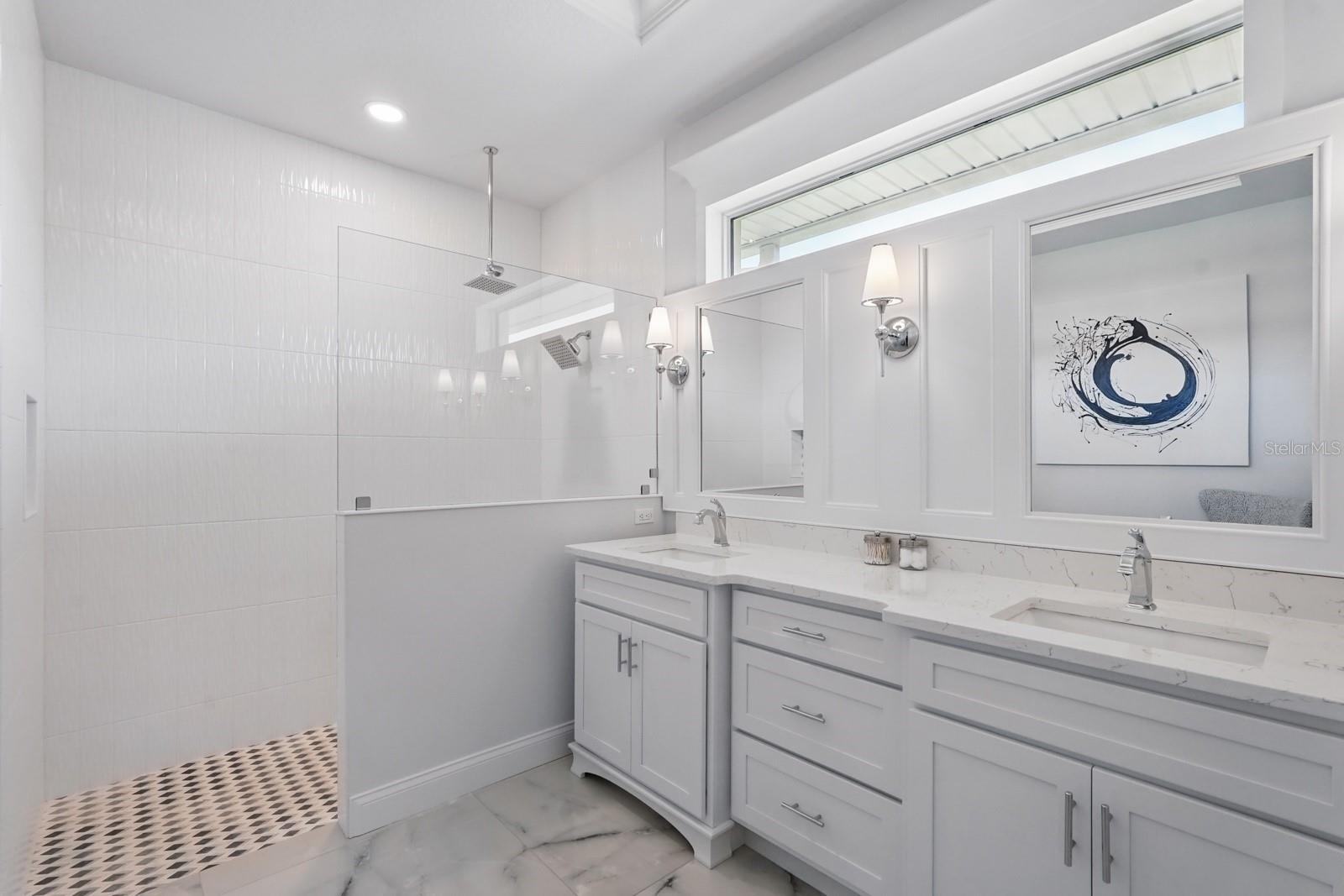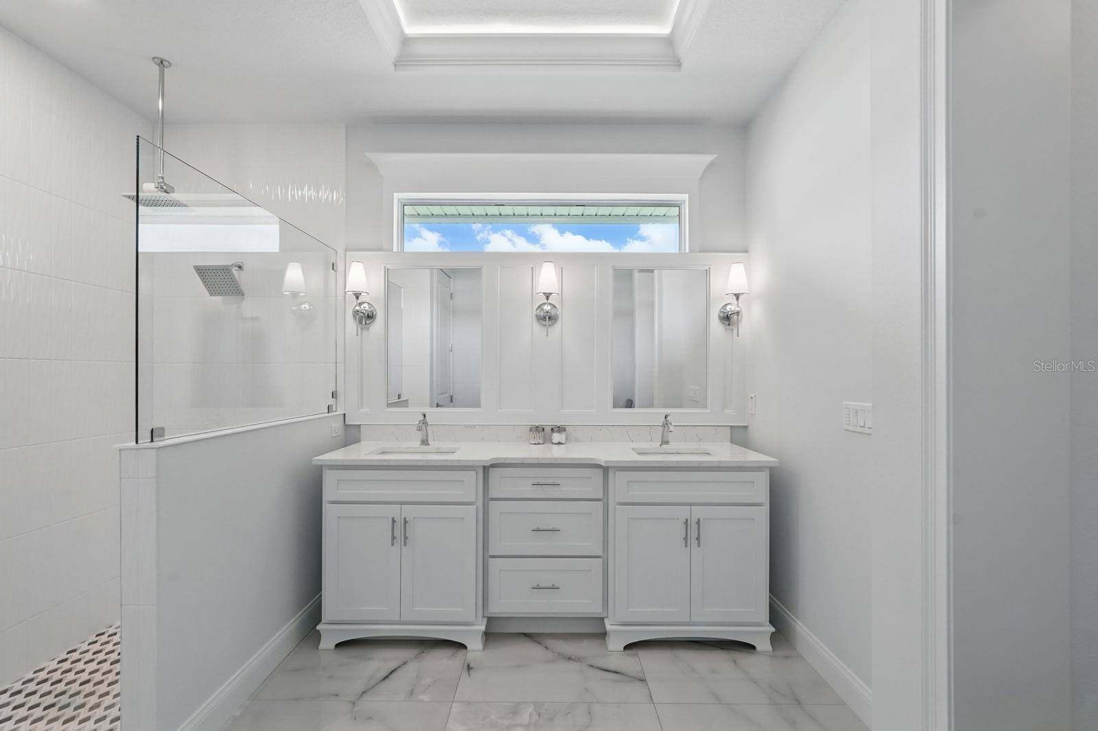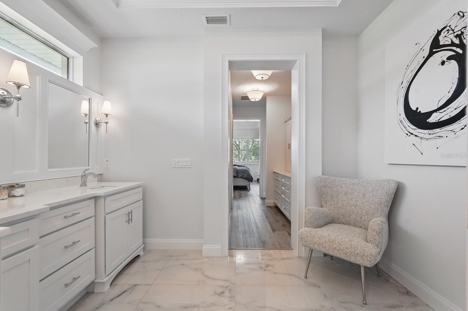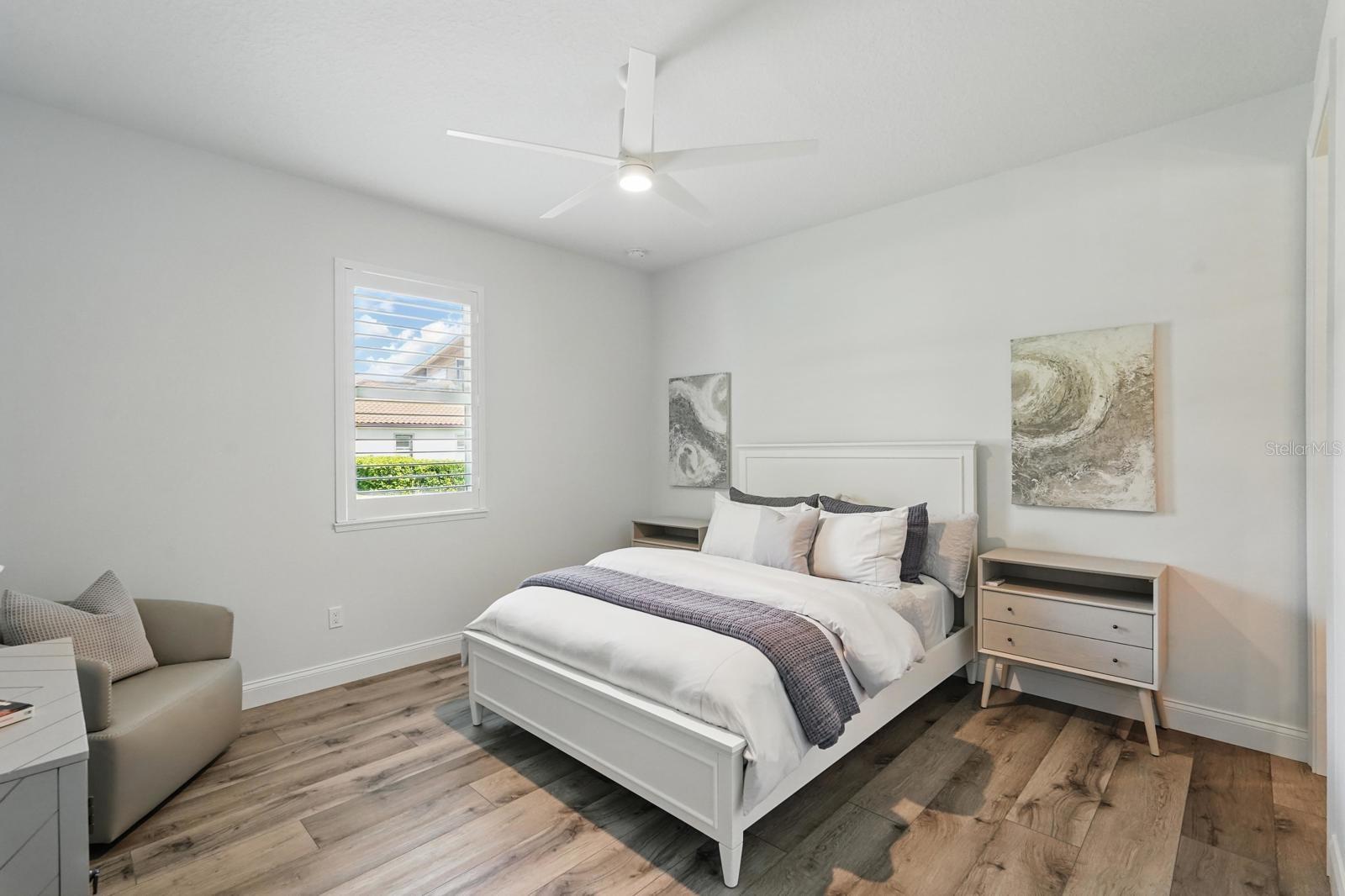 This is the one you've been waiting for! Welcome to 17 Kingfisher Lane, a breathtaking single-story home that combines modern sophistication with coastal charm, just steps from the beach! This coastal sanctuary offers stylish contemporary design features and views of the famous Jack Nicklaus Signature Ocean Course, less than 1/2 of a mile from the ocean. Built in 2023, this pristine home is practically brand-new, and offers 3 spacious bedrooms plus a dedicated office across 2,438 luxurious sq. ft. under air. Step inside through the striking front door and you'll be greeted by soaring 12-foot ceilings, elegant crown molding, and luxury vinyl plank flooring throughout. Natural light fills the open-concept living area thanks to large impact-glass windows and an 8-foot, three-panel sliding door that seamlessly connects the interior to the outdoor living space. The chef’s kitchen is a true showpiece, featuring custom soft-close cabinetry, quartz countertops and backsplash, a large island with four-sided storage, and high-end stainless-steel appliances - the refrigerator, dishwasher and microwave are Thermador and the range/oven is Ilvey. A stylish open pantry with floating shelves and a microwave station adds both functionality and design appeal. The family room centers around a dramatic linear fireplace, beautifully framed in 48” porcelain slabs with a recessed TV. Flanking the fireplace are two custom-built bookcases made of exotic Benack wood imported from Brazil—one of which cleverly conceals a hidden passage to the serene primary suite! The master bedroom is a private retreat with a spa-inspired ensuite bathroom showcasing modern tile floors, a double vanity with quartz counters, sconce lighting, a large walk-in shower, and a private water closet. Additional highlights of the home include a beautiful office space, plush guest suite with ensuite bathroom, and a versatile bonus room that could be utilized as a den or 3rd bedroom. Situated along the 3rd hole of the renowned Ocean Course, the home offers fairway views from its expansive covered lanai. The spacious fenced-in backyard has ample room for the young ones or furry friends. Or design your own pool and create the oasis of your dreams. Outdoor fireplace and the potential for a full summer kitchen make this the perfect place for entertaining friends and family. Located just 0.4 miles from the ocean, in the prestigious gated community of Ocean Hammock, this home allows you to enjoy daily ocean breezes and the soothing sound of waves. Walk to the beach or take a short trip to nearby Hammock Beach Resort. Explore Florida’s top state parks, trails, and marinas, or enjoy the convenience of being just 35 minutes to St. Augustine and 30 minutes to Daytona Beach. This jaw-dropping one-of-a-kind home won't last- don't delay!