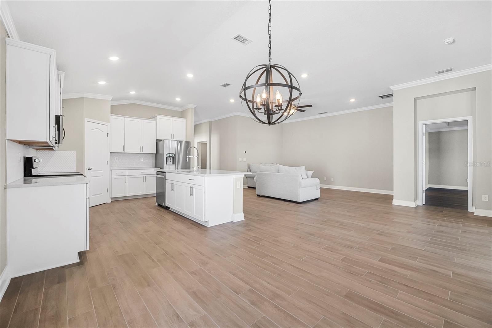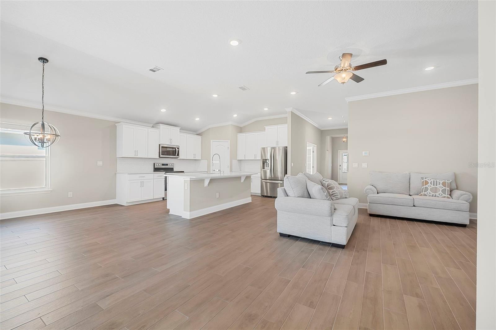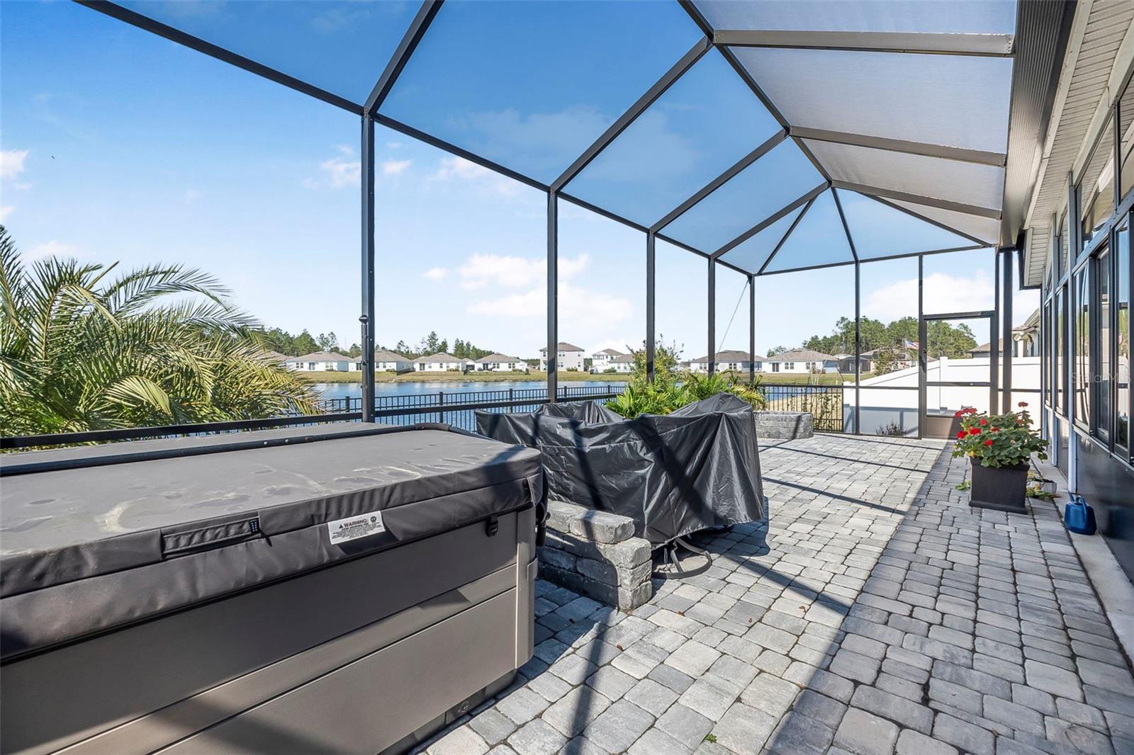Walk into this serene family retreat nestled in the heart of Palm Coast. This exquisite single-family residence boasts an expansive open floor plan tailored for family comfort and entertaining. With four generously sized bedrooms and three well-appointed bathrooms, this home offers plenty of space for a growing family. The heart of the home is the chef-inspired kitchen, complete with sleek stainless steel appliances, a large island for meal preps and gatherings, and an abundance of natural light. The easy-to-maintain tile flooring throughout ensures a pristine look with minimal effort. Step into luxury with a primary suite designed to be your private sanctuary, featuring a spacious walk-in closet and a large walk-in shower for ultimate relaxation. The additional office space, enclosed by elegant French doors, provides a quiet corner for work or study. But the real gem is the outdoor living space. A bonus Florida room, and a screened lanai with a cozy fire pit and spa, overlooks a tranquil pond setting, perfect for unwinding after a long day. The fully fenced backyard ensures privacy and safety for anyone. The home sits near the end of a cul de sac. Come home to a place where every day feels like a vacation in this ideal setting for creating family memories.