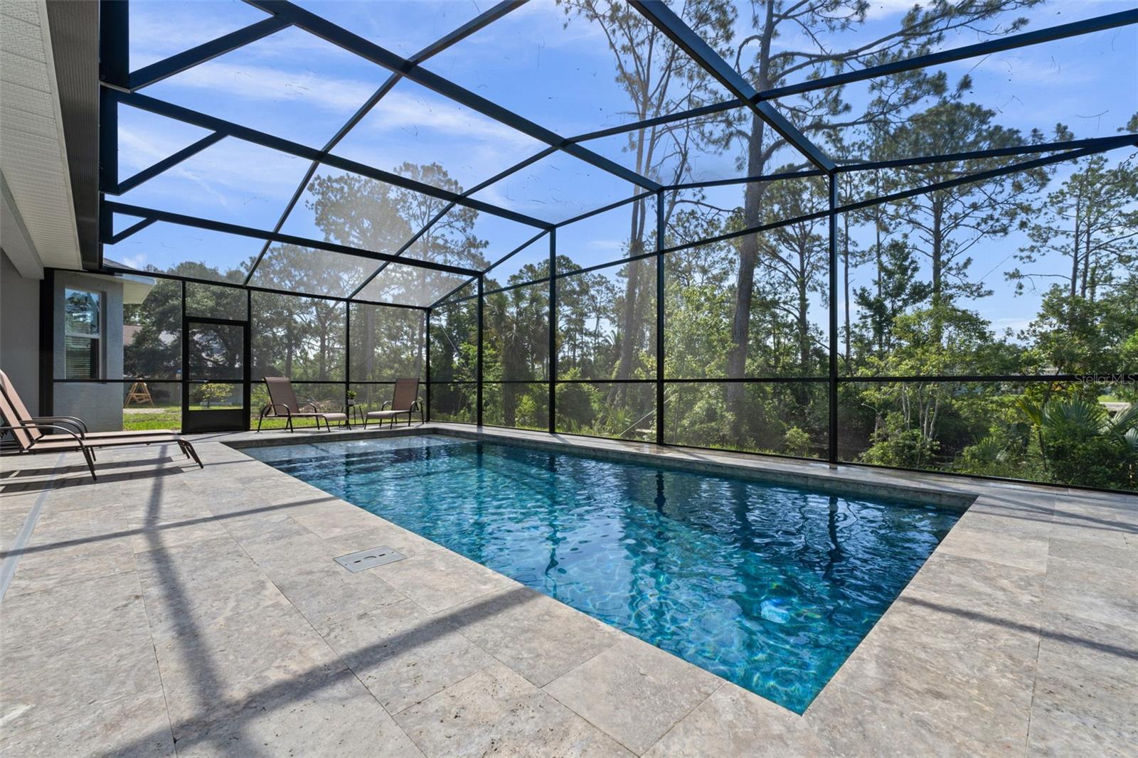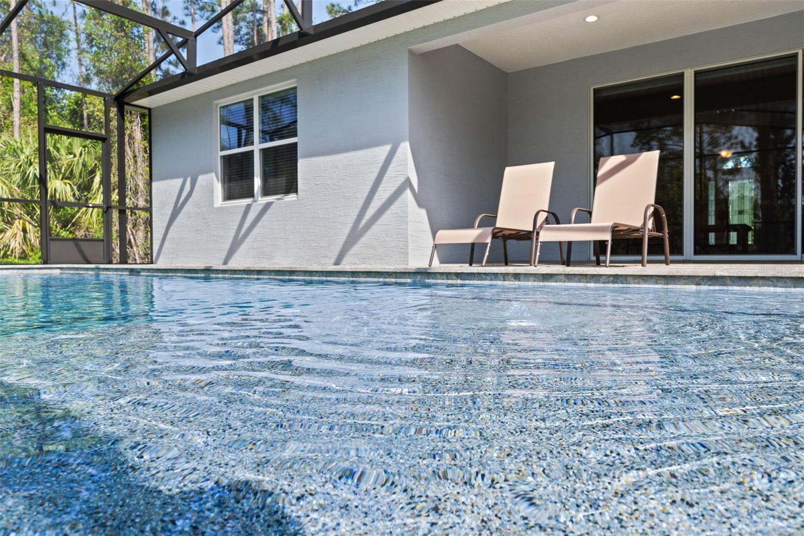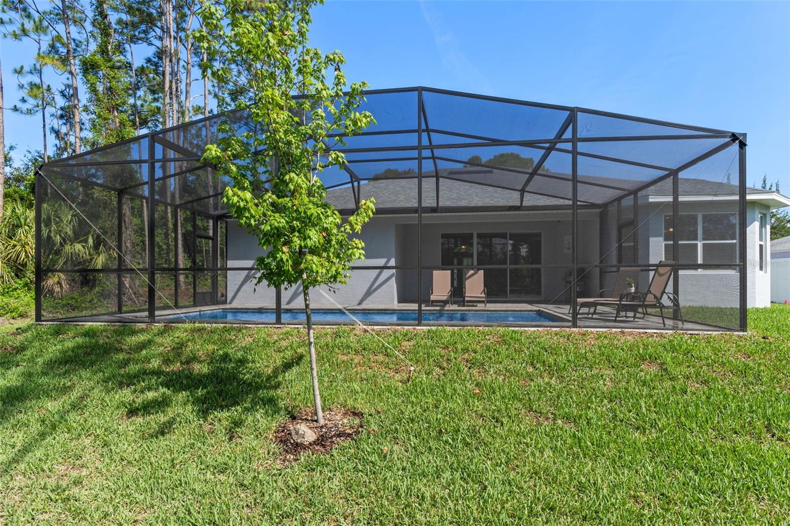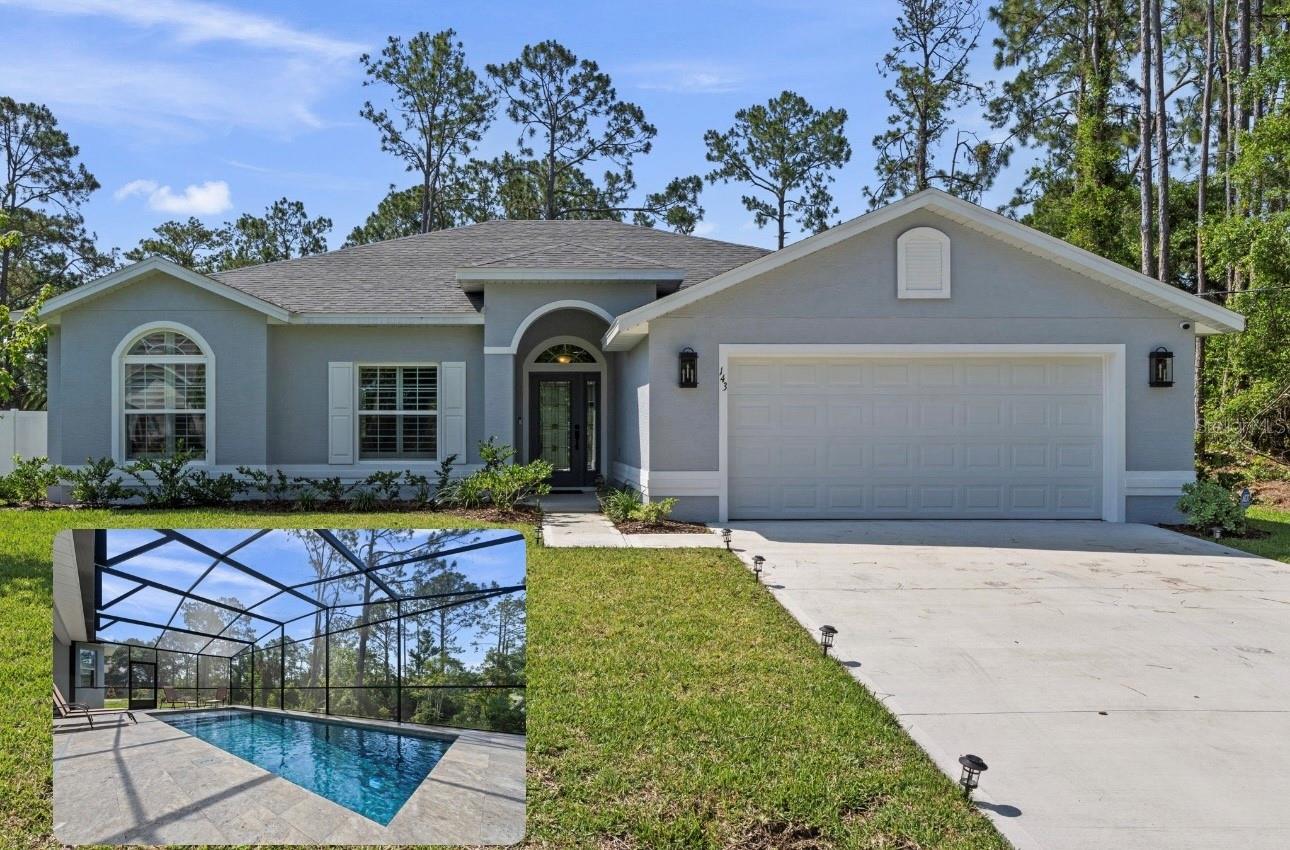 Welcome to this exceptional furnished Captiva II model by SeaGate Homes, built in August 2024 and meticulously cared for by its original owner. Thoughtfully upgraded inside and out, this home offers a rare combination of modern design, high-end finishes, and true Florida living. The heart of the home is an open-concept layout featuring a spacious great room and a stylish kitchen with a flush island, quartz countertops, 42-inch staggered cabinets with crown molding, and a charming bay window in the café. Luxury ceramic tile flows throughout the main living areas, and the private owner’s suite includes a generous walk-in closet, raised dual vanity, and upgraded cabinetry. Step outside and discover your personal oasis: a recently added saltwater pool by Agua Contractors, complete with a step-in lounge area, 6-foot depth, and a brand-new heating system for year-round enjoyment. The covered lanai overlooks upgraded Floratam sod, a full irrigation system, and professionally designed landscaping. The lot backs to a tranquil canal, offering extra privacy and a peaceful natural view. Additional interior upgrades include custom shutter blinds, offering both style and functionality throughout the home. Enjoy the convenience of nearby shopping, dining, and everyday essentials, all just minutes away. And for beach lovers, the hidden gem of Flagler Beach is only 10 miles away, known for its laid-back atmosphere, local charm, and beautiful shoreline. This is a home that truly stands out—modern, move-in ready, and packed with value. Schedule your private tour today!