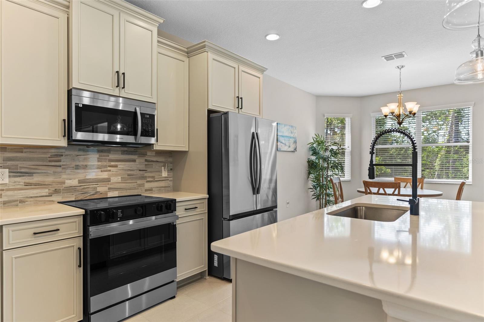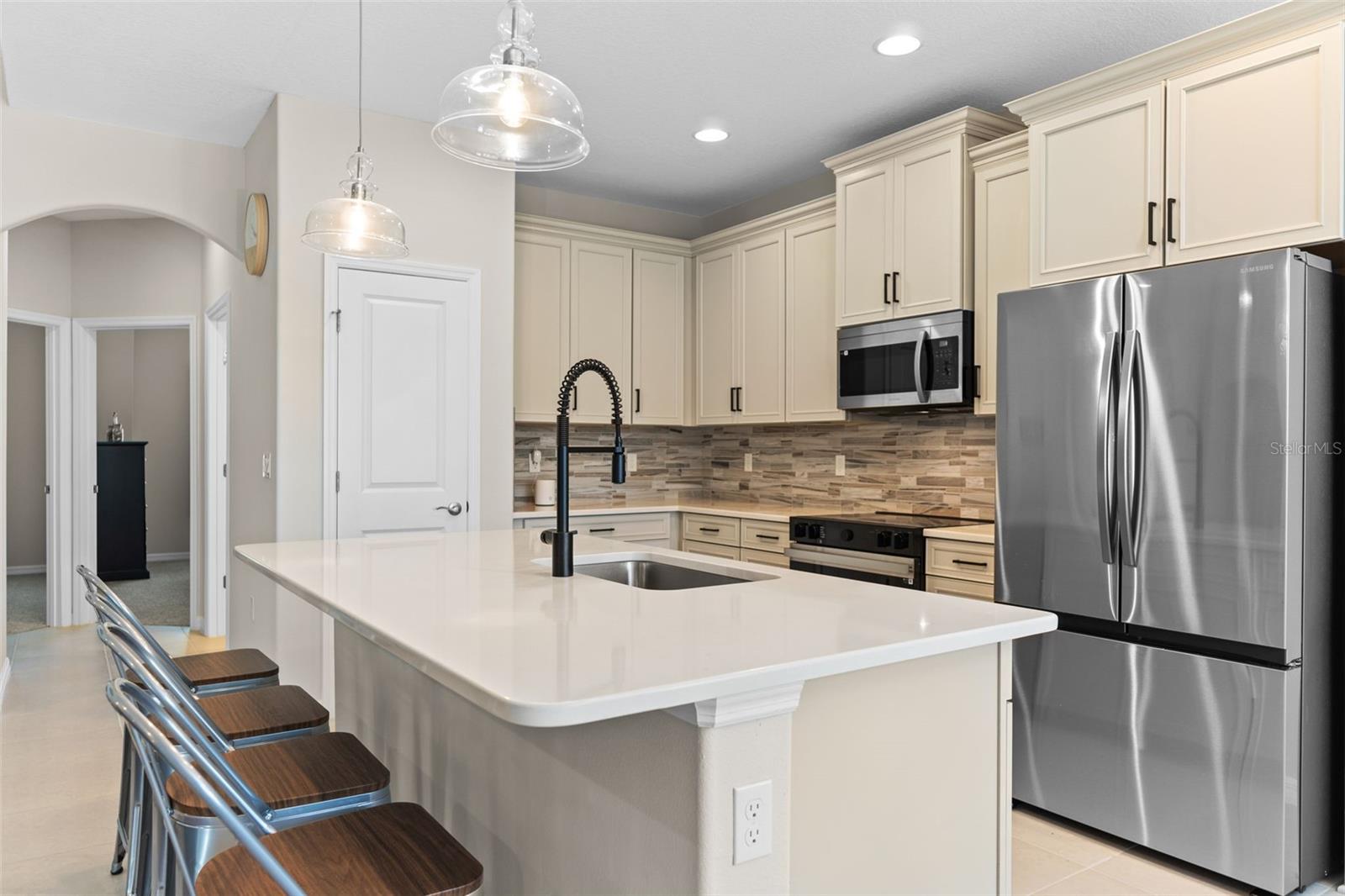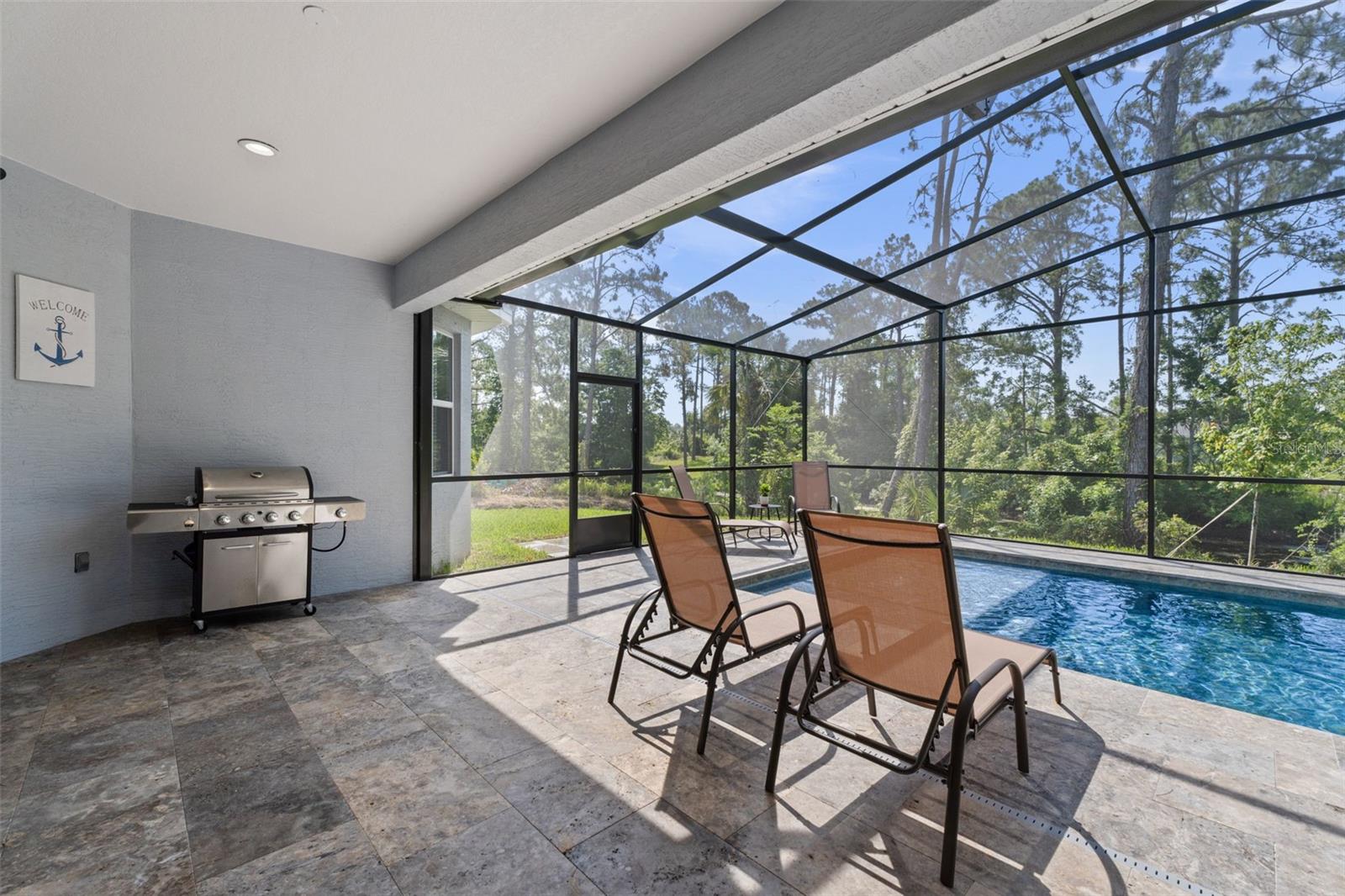 Welcome to this exceptional furnished Captiva II model by SeaGate Homes, built in August 2024 and meticulously cared for by its original owner. Thoughtfully upgraded inside and out, this home offers a rare combination of modern design, high-end finishes, and true Florida living. The heart of the home is an open-concept layout featuring a spacious great room and a stylish kitchen with a flush island, quartz countertops, 42-inch staggered cabinets with crown molding, and a charming bay window in the café. Luxury ceramic tile flows throughout the main living areas, and the private owner’s suite includes a generous walk-in closet, raised dual vanity, and upgraded cabinetry. Step outside and discover your personal oasis: a recently added saltwater pool by Agua Contractors, complete with a step-in lounge area, 6-foot depth, and a brand-new heating system for year-round enjoyment. The covered lanai overlooks upgraded Floratam sod, a full irrigation system, and professionally designed landscaping. The lot backs to a tranquil canal, offering extra privacy and a peaceful natural view. Additional interior upgrades include custom shutter blinds, offering both style and functionality throughout the home. Enjoy the convenience of nearby shopping, dining, and everyday essentials, all just minutes away. And for beach lovers, the hidden gem of Flagler Beach is only 10 miles away, known for its laid-back atmosphere, local charm, and beautiful shoreline. This is a home that truly stands out—modern, move-in ready, and packed with value. Schedule your private tour today!