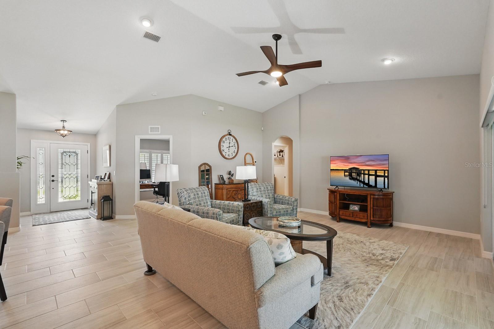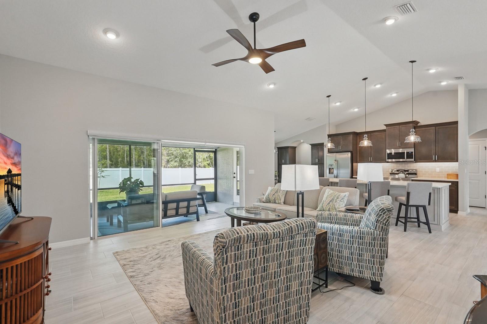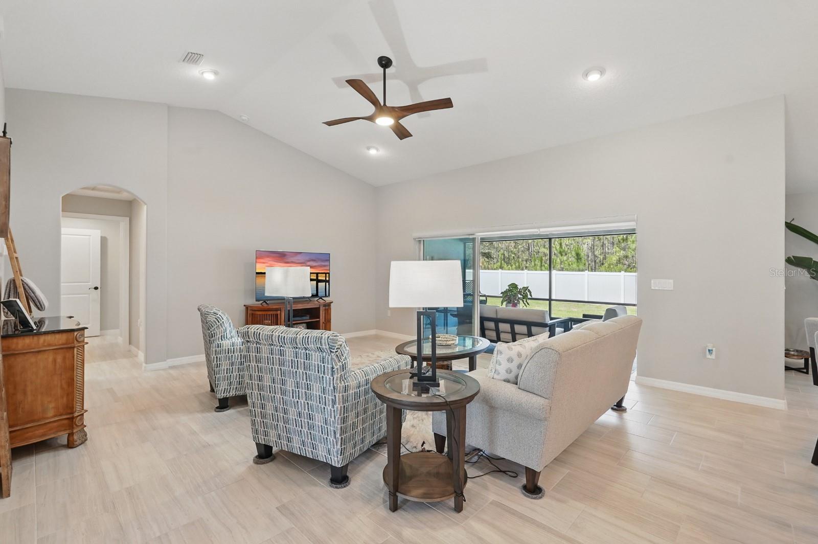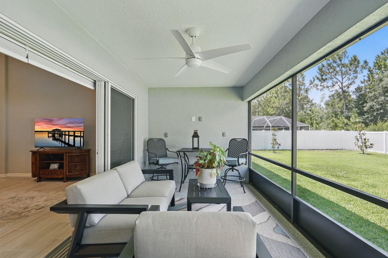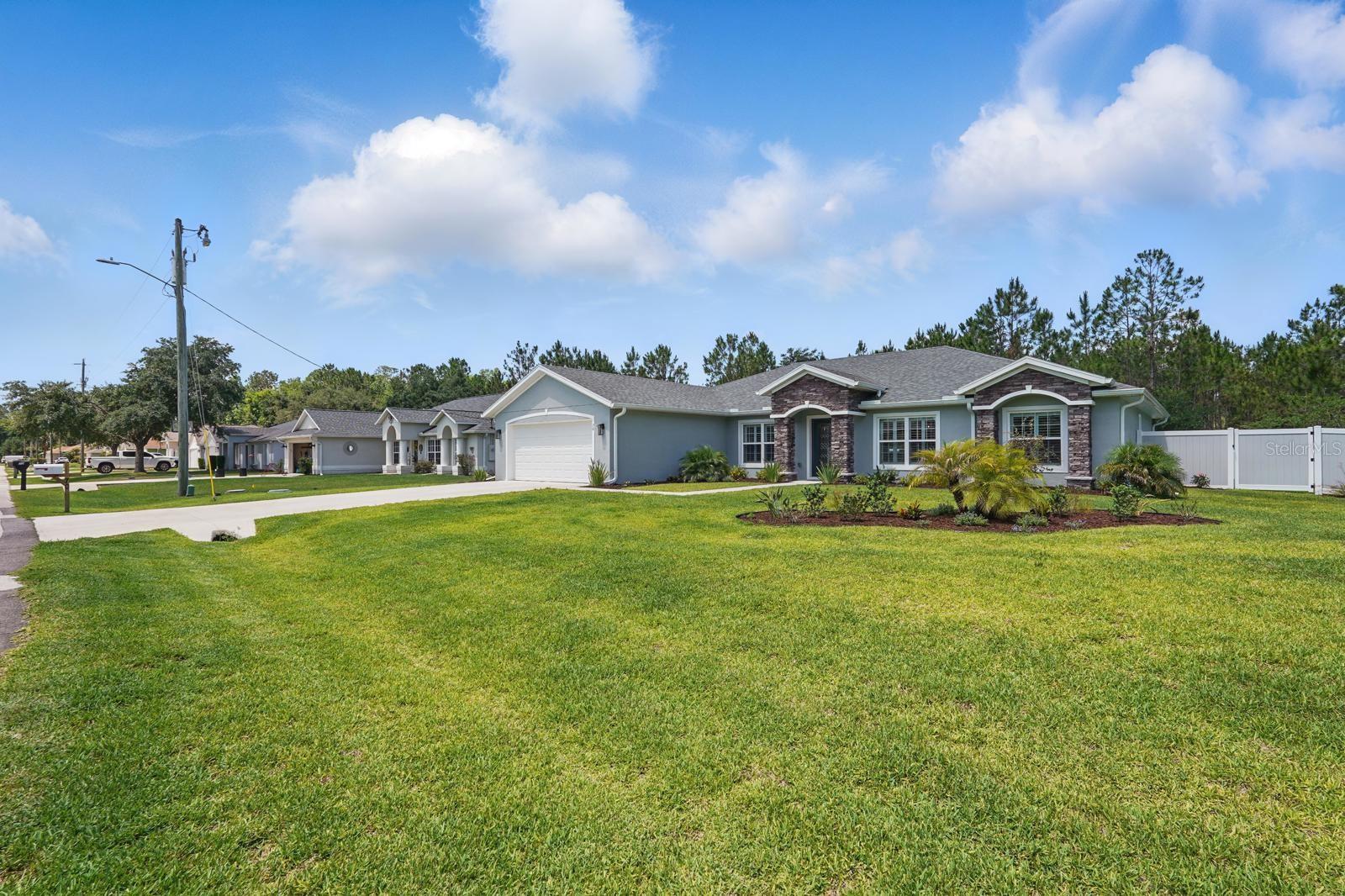 Modern Elegance in Cypress Knoll – Built in 2023 with Exceptional Upgrades Welcome to the highly sought-after golf course community of Cypress Knoll in Palm Coast, Florida—where lifestyle and location converge. Just minutes from Flagler Beach, shopping, dining, entertainment, and 75 miles of scenic biking and walking paths, this prime location also offers easy access to Ormond Beach, historic St. Augustine, and Daytona Airport. Why wait to build when this stunning 2023 Seagate Willow model is move-in ready and loaded with upgrades? Situated on an oversized, fully fenced corner lot, this home offers the perfect blend of modern style and timeless comfort. Inside, you’ll find wood-look tile flooring, upgraded cabinetry, quartz countertops in the kitchen and baths, and plantation shutters throughout the main living areas for an elegant, finished look. The primary suite boasts double walk-in closets with built-in storage and a spa-inspired ensuite bath, a beautiful tiled walk-in shower, and double vanities. A flexible office with French doors and a closet easily serves as a fourth bedroom or private workspace. Design details like coffered ceilings and a vaulted great room add architectural interest. An additional highlight is the custom built-in cabinetry that serves as a coffee bar, wine bar, or buffet station—perfect for entertaining or daily luxury. Through the triple sliders in the family room, you will find an enclosed screened lanai that backs up to a wooded preserve. Outside, you'll find an abundance of fully fenced backyard—perfect for adding a future pool, shed, or even boat storage. Whether you envision relaxing poolside, hosting outdoor gatherings, or simply enjoying Florida’s beautiful weather, the possibilities are endless. Additional highlights include: $5,000+ in upgraded landscaping Leaded glass front door with side light Plantation Shutters in all main living areas and Upgraded window treatments in additional rooms. Garage wired and plumbed for water treatment and upgraded lighting Pre-installed alarm system Pre-plumbed for an outdoor kitchen on the lanai Pre-plumbed utility sink in laundry room Upgraded lighting in the family room and primary suite Outdoor shower Don't wait for new construction when this beautifully upgraded home is ready NOW. Schedule your private tour today and discover elevated Florida living in Cypress Knoll. Floorplan and walk-through tour coming soon!!!!