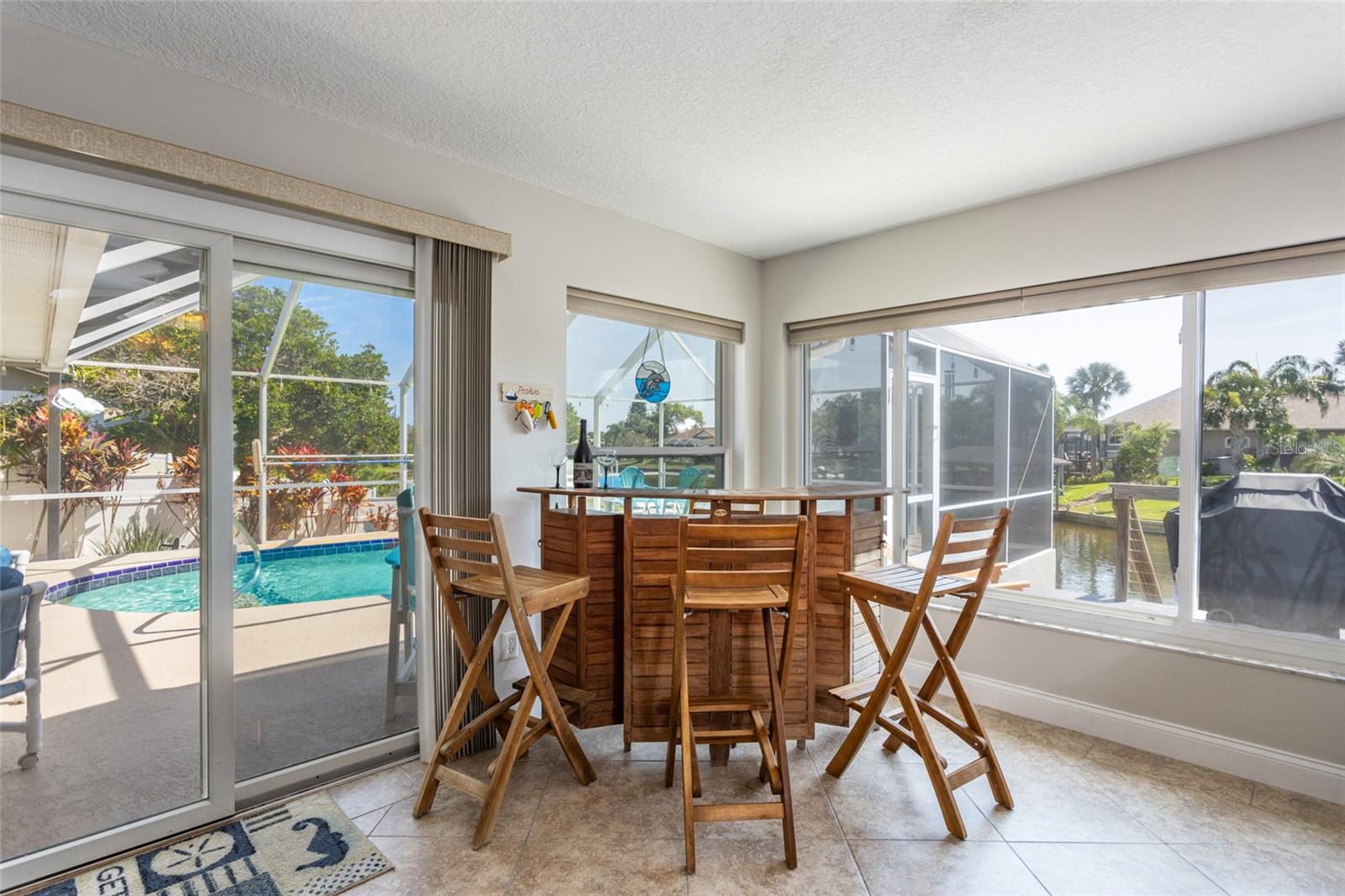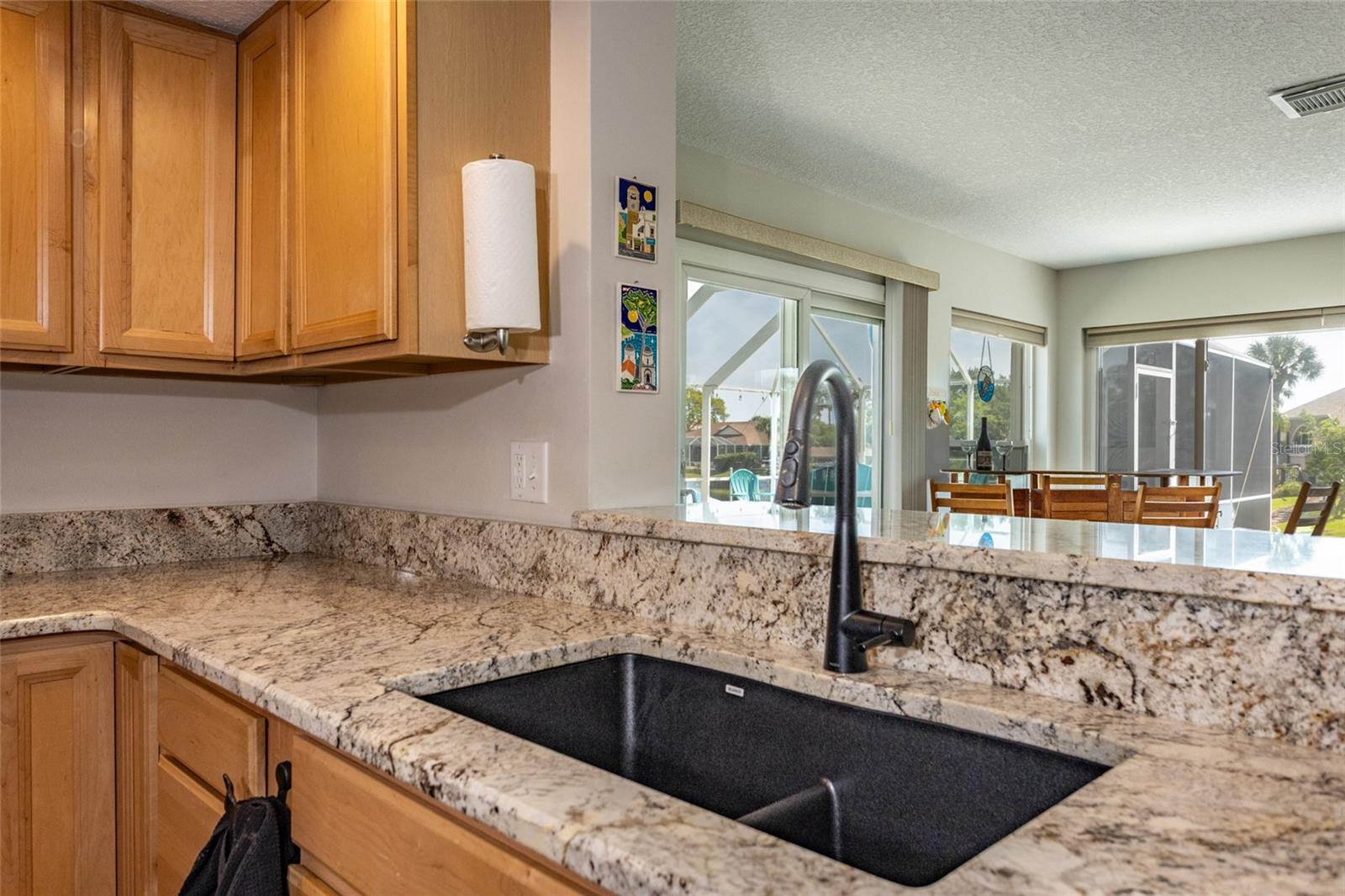 AMAZING WATERFRONT VIEWS! Step inside this beautifully updated 3-bedroom, 2-bath saltwater canal pool home and enjoy a thoughtfully upgraded interior featuring knockdown ceilings (no popcorn), modern ceiling fans, 5.5” baseboards, and new two-panel interior doors with updated hardware. The kitchen features new granite countertops, a graphite sink, and upgraded appliances. Zero carpet. Tile & engineered hardwood throughout. Formal living area, family area, huge dining area & a flex space/home office which overlooks the water. The primary bath showcases quartz countertops and Delta hardware, while the guest bath boasts granite countertops and Moen fixtures. Freshly painted inside and out, this move-in-ready home features a solar-heated pool & solar electric, reducing the cost of monthly electric bills. A recently replaced pool pump, a newly painted pool deck, and a screen enclosure. A spacious 12x24 composite deck expands your outdoor living space, perfect for relaxing or entertaining. Additional features include a retractable garage screen (installed in 2023), a widened driveway, pavers along the side of the home, and a new front storm door. Major updates include a brand-new roof (installed in 2025), windows (installed in 2015), and AC and ductwork (installed in 2016). The partially fenced-in yard provides privacy and space for pets or gardening, and the home’s premium location offers stunning views of the basin, where you can watch dolphins play. Palm Coast, Florida waterfront living at its finestt!