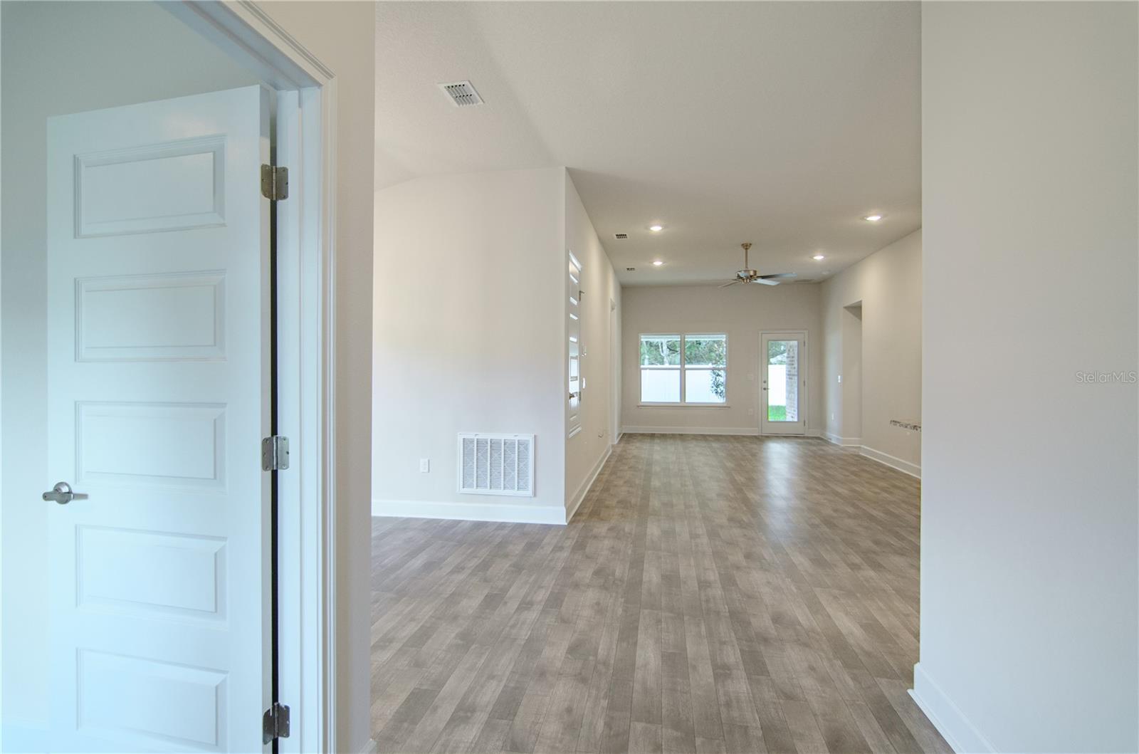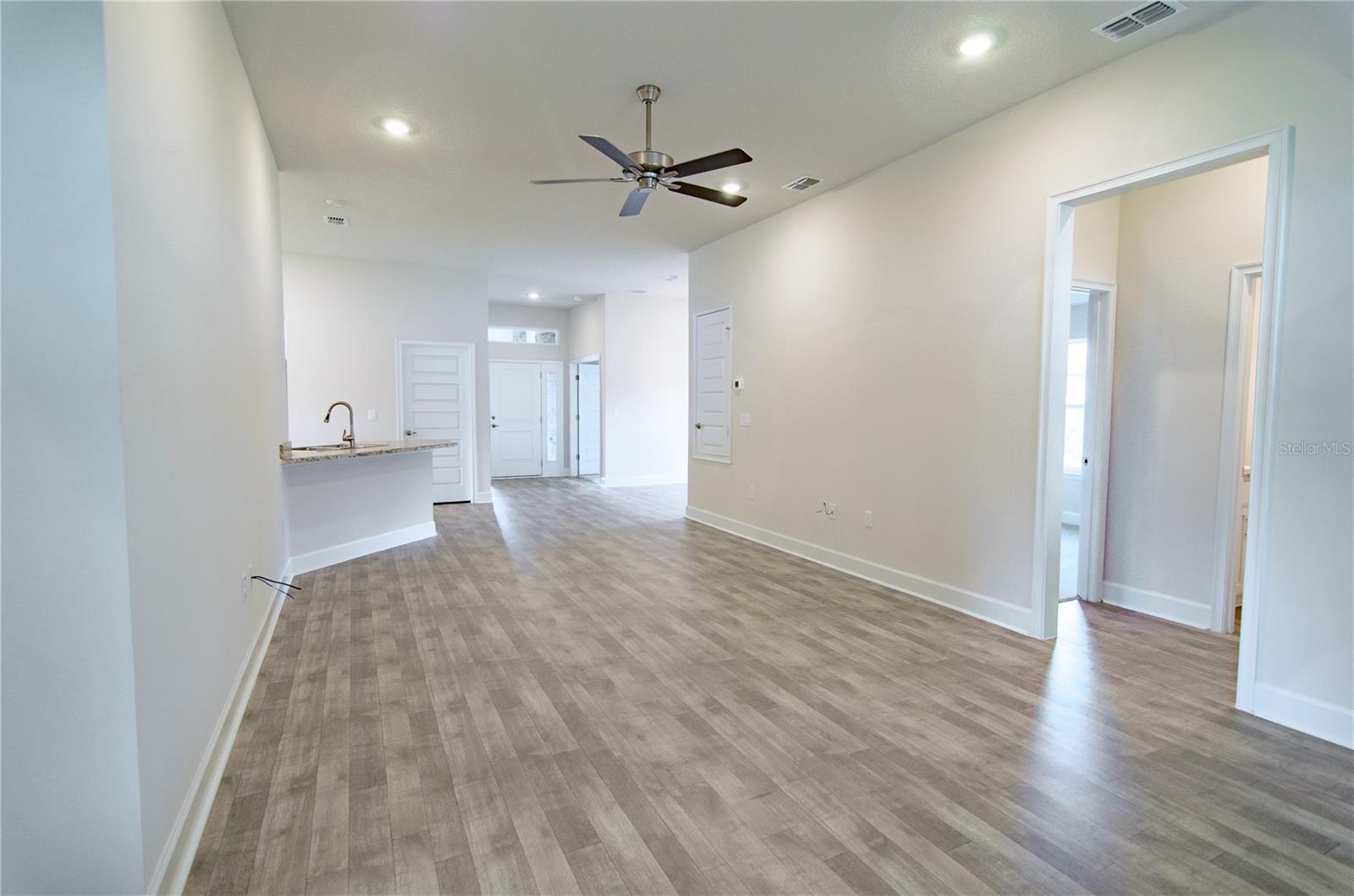 PRICE IMPROVMENT!! As you're walking up to this home, the brick just stands out as unique and BEAUTIFUL!! This also makes the home very energy efficient! The Adams Homes 1820 floor plan is one of our most popular floor plans because of its open design and functionality. It features 4 bedrooms and 2 bathrooms, making it ideal for families or those who need extra space. The layout includes an eat-in kitchen with a breakfast bar that overlooks a spacious great room, perfect for gatherings. There's also a formal dining room for more traditional meals or entertaining! Imagine having friends and family over for holiday meals is this beautiful and spacious dining room! The floor plan offers a split bedroom configuration, providing privacy for the primary suite, which includes a double vanity, separate walk-in shower, and a walk-in closet. Additionally, the fourth bedroom can be used as a home office or study. To top it off, there's a covered lanai, perfect for relaxing evenings outdoors or for family gatherings!