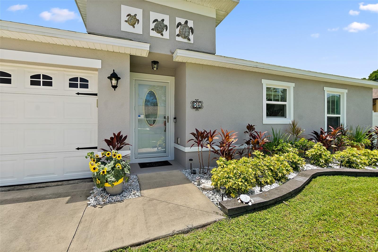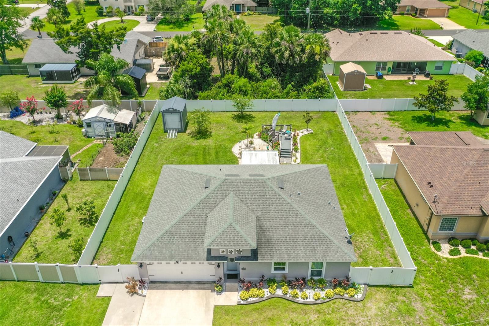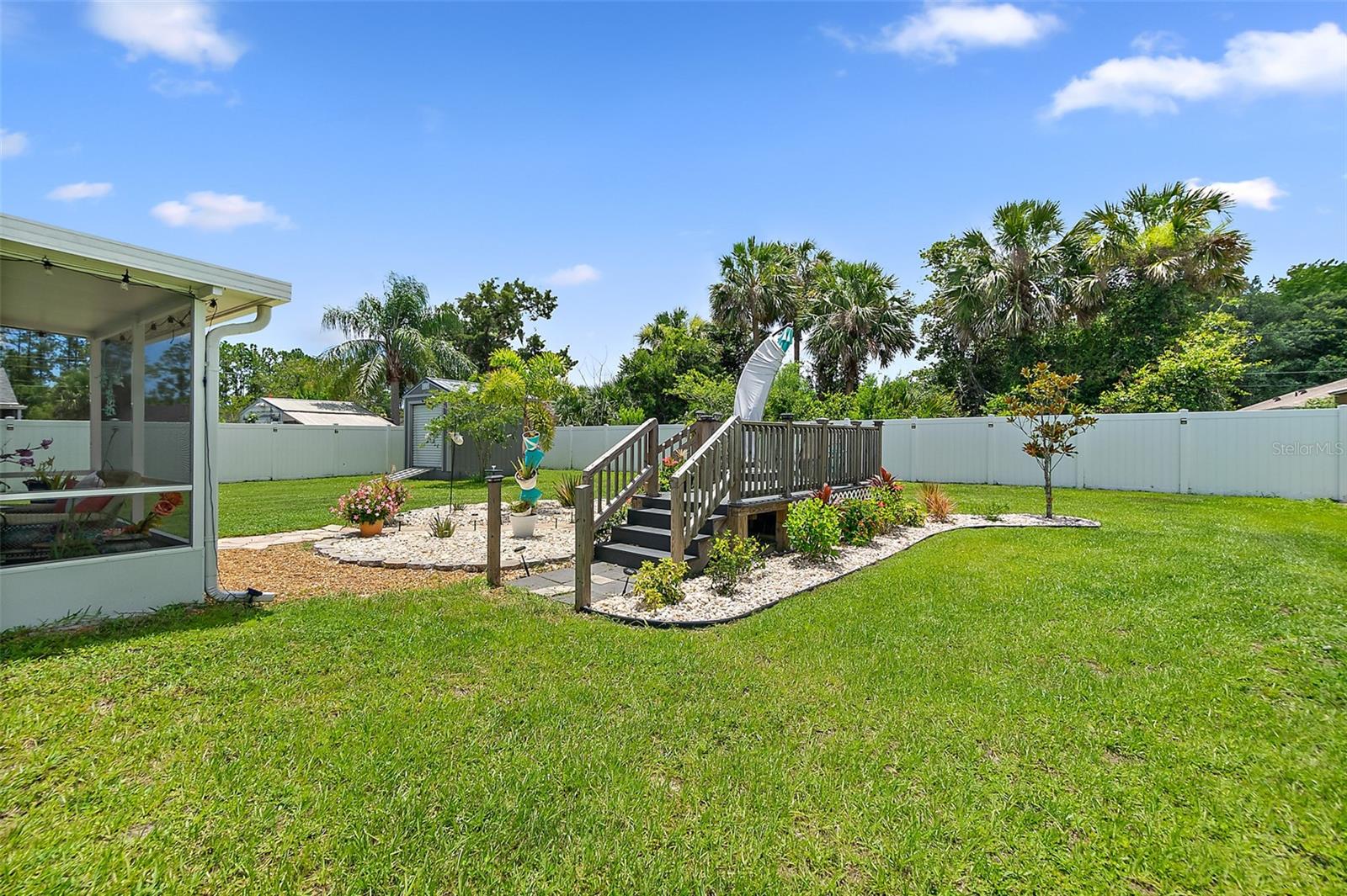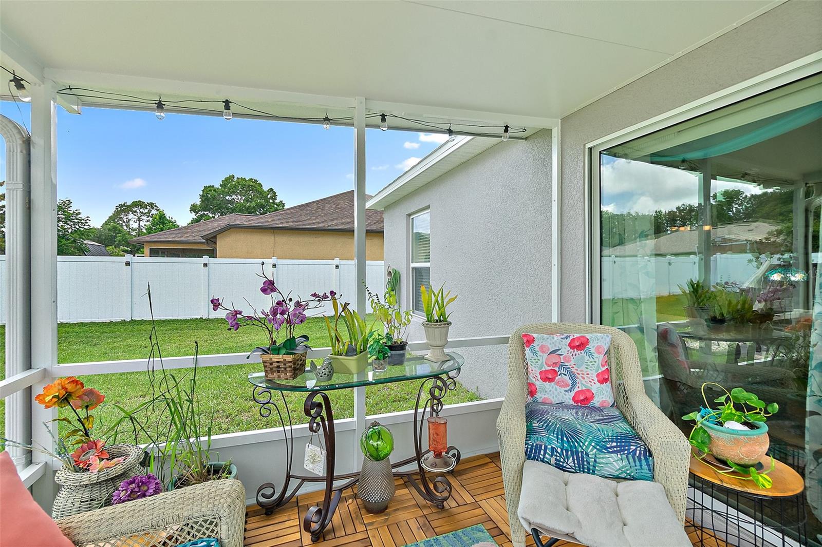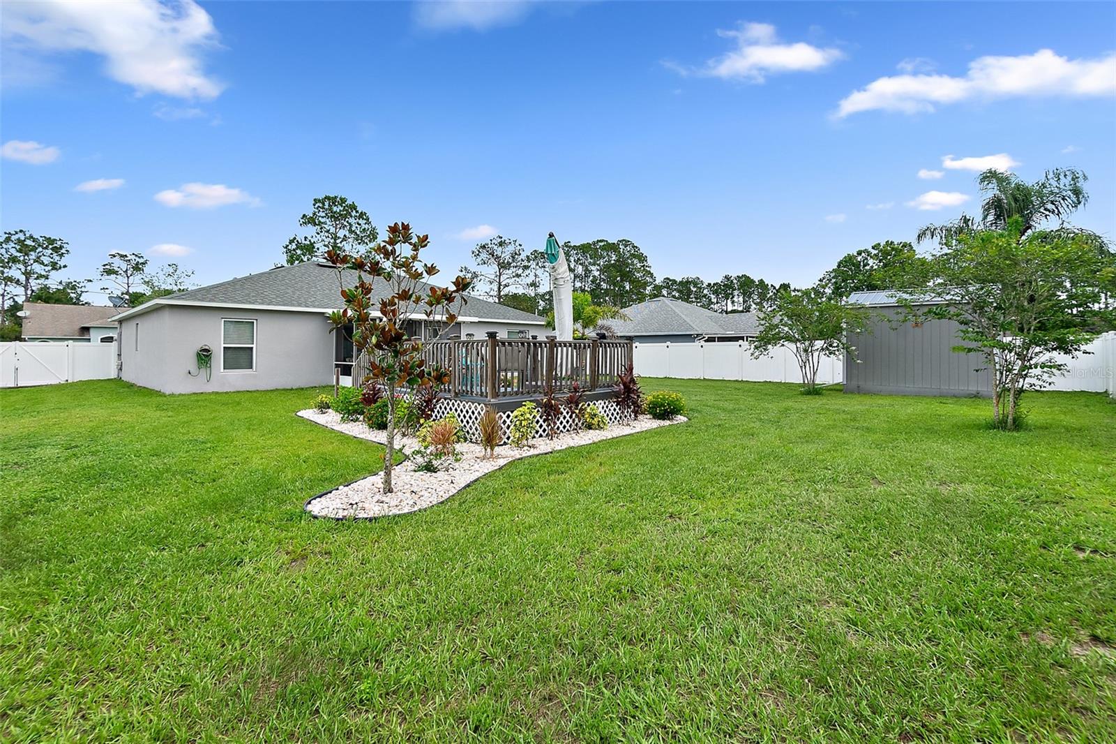 MOVE-IN READY! MUST SEE!!! Built in 2020! This spacious preferred concrete block built 3-bedroom, 2-bath, 2-car garage house showcases an open floor plan designed for modern living, seamlessly incorporating outside, starting with customized Florida room, transitioning to whimsical backyard with all weather elevated lanai, and solar lighting, making the magic come alive in the evening! Generously sized driveway - framed by beautiful and well manicured lawn. All of the multitude of plants around the house - emphasized by stamped concrete flower beds borders, and ample no expense spared landscape stones. This home offers the perfect blend of elegance, convenience, and ease of maintenance. Luxury wood-alike plank laminate flooring seamlessly spreading throughout the rooms. The cozy foyer starts the story of thoughtful updates by custom split shelving wall, adding style and functionality. Upgraded designer light fixtures in all parts of the house add to its charm and personality. The modern kitchen has tall solid wood classic shaker style cabinets crowned by molding and conveniently highlighted by glossy tile backsplash, anchored by custom luxurious quartz countertops. Deep dual stainless kitchen sink, hiding a garbage disposal. The quartz granite-alike countertop center island offers the stylish breakfast bar, adding more storage. A convenient coffee station is decorated with textured glass and marble interlocking mosaic backsplash adds a lot of storage as well with the same timeless beauty. The sparkling and cheery pendant lights, stainless steel appliances, shiplap ceiling, good size food pantry and convenient rollout stainless shelves in the cabinetry make this kitchen a dream come true. The elegant dining area speaks for itself! Highlighted by the formal uplifting chandelier. The extra wide (8ft) custom made sliding glass doors invite outside to join the open concept living spaces, increasing the airy open feeling! The primary suite offers custom barn doors to the walk-in closet and a deluxe private bathroom, featuring high end quartz countertops with dual sinks and an oversized tiled shower, with a beautiful and special glass enclosure half-door. Designated linen closet adds a touch of comfort. Split bedroom floor plan, provides privacy to the owners, with generously sized two additional bedrooms sharing an easy access to a full bath with an extra closet and the laundry room in the hallway. Enjoy a charming view of the beautiful backyard lounging in a lovely covered back lanai, far from busy roads, making it a peaceful and virtually dust-free experience. Outdoor living is truly exceptional and inviting here because of many flowering and rare nurtured plants! A beautiful deck with stairs is so attractive and nicely decorated. Growing palm will spread its wings shading the seating in the near future! The house is immaculate inside and out. The property is fenced all around with impressive high-quality vinyl. There is a single fence gate on the left side of the house and a double fence gate on the right side. There is a 8x12 lofted shed in the back yard for storage. The screened lanai features a special wooden floor. The house offers easy access to schools, shops, stores, banks, and other amenities. It is close enough to Ind. Trails Sports Complex, Palm Coast Aquatics Center, Planet Fitness. Easy access to Route 1 and I-95. Short ride to the ocean beaches. No HOA. No CDD.