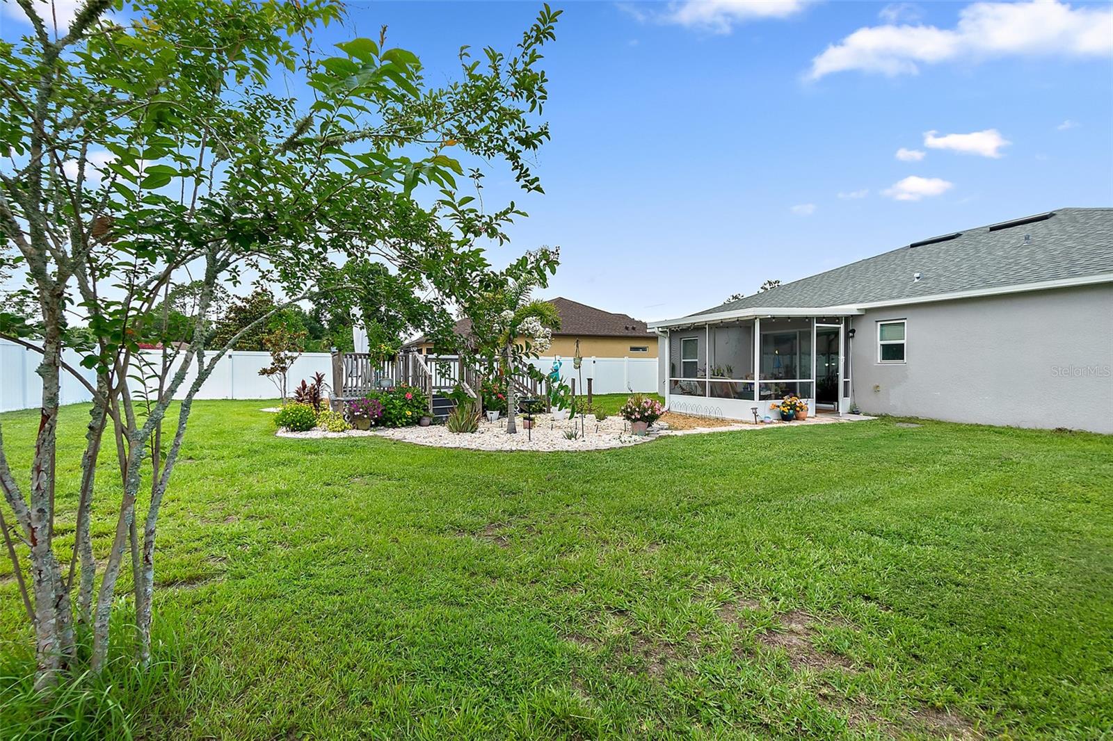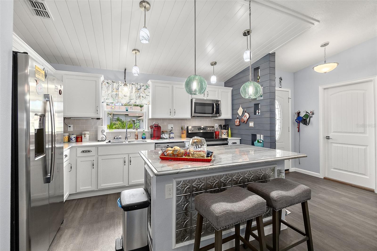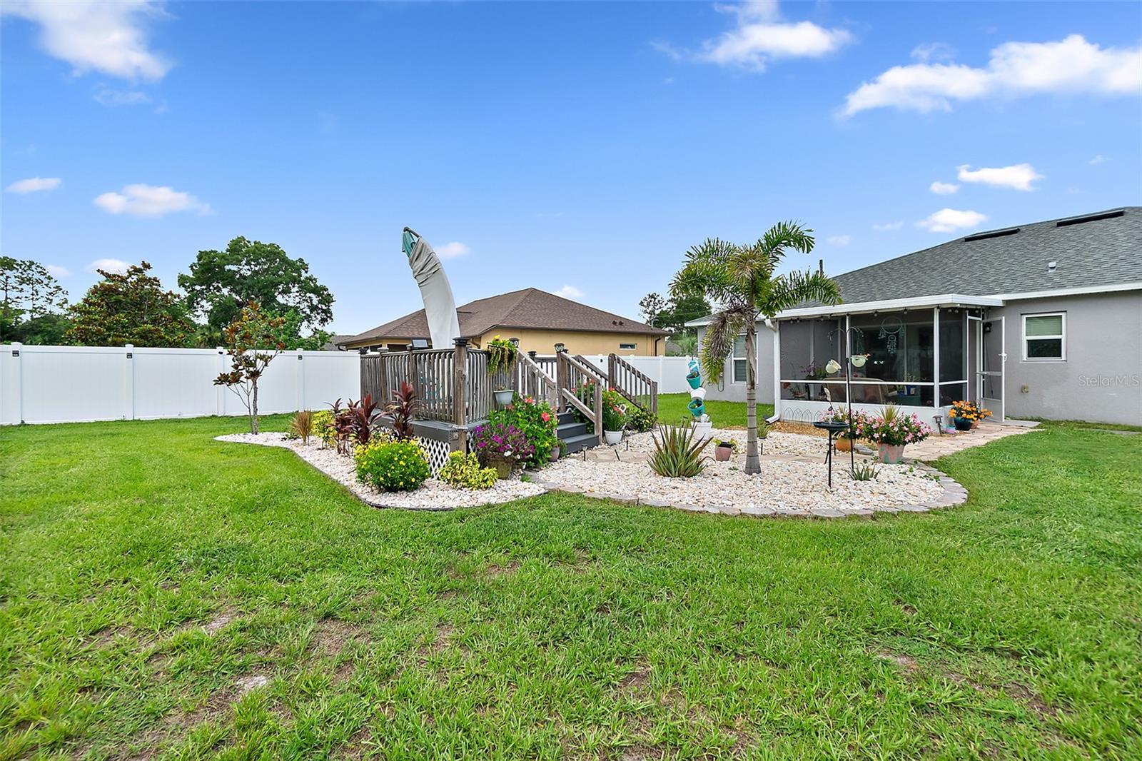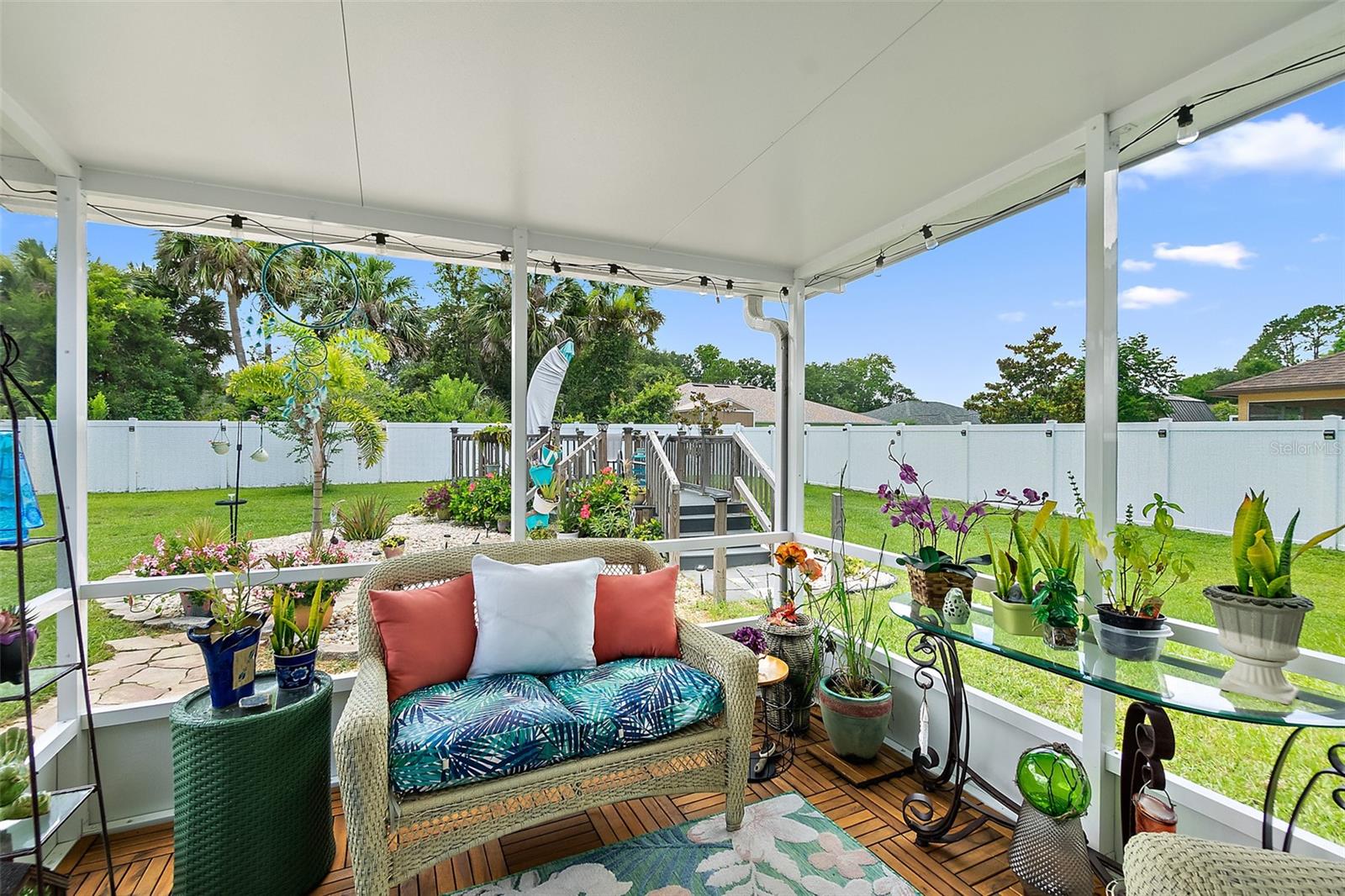 MOVE-IN READY! MUST SEE!!! Built in 2020! This spacious preferred concrete block built 3-bedroom, 2-bath, 2-car garage house showcases an open floor plan designed for modern living, seamlessly incorporating outside, starting with customized Florida room, transitioning to whimsical backyard with all weather elevated lanai, and solar lighting, making the magic come alive in the evening! Generously sized driveway - framed by beautiful and well manicured lawn. All of the multitude of plants around the house - emphasized by stamped concrete flower beds borders, and ample no expense spared landscape stones. This home offers the perfect blend of elegance, convenience, and ease of maintenance. Luxury wood-alike plank laminate flooring seamlessly spreading throughout the rooms. The cozy foyer starts the story of thoughtful updates by custom split shelving wall, adding style and functionality. Upgraded designer light fixtures in all parts of the house add to its charm and personality. The modern kitchen has tall solid wood classic shaker style cabinets crowned by molding and conveniently highlighted by glossy tile backsplash, anchored by custom luxurious quartz countertops. Deep dual stainless kitchen sink, hiding a garbage disposal. The quartz granite-alike countertop center island offers the stylish breakfast bar, adding more storage. A convenient coffee station is decorated with textured glass and marble interlocking mosaic backsplash adds a lot of storage as well with the same timeless beauty. The sparkling and cheery pendant lights, stainless steel appliances, shiplap ceiling, good size food pantry and convenient rollout stainless shelves in the cabinetry make this kitchen a dream come true. The elegant dining area speaks for itself! Highlighted by the formal uplifting chandelier. The extra wide (8ft) custom made sliding glass doors invite outside to join the open concept living spaces, increasing the airy open feeling! The primary suite offers custom barn doors to the walk-in closet and a deluxe private bathroom, featuring high end quartz countertops with dual sinks and an oversized tiled shower, with a beautiful and special glass enclosure half-door. Designated linen closet adds a touch of comfort. Split bedroom floor plan, provides privacy to the owners, with generously sized two additional bedrooms sharing an easy access to a full bath with an extra closet and the laundry room in the hallway. Enjoy a charming view of the beautiful backyard lounging in a lovely covered back lanai, far from busy roads, making it a peaceful and virtually dust-free experience. Outdoor living is truly exceptional and inviting here because of many flowering and rare nurtured plants! A beautiful deck with stairs is so attractive and nicely decorated. Growing palm will spread its wings shading the seating in the near future! The house is immaculate inside and out. The property is fenced all around with impressive high-quality vinyl. There is a single fence gate on the left side of the house and a double fence gate on the right side. There is a 8x12 lofted shed in the back yard for storage. The screened lanai features a special wooden floor. The house offers easy access to schools, shops, stores, banks, and other amenities. It is close enough to Ind. Trails Sports Complex, Palm Coast Aquatics Center, Planet Fitness. Easy access to Route 1 and I-95. Short ride to the ocean beaches. No HOA. No CDD.