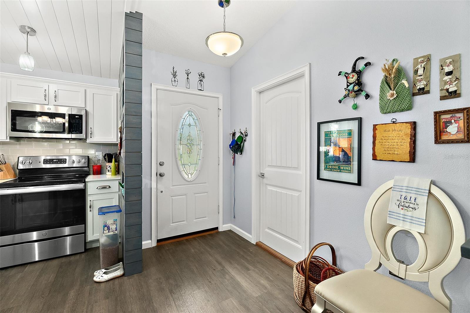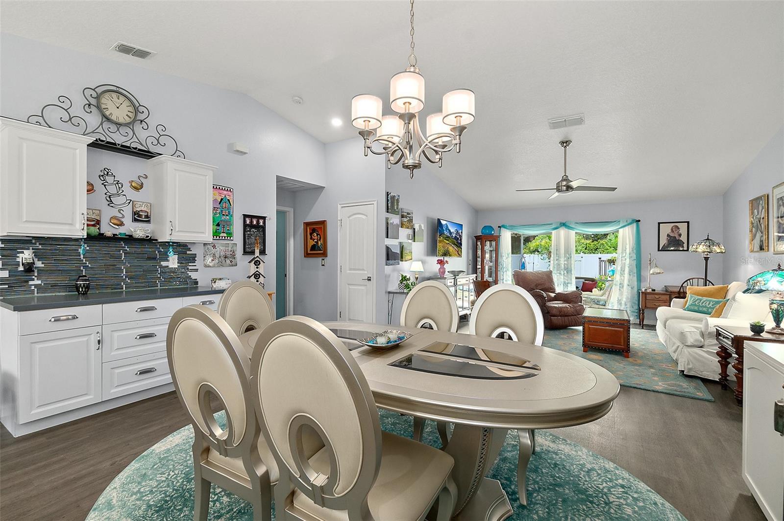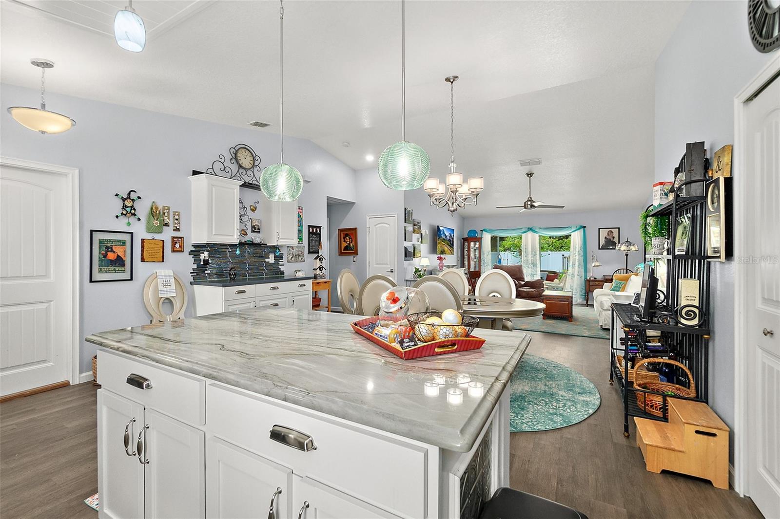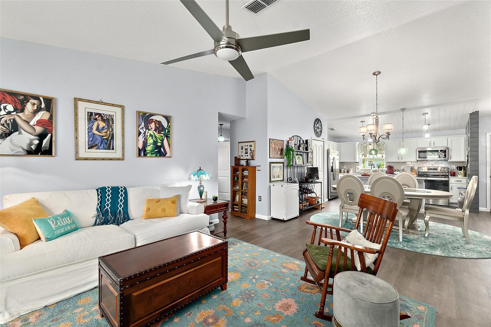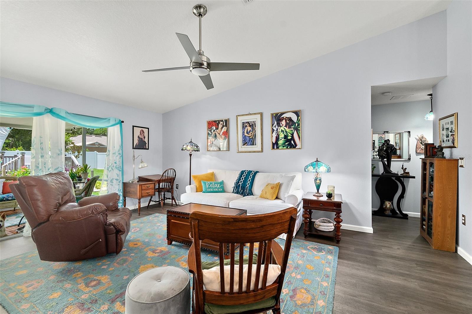 MOVE-IN READY! MUST SEE!!! Built in 2020! This spacious preferred concrete block built 3-bedroom, 2-bath, 2-car garage house showcases an open floor plan designed for modern living, seamlessly incorporating outside, starting with customized Florida room, transitioning to whimsical backyard with all weather elevated lanai, and solar lighting, making the magic come alive in the evening! Generously sized driveway - framed by beautiful and well manicured lawn. All of the multitude of plants around the house - emphasized by stamped concrete flower beds borders, and ample no expense spared landscape stones. This home offers the perfect blend of elegance, convenience, and ease of maintenance. Luxury wood-alike plank laminate flooring seamlessly spreading throughout the rooms. The cozy foyer starts the story of thoughtful updates by custom split shelving wall, adding style and functionality. Upgraded designer light fixtures in all parts of the house add to its charm and personality. The modern kitchen has tall solid wood classic shaker style cabinets crowned by molding and conveniently highlighted by glossy tile backsplash, anchored by custom luxurious quartz countertops. Deep dual stainless kitchen sink, hiding a garbage disposal. The quartz granite-alike countertop center island offers the stylish breakfast bar, adding more storage. A convenient coffee station is decorated with textured glass and marble interlocking mosaic backsplash adds a lot of storage as well with the same timeless beauty. The sparkling and cheery pendant lights, stainless steel appliances, shiplap ceiling, good size food pantry and convenient rollout stainless shelves in the cabinetry make this kitchen a dream come true. The elegant dining area speaks for itself! Highlighted by the formal uplifting chandelier. The extra wide (8ft) custom made sliding glass doors invite outside to join the open concept living spaces, increasing the airy open feeling! The primary suite offers custom barn doors to the walk-in closet and a deluxe private bathroom, featuring high end quartz countertops with dual sinks and an oversized tiled shower, with a beautiful and special glass enclosure half-door. Designated linen closet adds a touch of comfort. Split bedroom floor plan, provides privacy to the owners, with generously sized two additional bedrooms sharing an easy access to a full bath with an extra closet and the laundry room in the hallway. Enjoy a charming view of the beautiful backyard lounging in a lovely covered back lanai, far from busy roads, making it a peaceful and virtually dust-free experience. Outdoor living is truly exceptional and inviting here because of many flowering and rare nurtured plants! A beautiful deck with stairs is so attractive and nicely decorated. Growing palm will spread its wings shading the seating in the near future! The house is immaculate inside and out. The property is fenced all around with impressive high-quality vinyl. There is a single fence gate on the left side of the house and a double fence gate on the right side. There is a 8x12 lofted shed in the back yard for storage. The screened lanai features a special wooden floor. The house offers easy access to schools, shops, stores, banks, and other amenities. It is close enough to Ind. Trails Sports Complex, Palm Coast Aquatics Center, Planet Fitness. Easy access to Route 1 and I-95. Short ride to the ocean beaches. No HOA. No CDD.