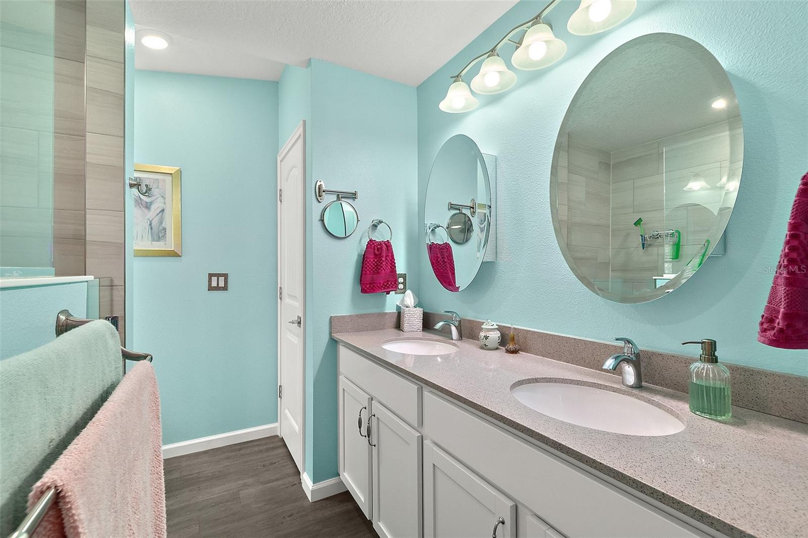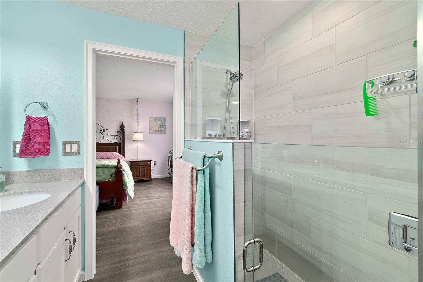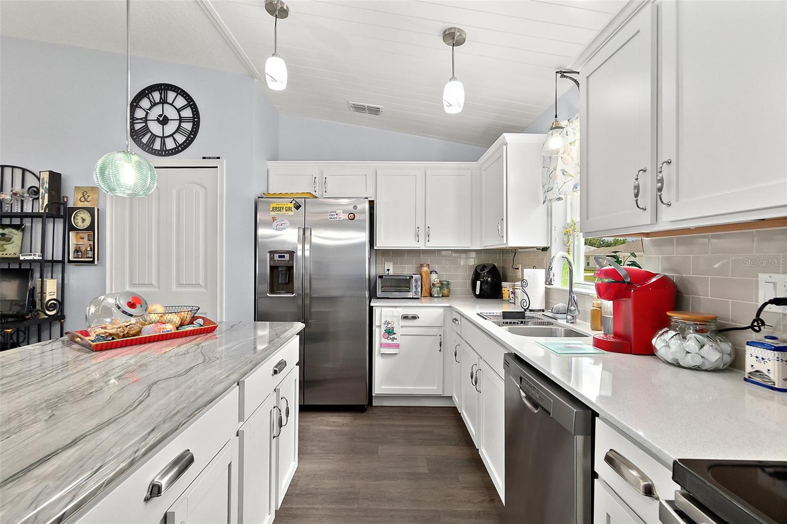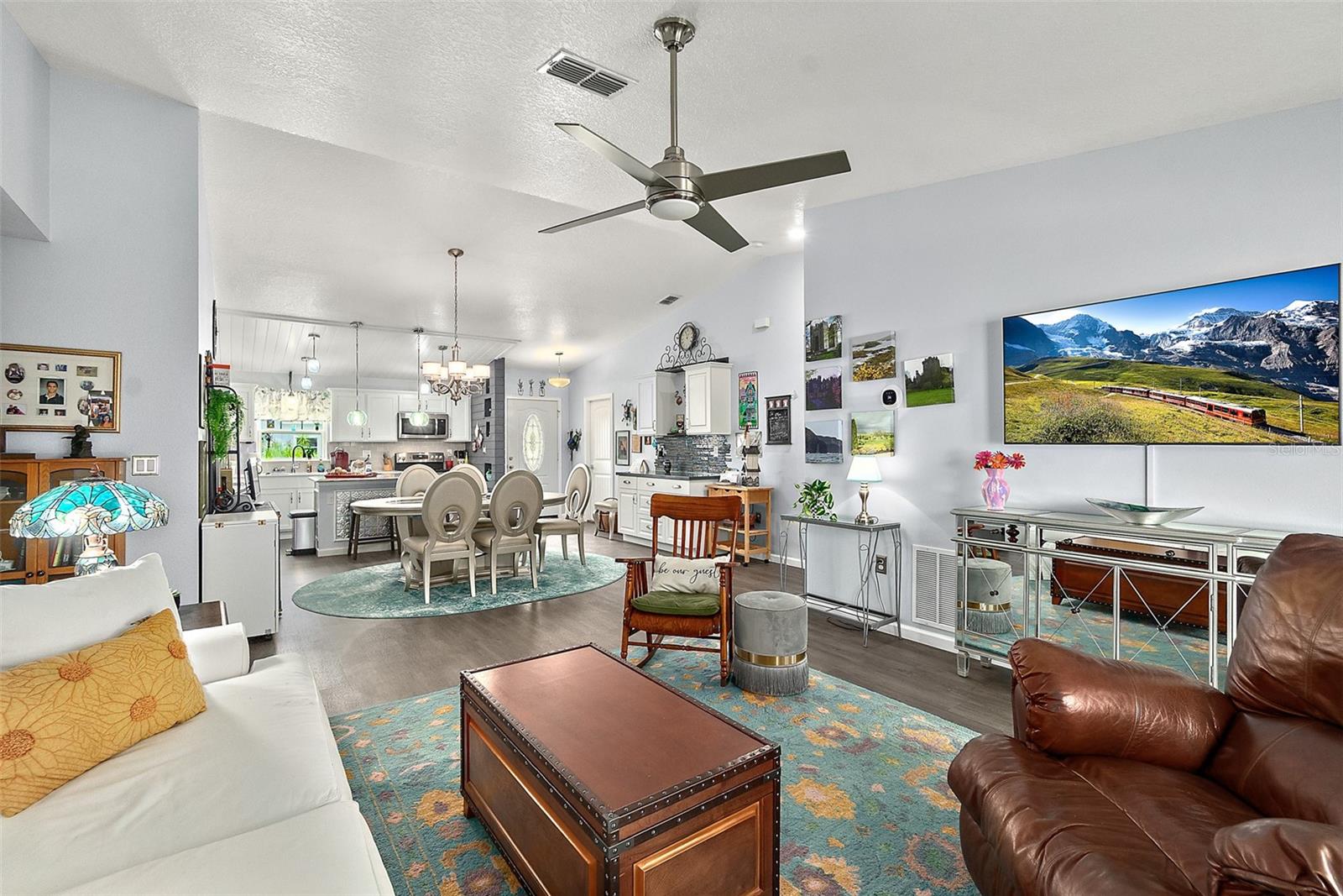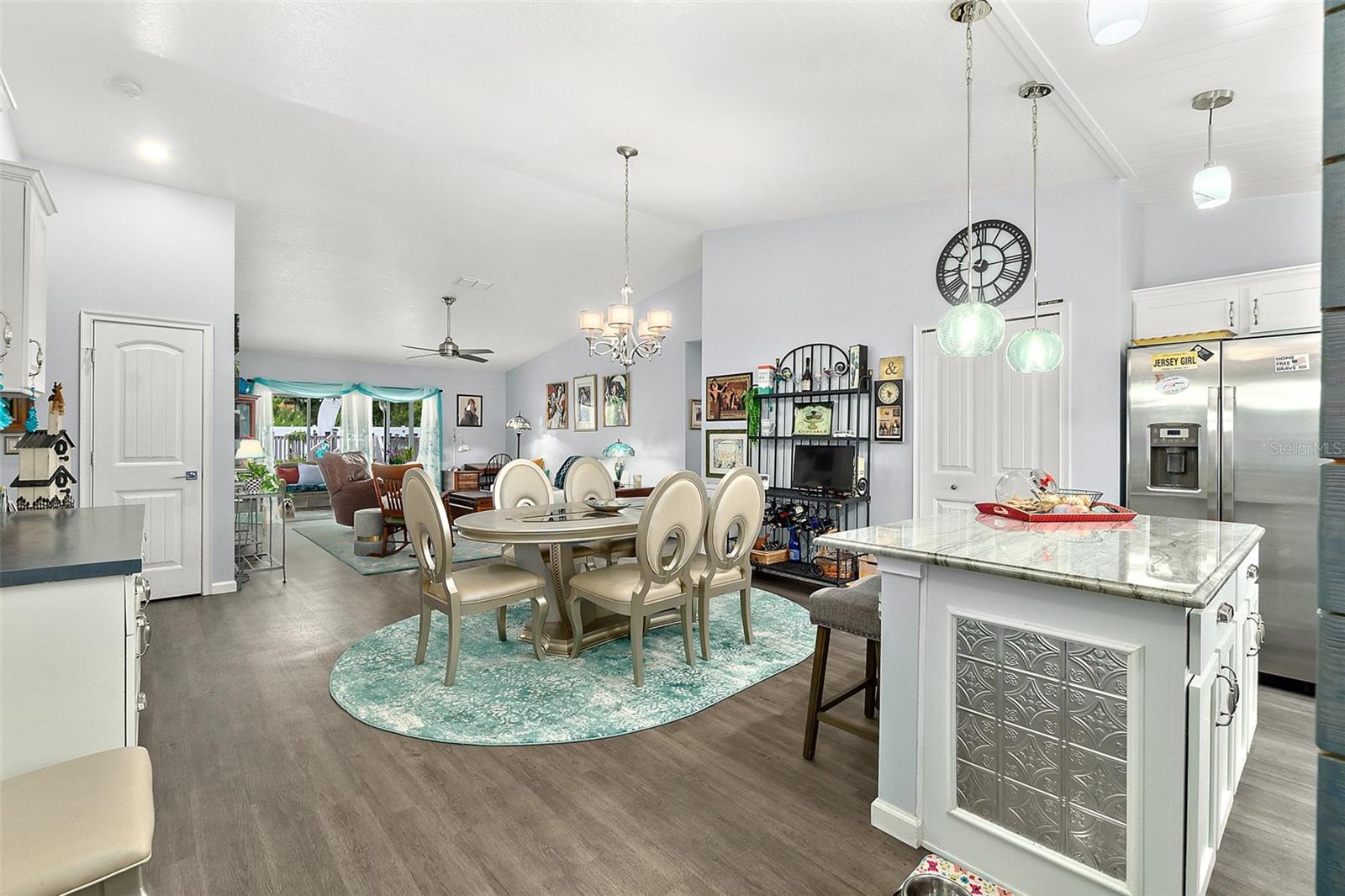 MOVE-IN READY! MUST SEE!!! Built in 2020! This spacious preferred concrete block built 3-bedroom, 2-bath, 2-car garage house showcases an open floor plan designed for modern living, seamlessly incorporating outside, starting with customized Florida room, transitioning to whimsical backyard with all weather elevated lanai, and solar lighting, making the magic come alive in the evening! Generously sized driveway - framed by beautiful and well manicured lawn. All of the multitude of plants around the house - emphasized by stamped concrete flower beds borders, and ample no expense spared landscape stones. This home offers the perfect blend of elegance, convenience, and ease of maintenance. Luxury wood-alike plank laminate flooring seamlessly spreading throughout the rooms. The cozy foyer starts the story of thoughtful updates by custom split shelving wall, adding style and functionality. Upgraded designer light fixtures in all parts of the house add to its charm and personality. The modern kitchen has tall solid wood classic shaker style cabinets crowned by molding and conveniently highlighted by glossy tile backsplash, anchored by custom luxurious quartz countertops. Deep dual stainless kitchen sink, hiding a garbage disposal. The quartz granite-alike countertop center island offers the stylish breakfast bar, adding more storage. A convenient coffee station is decorated with textured glass and marble interlocking mosaic backsplash adds a lot of storage as well with the same timeless beauty. The sparkling and cheery pendant lights, stainless steel appliances, shiplap ceiling, good size food pantry and convenient rollout stainless shelves in the cabinetry make this kitchen a dream come true. The elegant dining area speaks for itself! Highlighted by the formal uplifting chandelier. The extra wide (8ft) custom made sliding glass doors invite outside to join the open concept living spaces, increasing the airy open feeling! The primary suite offers custom barn doors to the walk-in closet and a deluxe private bathroom, featuring high end quartz countertops with dual sinks and an oversized tiled shower, with a beautiful and special glass enclosure half-door. Designated linen closet adds a touch of comfort. Split bedroom floor plan, provides privacy to the owners, with generously sized two additional bedrooms sharing an easy access to a full bath with an extra closet and the laundry room in the hallway. Enjoy a charming view of the beautiful backyard lounging in a lovely covered back lanai, far from busy roads, making it a peaceful and virtually dust-free experience. Outdoor living is truly exceptional and inviting here because of many flowering and rare nurtured plants! A beautiful deck with stairs is so attractive and nicely decorated. Growing palm will spread its wings shading the seating in the near future! The house is immaculate inside and out. The property is fenced all around with impressive high-quality vinyl. There is a single fence gate on the left side of the house and a double fence gate on the right side. There is a 8x12 lofted shed in the back yard for storage. The screened lanai features a special wooden floor. The house offers easy access to schools, shops, stores, banks, and other amenities. It is close enough to Ind. Trails Sports Complex, Palm Coast Aquatics Center, Planet Fitness. Easy access to Route 1 and I-95. Short ride to the ocean beaches. No HOA. No CDD.