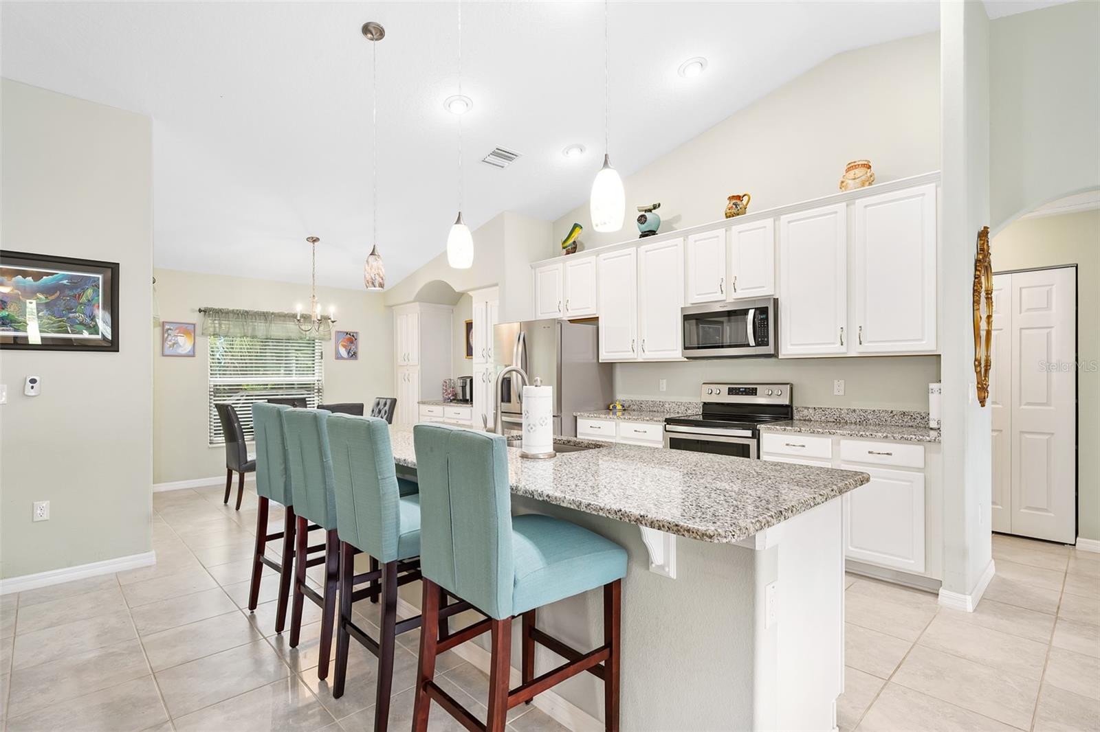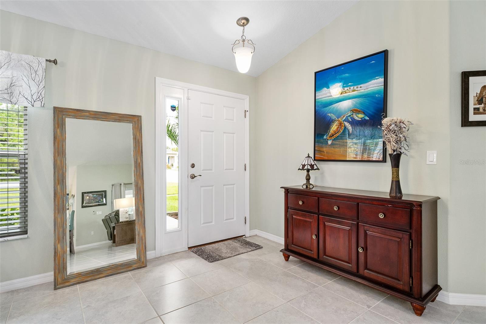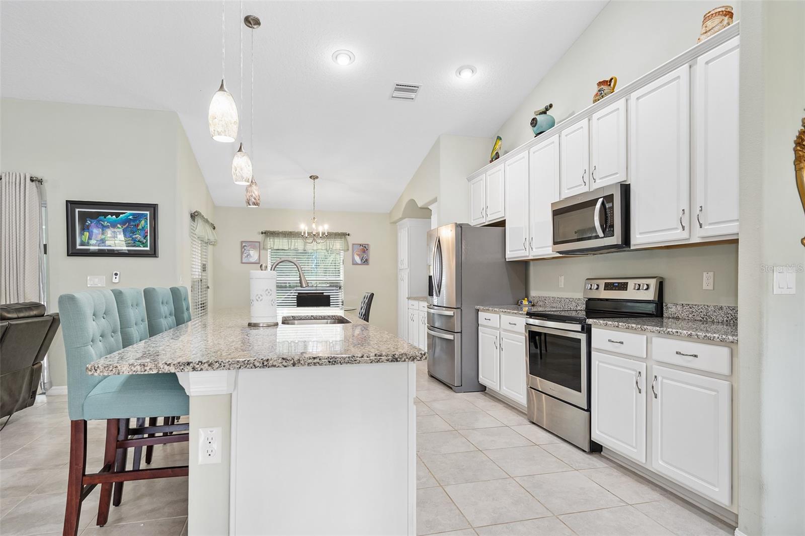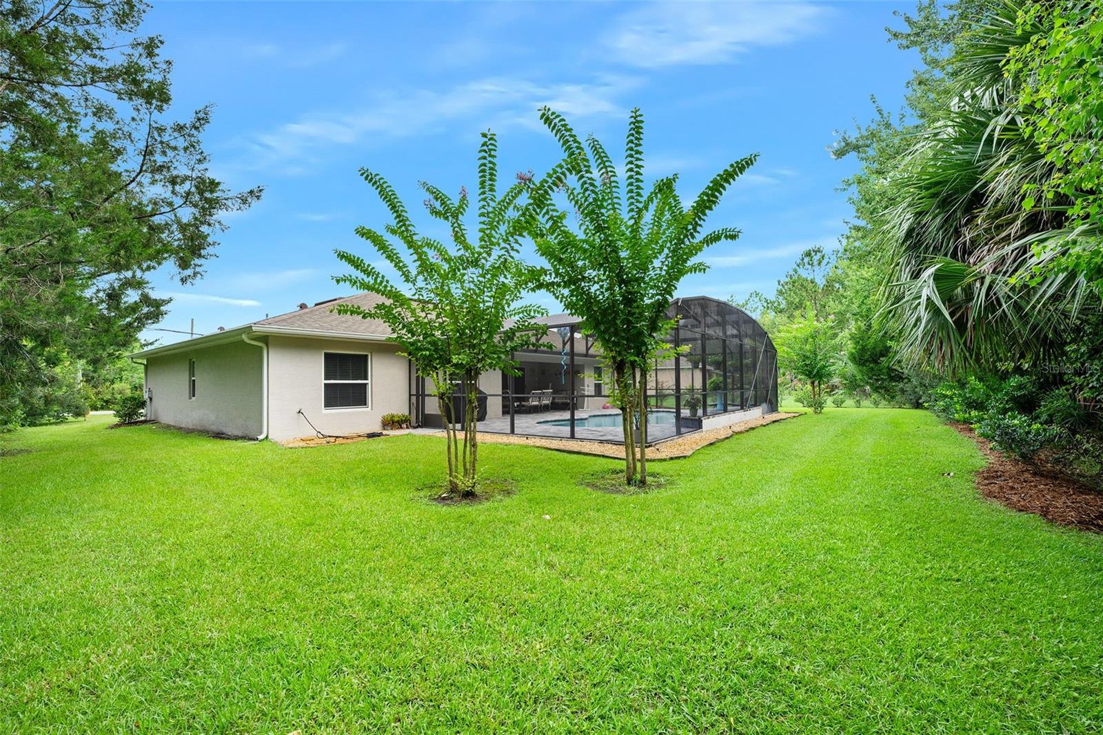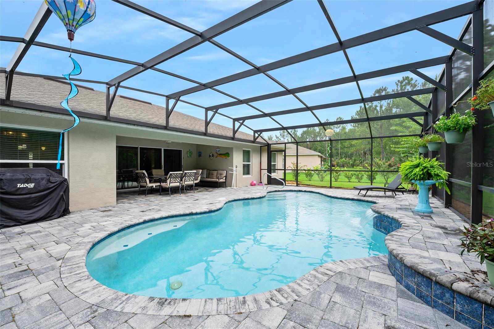 Back on market due to buyer financing falling through. Move-in-ready 4-bedroom Palm Coast pool home with no HOA and 2,208 sq ft of open living space. Built in 2018, this updated home features an inviting saltwater pool with paver lanai, granite countertops, stainless steel appliances, a coffee bar, and a formal dining room that opens to the main living area. The split floor plan includes a versatile flex room ideal for a 4th bedroom, home office, or playroom. The private primary suite offers two walk-in closets with chandeliers, double vanities, and a large tiled walk-in shower. Located in a no flood zone and close to Palm Coast shopping, parks, and beaches. A must-see Florida pool home!
