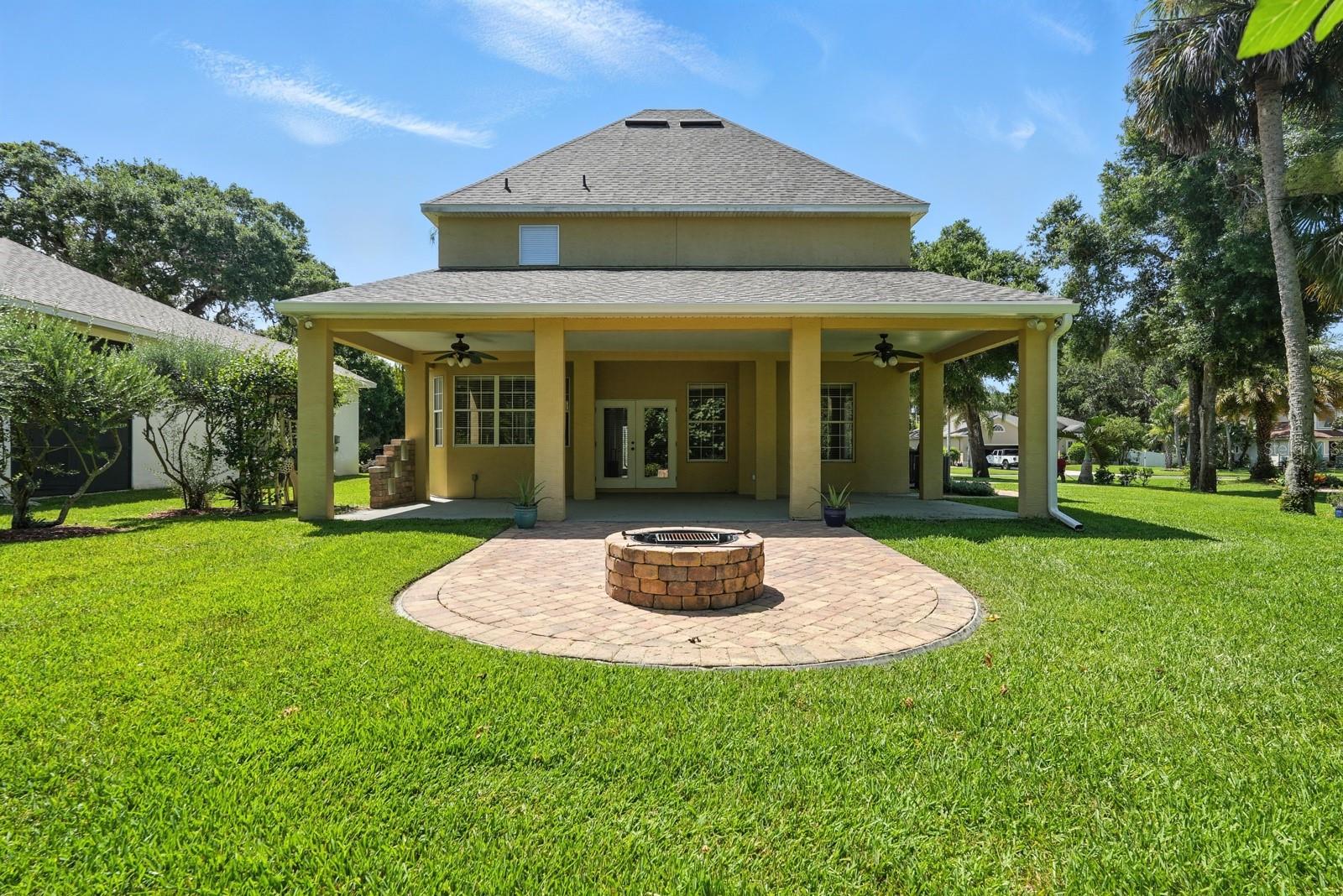 Nestled between the shimmering waters of the Intracoastal Waterway and the Atlantic Ocean, 7 River Oaks Way offers the perfect blend of coastal charm, quality construction, and serene privacy. Its location is truly unbeatable—tucked within the highly desirable and best-kept secret: the Hammock of Palm Coast. Located just off scenic A1A in the intimate community of River Oaks, this beautifully maintained 3-bedroom, 2.5-bath concrete block home spans over 2,000 square feet of well-designed living space. From the moment you arrive, you're greeted by a manicured lawn, stone-accented exterior, and a side-entry garage that enhances the home’s curb appeal. Step inside to find tile flooring throughout the main level, elegant double tray ceilings, arched doorways, and tasteful architectural details like accent columns and crown molding. The spacious dining room flows into a granite-clad kitchen with a breakfast nook, while French doors lead out to a paver-lined patio complete with a fire pit—an ideal setting to enjoy breezy afternoons beneath a canopy of mature trees. The downstairs also features a large, light-filled living area and a convenient guest half bathroom. Upstairs, the oversized primary suite impresses with soaring tray ceilings, French door entry, a luxurious jetted tub, walk-in tiled shower, double vanities, and a large walk-in closet. Two additional bedrooms share a convenient Jack-and-Jill bath, each with its own walk-in closet, while the upstairs laundry room adds ease to everyday living. This home is thoughtfully designed and truly move-in ready. Just a short stroll from your front door, the private community dock extends out over the Intracoastal Waterway—perfect for boat watching, spotting dolphins and manatees, or enjoying peaceful views of Florida’s abundant coastal wildlife. With HOA dues of only $50/month, this rare coastal gem is a lifestyle opportunity not to be missed.