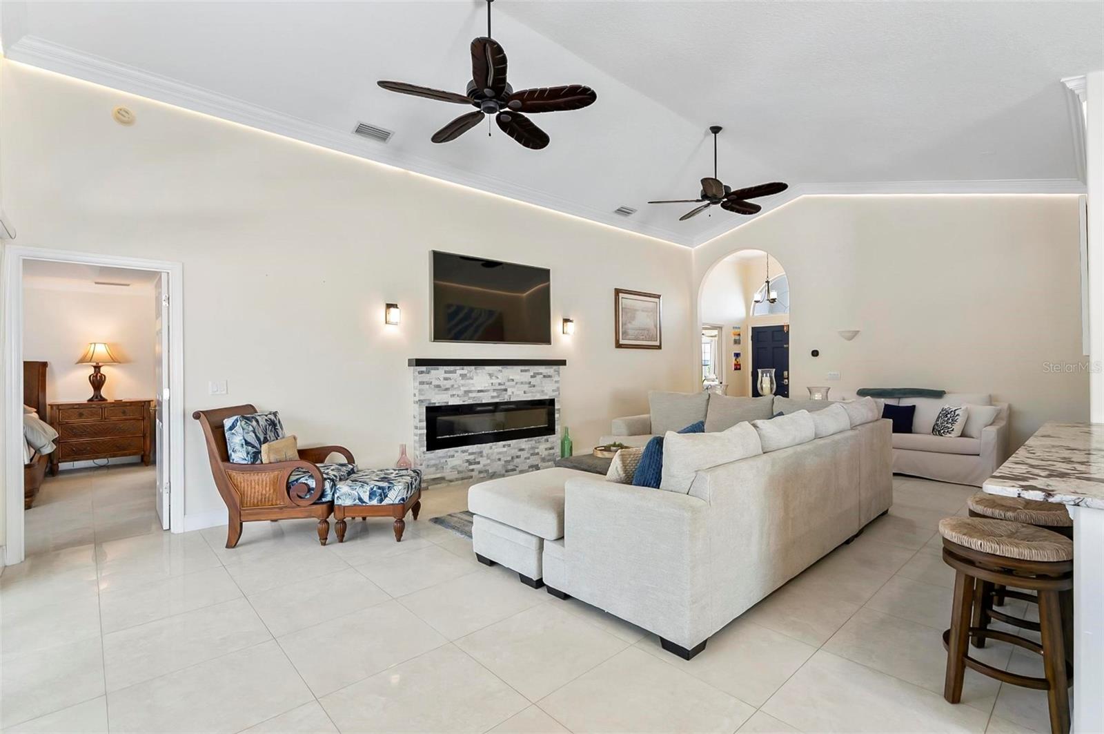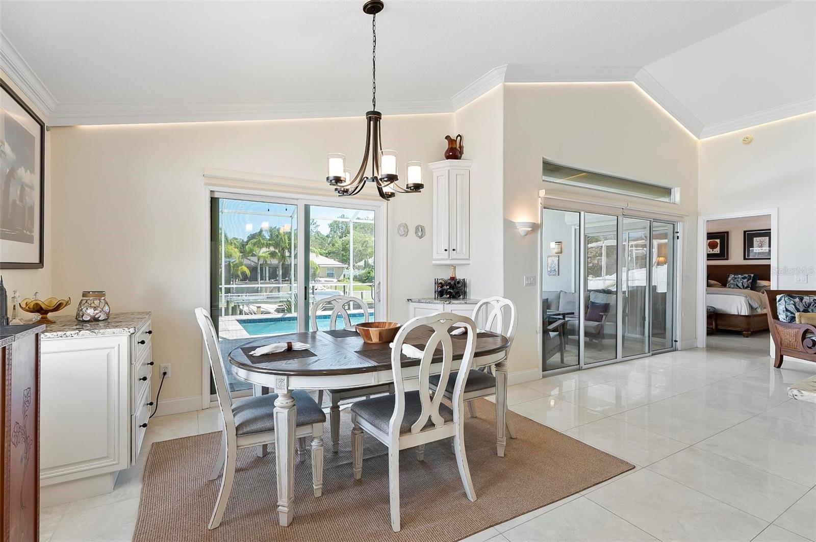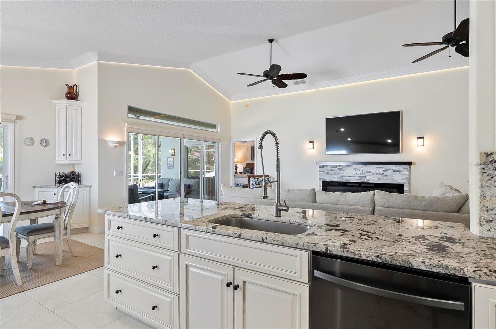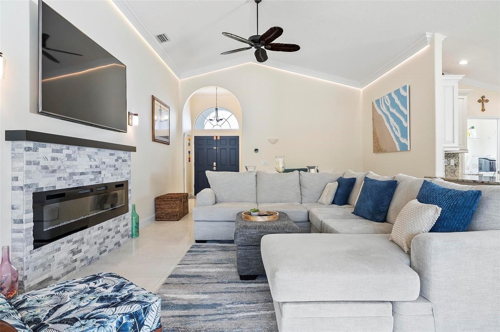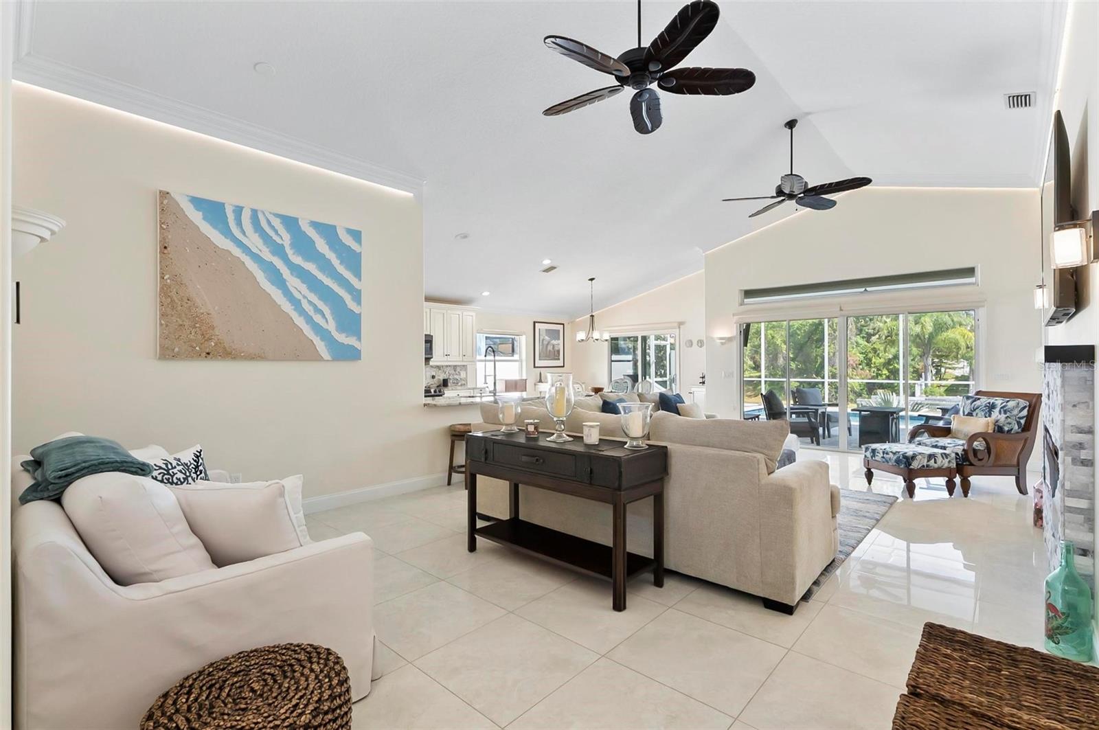Welcome to this beautifully renovated saltwater canal and pool home, perfectly situated on a quiet cul-de-sac and designed for the ultimate coastal lifestyle. Inside, you’ll find stunning granite countertops with bar seating, sleek new stainless appliances, elegant tile flooring and crown molding throughout. The spacious great room is filled with natural light and features triple sliding doors that open seamlessly to the lanai and pool area that includes stainless steel charbroiled and travertine tile in the pool area—ideal for entertaining or relaxing by the summer kitchen. A brand-new dock includes a 10,000 lb. boat lift and dockside/shore power, making days on the water effortless. After your adventures, rinse off in the outdoor shower. Additional highlights include storm shutters on every window, a newer roof (7 years old), a resurfaced driveway (6 years ago), a new AC unit (2023), and a new sprinkler system (2024). You’ll also love the epoxy-coated garage floor, updated ceiling fans and light fixtures, custom blinds, and a stunning modern electric fireplace with stone surround. This home is impeccably clean and truly move-in ready—there’s nothing left to do but enjoy. Don’t miss this rare opportunity to own a gorgeous canal-front retreat. View the virtual video for more details of this property and surrounding area.