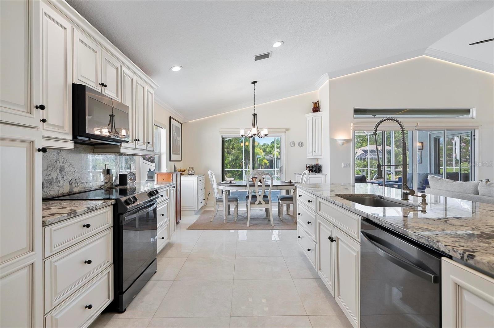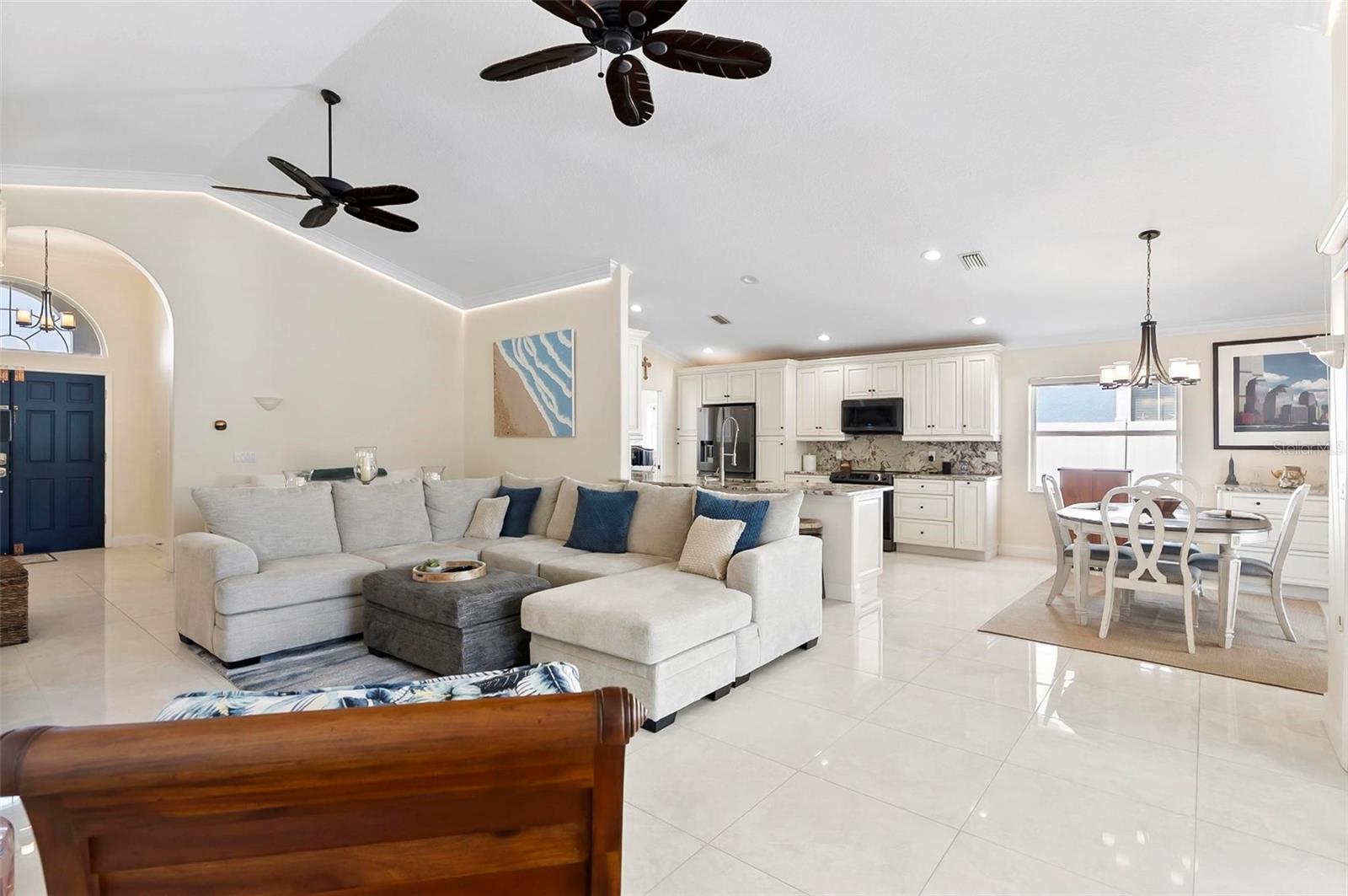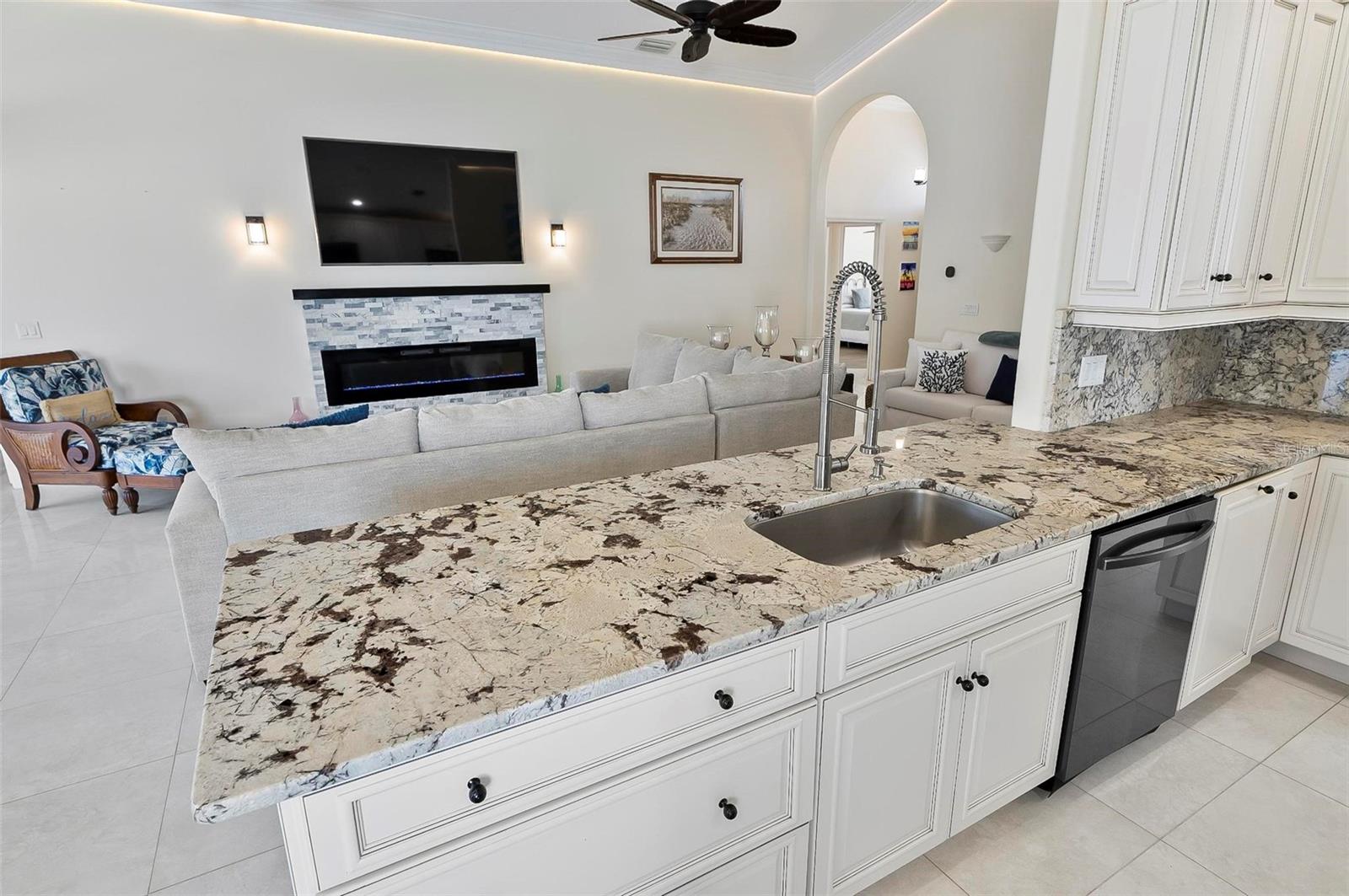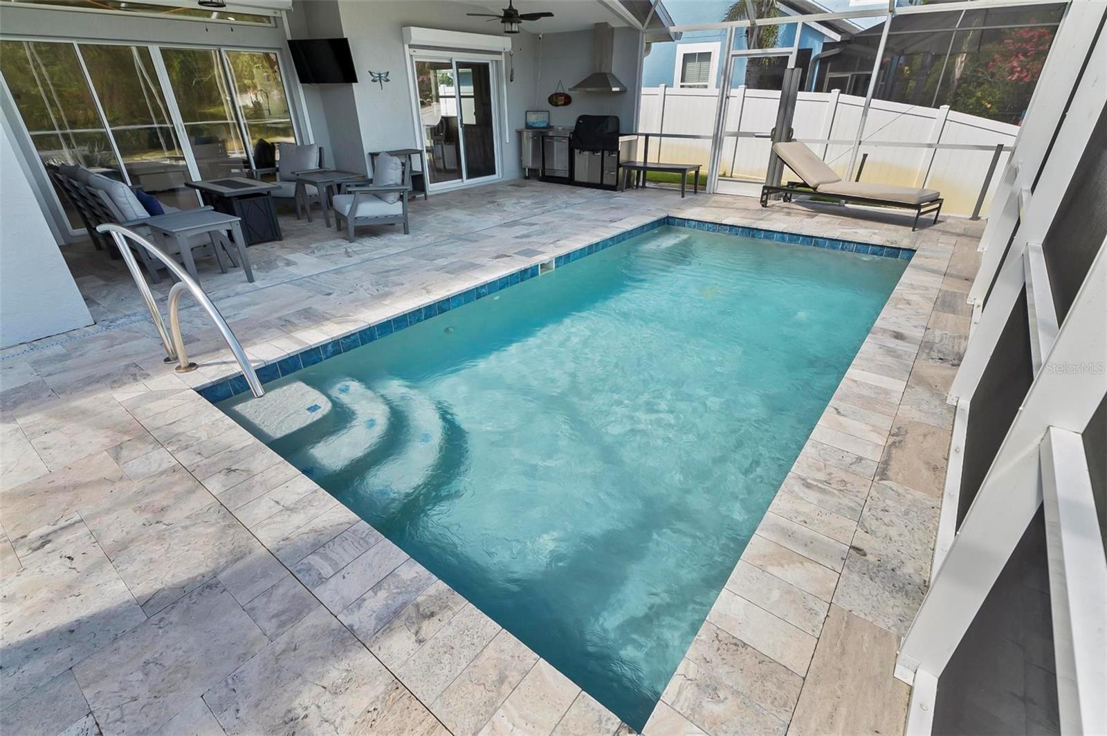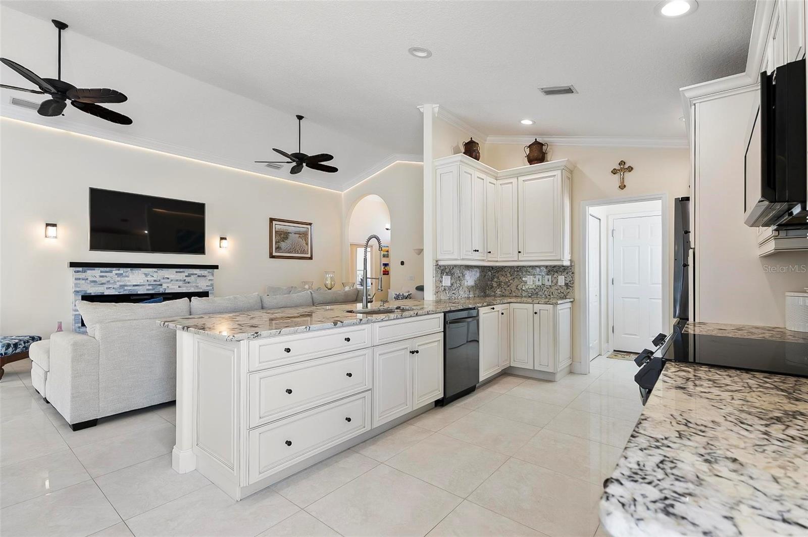 Welcome to this beautifully renovated saltwater canal and pool home, perfectly situated on a quiet cul-de-sac and designed for the ultimate coastal lifestyle. Inside, you’ll find stunning granite countertops with bar seating, sleek new stainless appliances, elegant tile flooring and crown molding throughout. The spacious great room is filled with natural light and features triple sliding doors that open seamlessly to the lanai and pool area that includes stainless steel charbroiled and travertine tile in the pool area—ideal for entertaining or relaxing by the summer kitchen. A brand-new dock includes a 10,000 lb. boat lift and dockside/shore power, making days on the water effortless. After your adventures, rinse off in the outdoor shower. Additional highlights include storm shutters on every window, a newer roof (7 years old), a resurfaced driveway (6 years ago), a new AC unit (2023), and a new sprinkler system (2024). You’ll also love the epoxy-coated garage floor, updated ceiling fans and light fixtures, custom blinds, and a stunning modern electric fireplace with stone surround. This home is impeccably clean and truly move-in ready—there’s nothing left to do but enjoy. Don’t miss this rare opportunity to own a gorgeous canal-front retreat. View the virtual video for more details of this property and surrounding area.