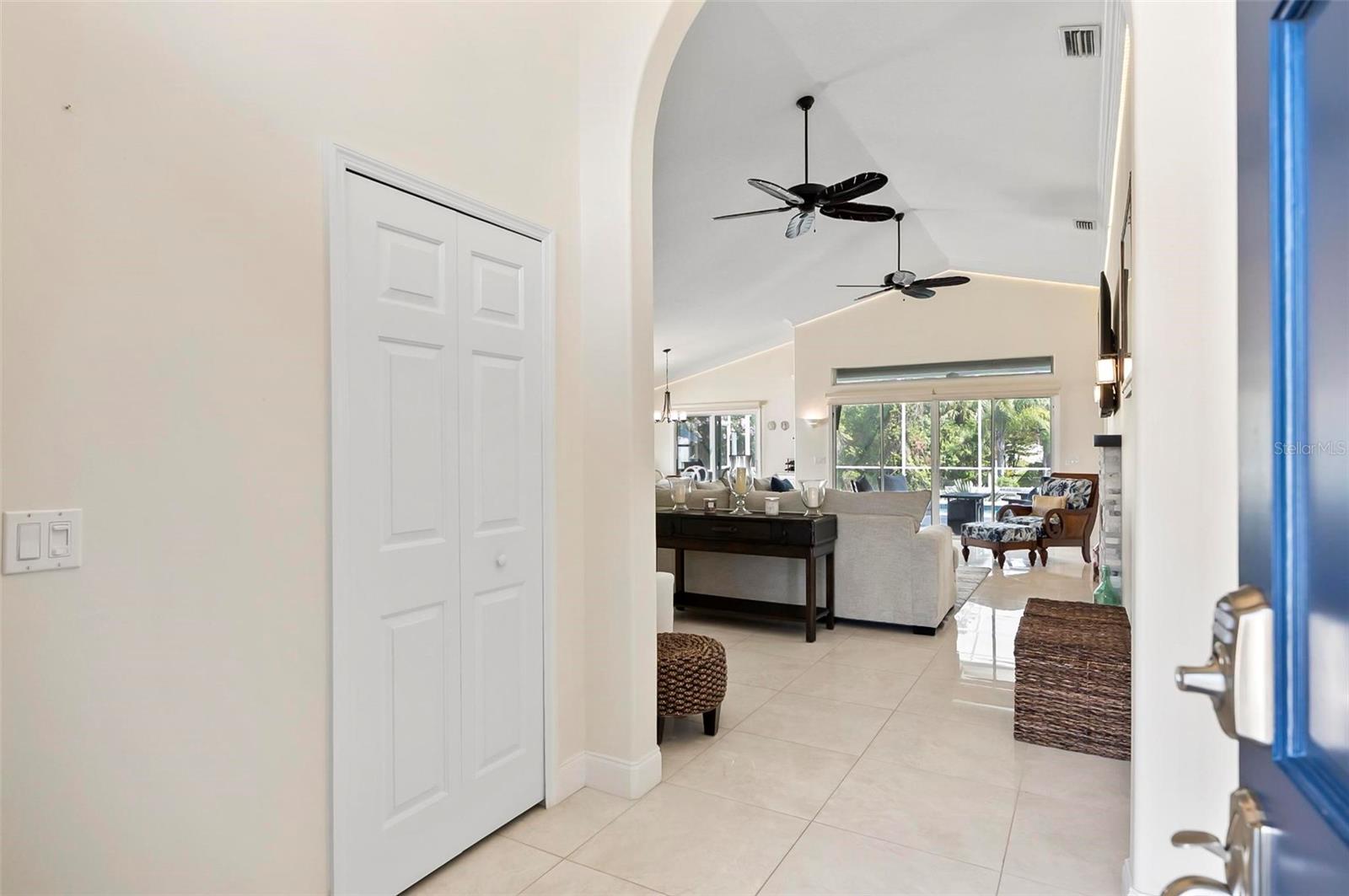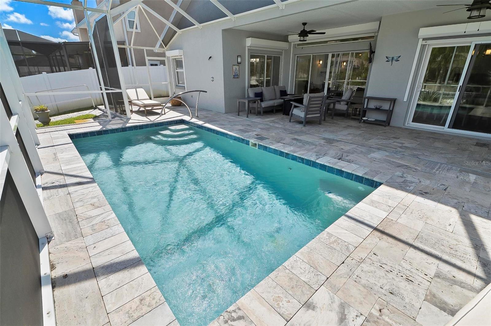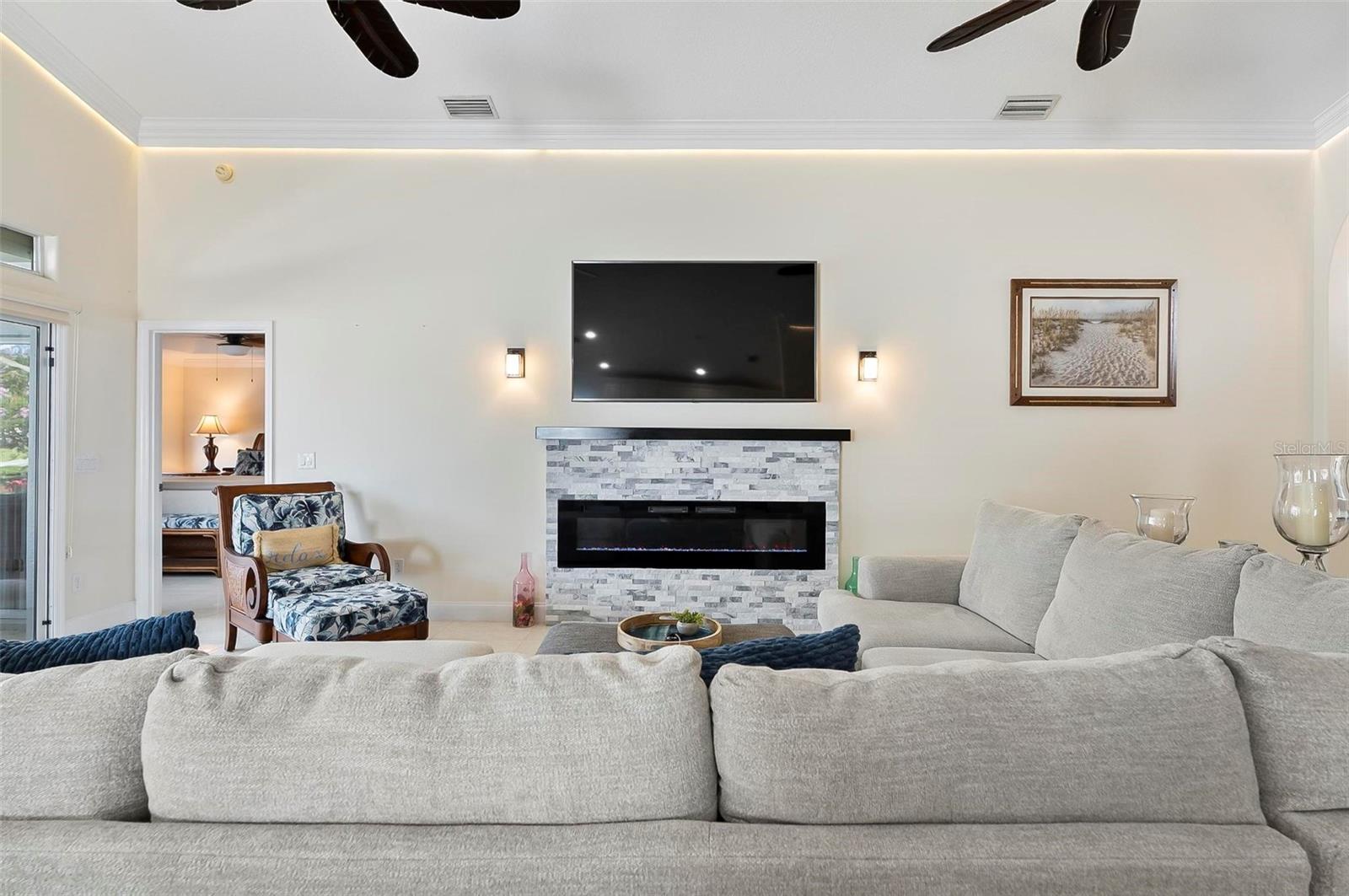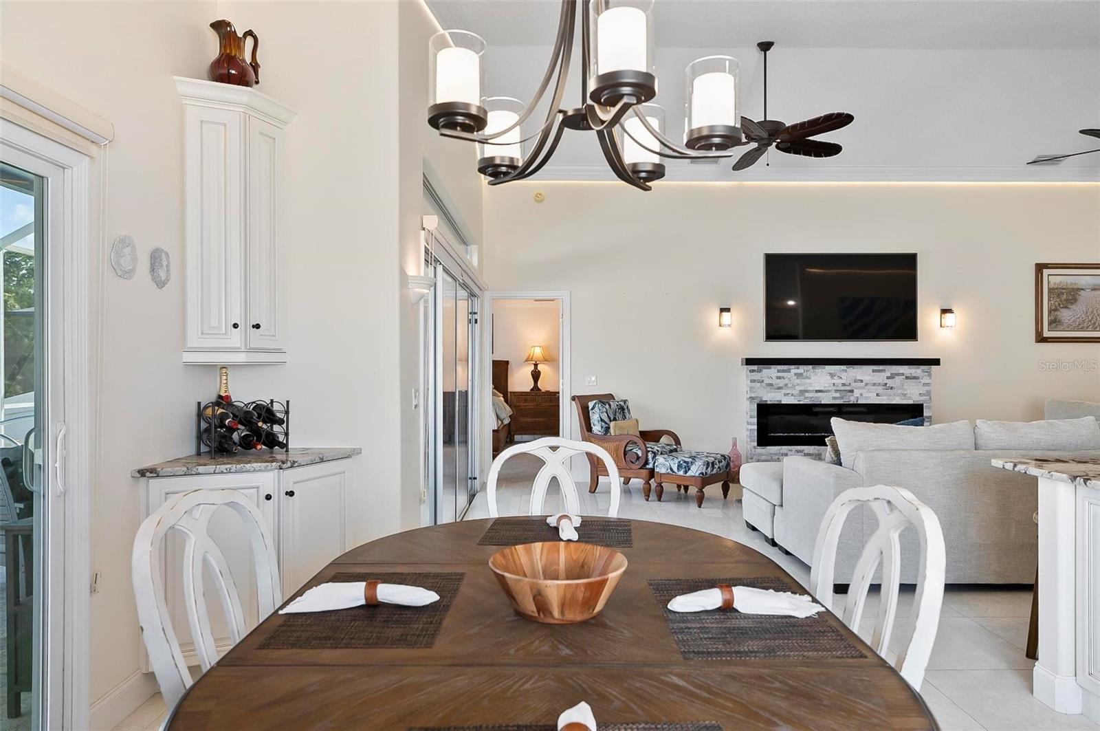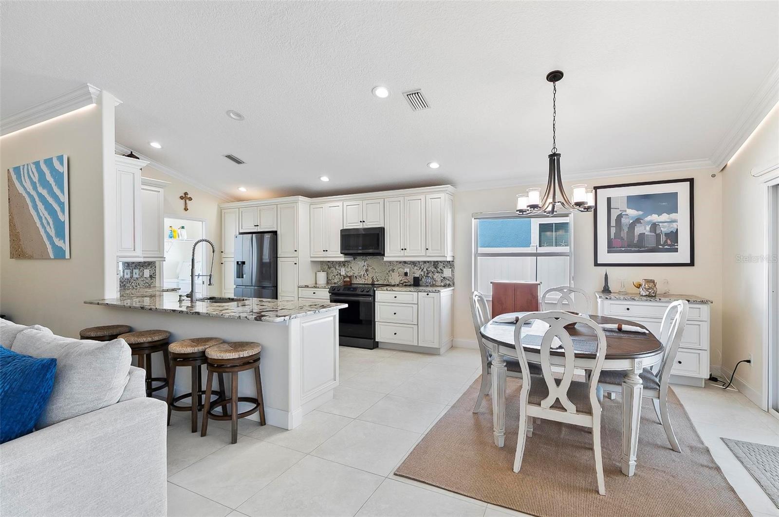 Welcome to this beautifully renovated saltwater canal and pool home, perfectly situated on a quiet cul-de-sac and designed for the ultimate coastal lifestyle. Inside, you’ll find stunning granite countertops with bar seating, sleek new stainless appliances, elegant tile flooring and crown molding throughout. The spacious great room is filled with natural light and features triple sliding doors that open seamlessly to the lanai and pool area that includes stainless steel charbroiled and travertine tile in the pool area—ideal for entertaining or relaxing by the summer kitchen. A brand-new dock includes a 10,000 lb. boat lift and dockside/shore power, making days on the water effortless. After your adventures, rinse off in the outdoor shower. Additional highlights include storm shutters on every window, a newer roof (7 years old), a resurfaced driveway (6 years ago), a new AC unit (2023), and a new sprinkler system (2024). You’ll also love the epoxy-coated garage floor, updated ceiling fans and light fixtures, custom blinds, and a stunning modern electric fireplace with stone surround. This home is impeccably clean and truly move-in ready—there’s nothing left to do but enjoy. Don’t miss this rare opportunity to own a gorgeous canal-front retreat. View the virtual video for more details of this property and surrounding area.