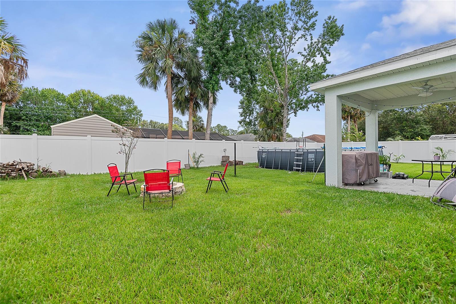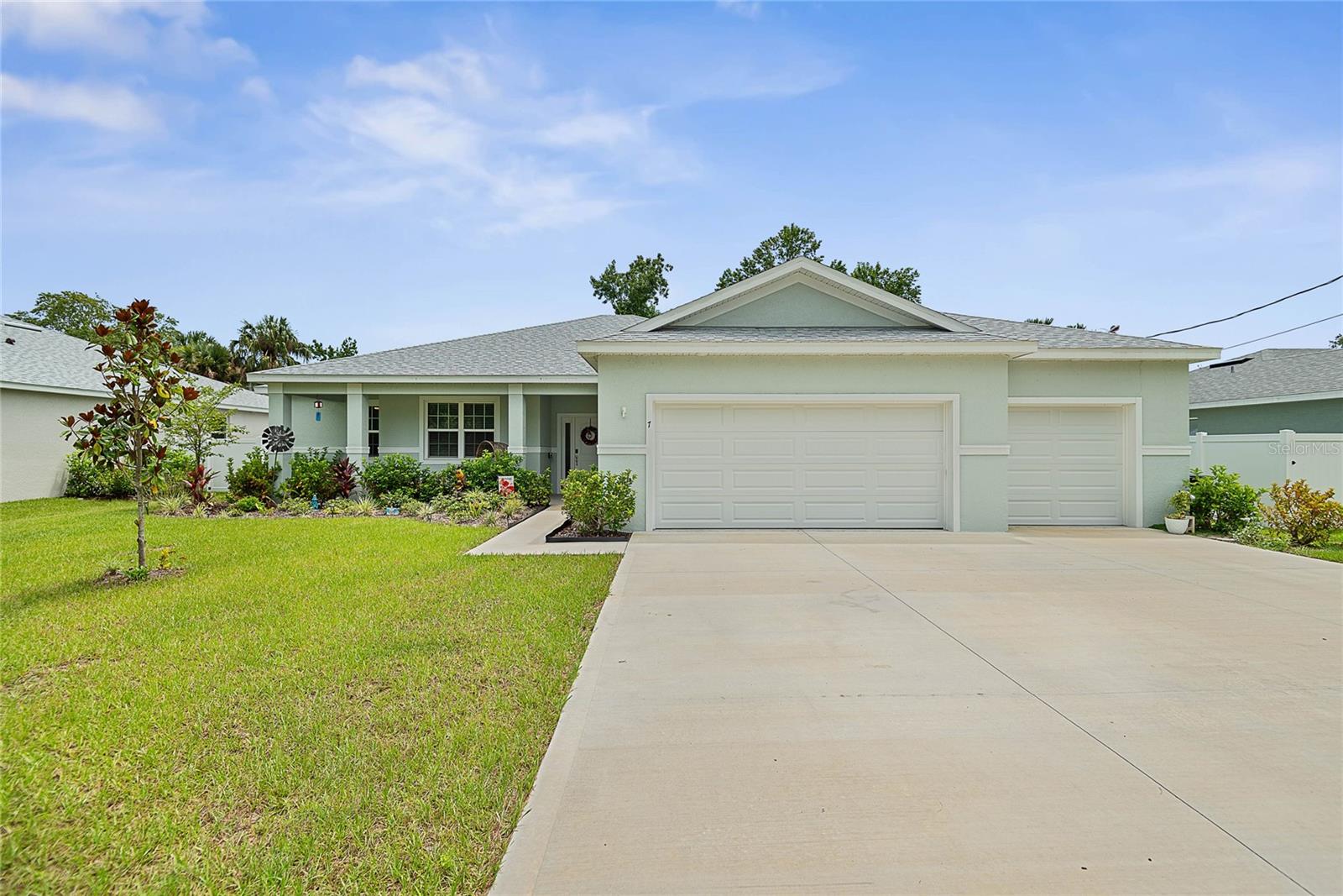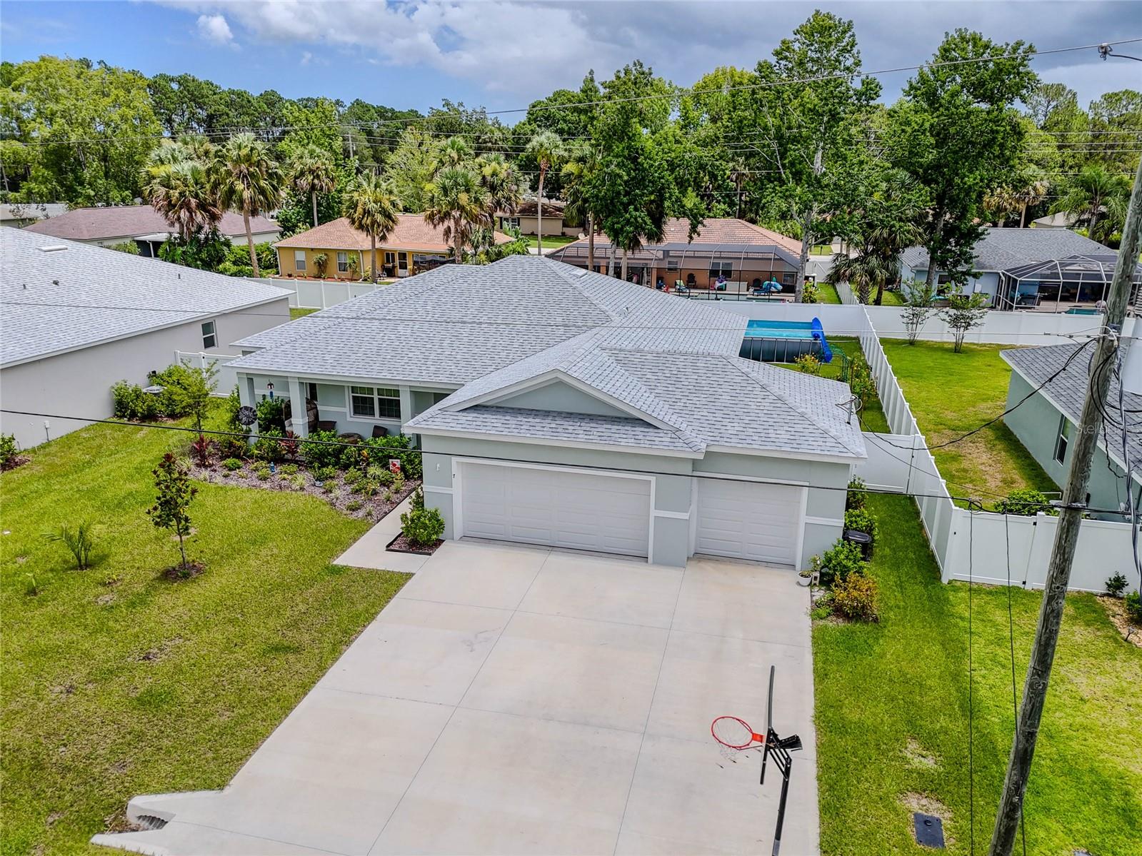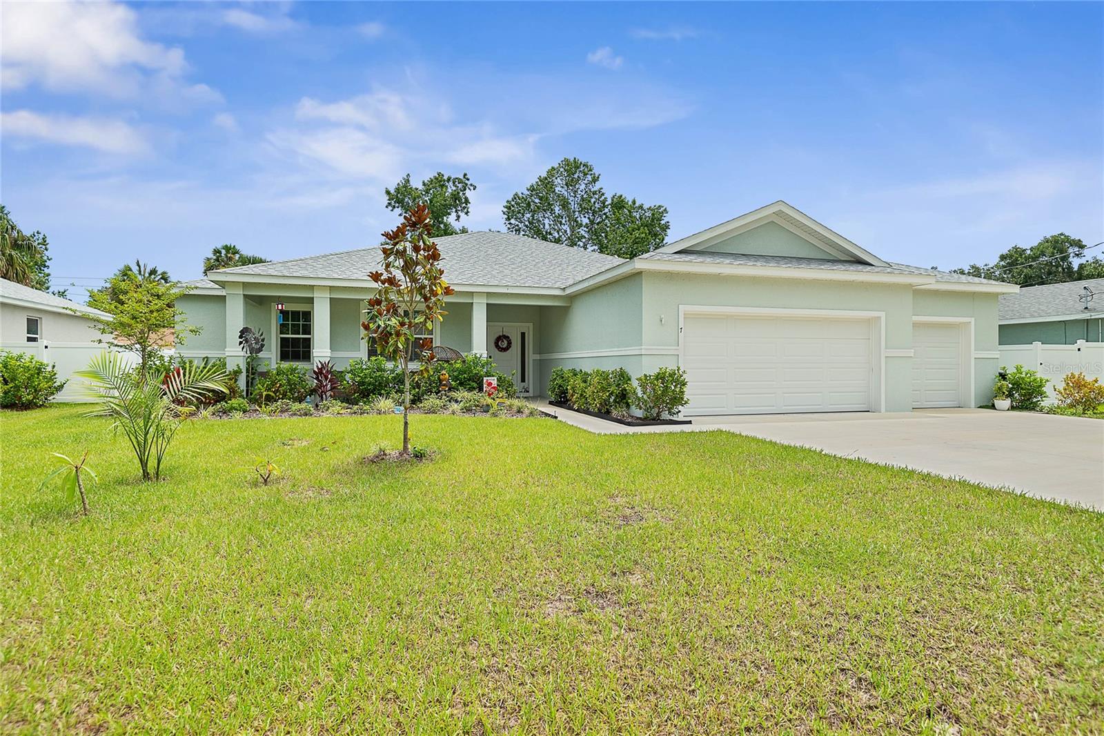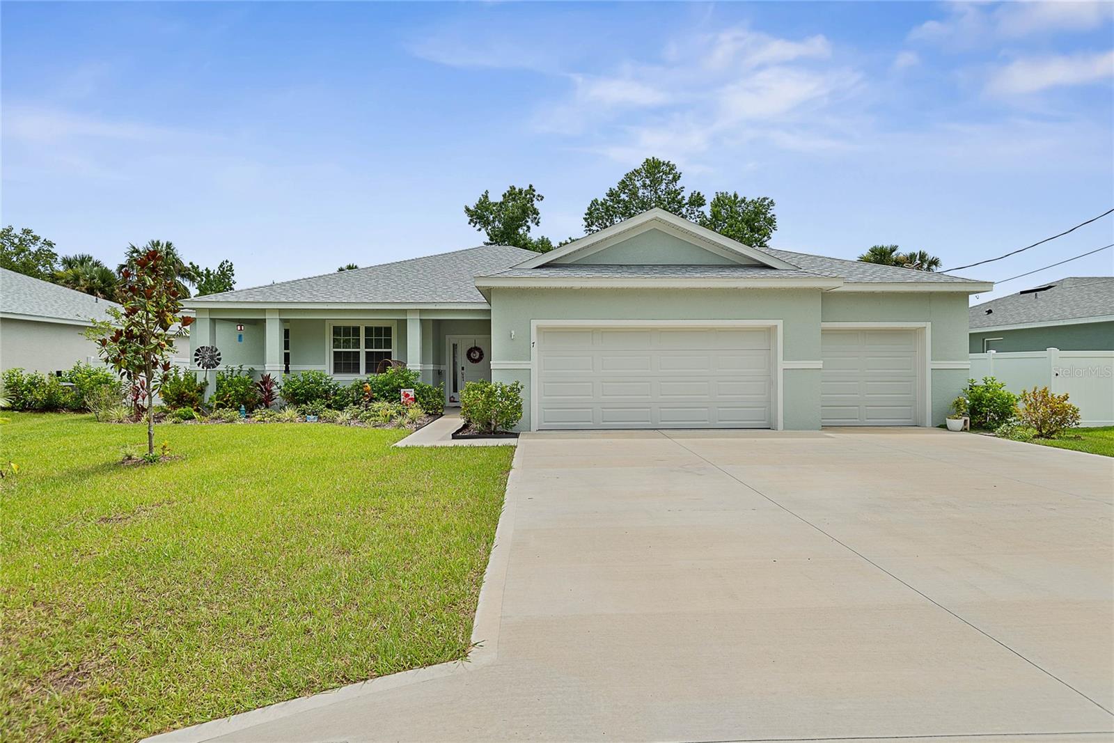 Looking for new construction? Without the hassle of still having to homestead your taxes, install a fence, add landscaping, or wait for completion?! Have the nicest house on the block with its upgraded front porch featuring a beautiful porch swing to soak in the sunshine. With upgraded meticulously maintained landscaping, a lifetime warrantied vinyl fencing, programmable Goovee exterior lighting, and the perfect backyard entertainment space with rear concrete block patio porch and outdoor fireplace you are move in ready! Inside this home features an open floor plan, split bedrooms, an oversized primary bedroom with plenty of space for a lounge or workout area, two spacious walk in closets, a large walk in shower, dual primary bathroom sinks, and a private water closet! Need a fourth bedroom? No worries! The 12x12 flex room/office/den could easily be converted to a fourth bedroom. This gourmet kitchen features a large double door pantry, oversized real wood cabinets, granite countertops, plenty of space for all your spices and the perfect ambiance to get creative in the kitchen. Looking for separate laundry room? No compromise here! Spacious laundry room just to the right of the foyer. This home truly checks all the boxes! Don’t forget about the three car garage & FULL three car driveway! Never park in the swale again. Plenty of space for all your vehicles and to have parking for guest. Don’t miss out on a chance to own a brand new home at a great price in a quiet neighborhood. Just 15 minutes to Flagler Beach! Close to Publix, Walking & Bike Trails, the new Southern Recreational Center featuring pickleball, tennis, and more! No HOA. Your paradise awaits! *Ask about the 10 year structural warranty and lifetime warranty on the vinyl fence*