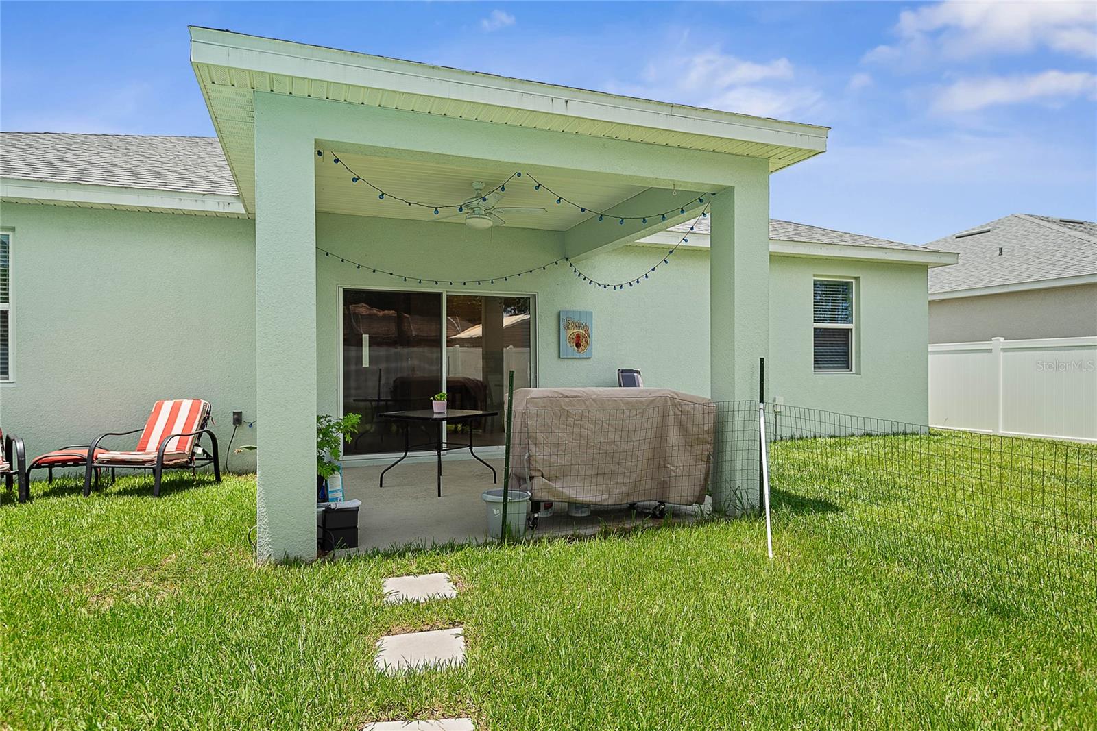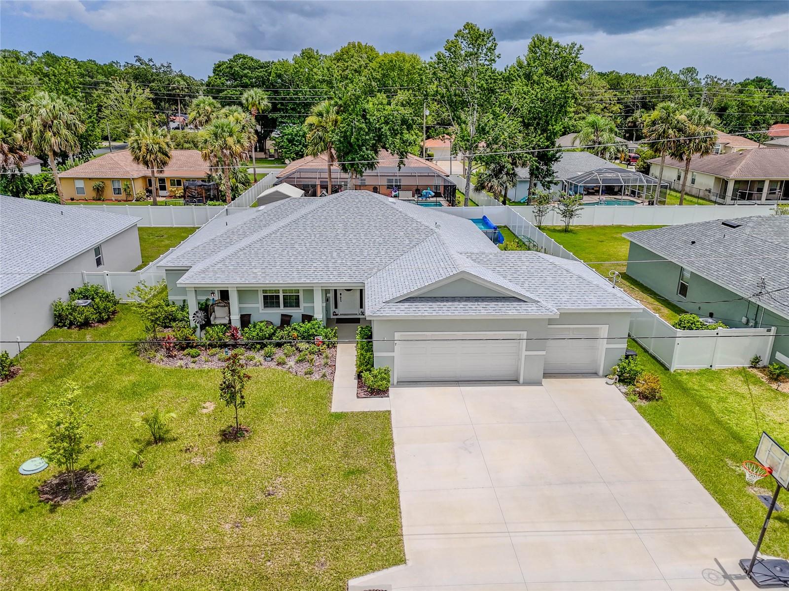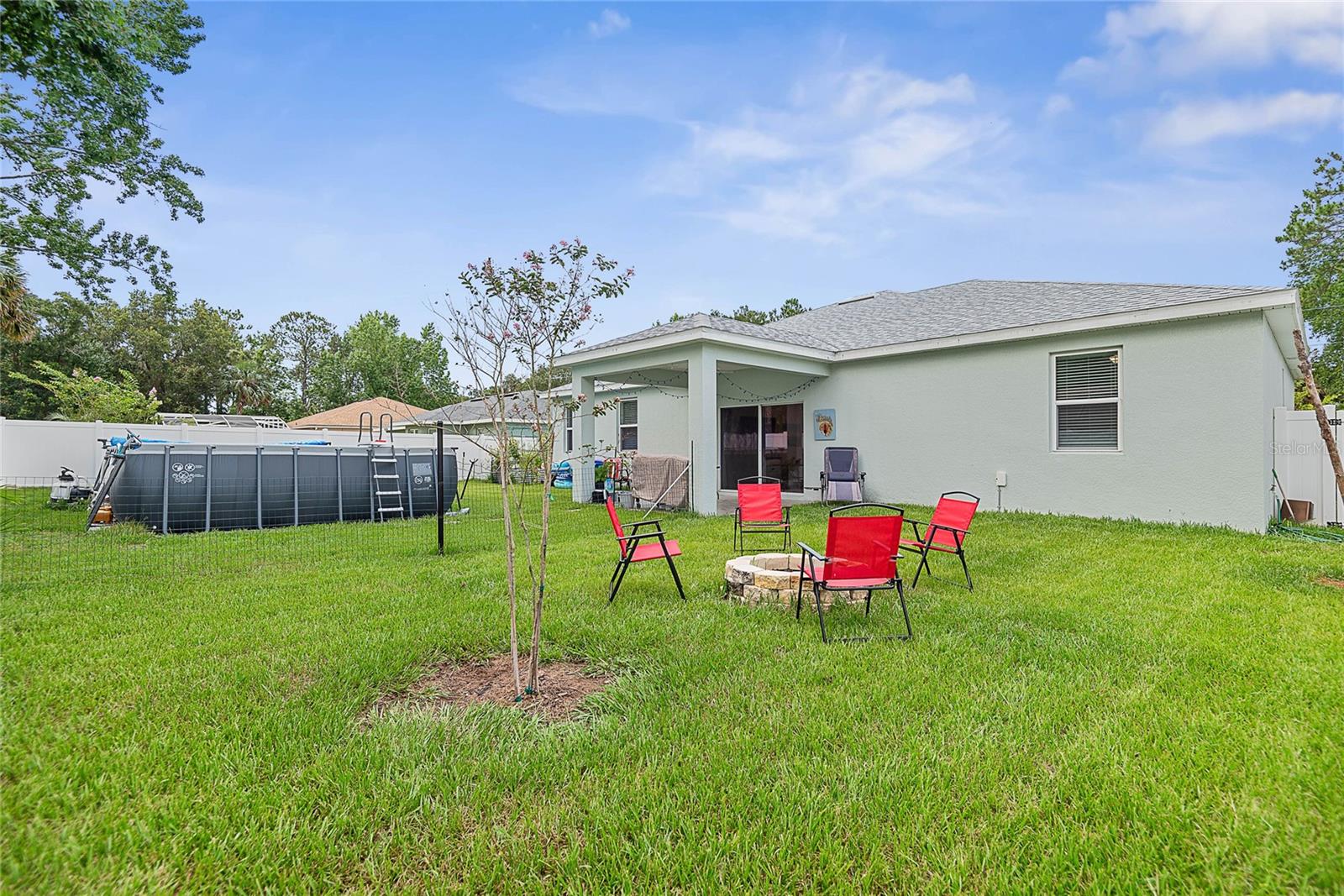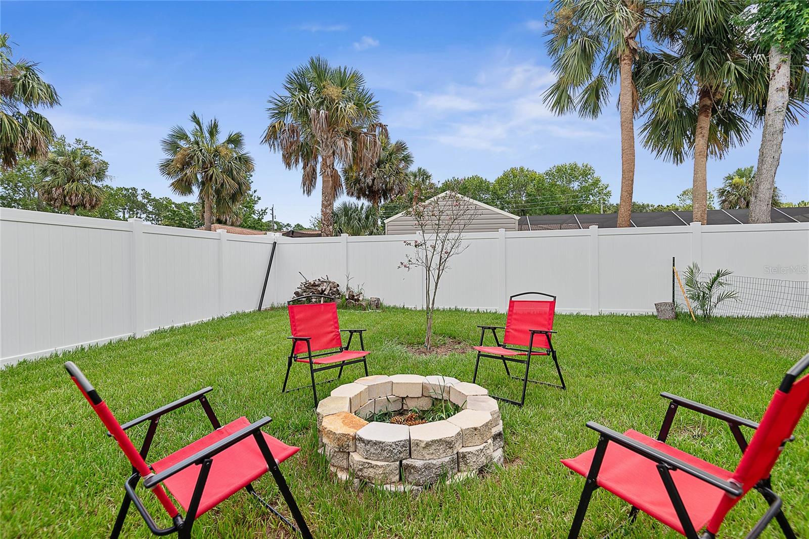 Looking for new construction? Without the hassle of still having to homestead your taxes, install a fence, add landscaping, or wait for completion?! Have the nicest house on the block with its upgraded front porch featuring a beautiful porch swing to soak in the sunshine. With upgraded meticulously maintained landscaping, a lifetime warrantied vinyl fencing, programmable Goovee exterior lighting, and the perfect backyard entertainment space with rear concrete block patio porch and outdoor fireplace you are move in ready! Inside this home features an open floor plan, split bedrooms, an oversized primary bedroom with plenty of space for a lounge or workout area, two spacious walk in closets, a large walk in shower, dual primary bathroom sinks, and a private water closet! Need a fourth bedroom? No worries! The 12x12 flex room/office/den could easily be converted to a fourth bedroom. This gourmet kitchen features a large double door pantry, oversized real wood cabinets, granite countertops, plenty of space for all your spices and the perfect ambiance to get creative in the kitchen. Looking for separate laundry room? No compromise here! Spacious laundry room just to the right of the foyer. This home truly checks all the boxes! Don’t forget about the three car garage & FULL three car driveway! Never park in the swale again. Plenty of space for all your vehicles and to have parking for guest. Don’t miss out on a chance to own a brand new home at a great price in a quiet neighborhood. Just 15 minutes to Flagler Beach! Close to Publix, Walking & Bike Trails, the new Southern Recreational Center featuring pickleball, tennis, and more! No HOA. Your paradise awaits! *Ask about the 10 year structural warranty and lifetime warranty on the vinyl fence*