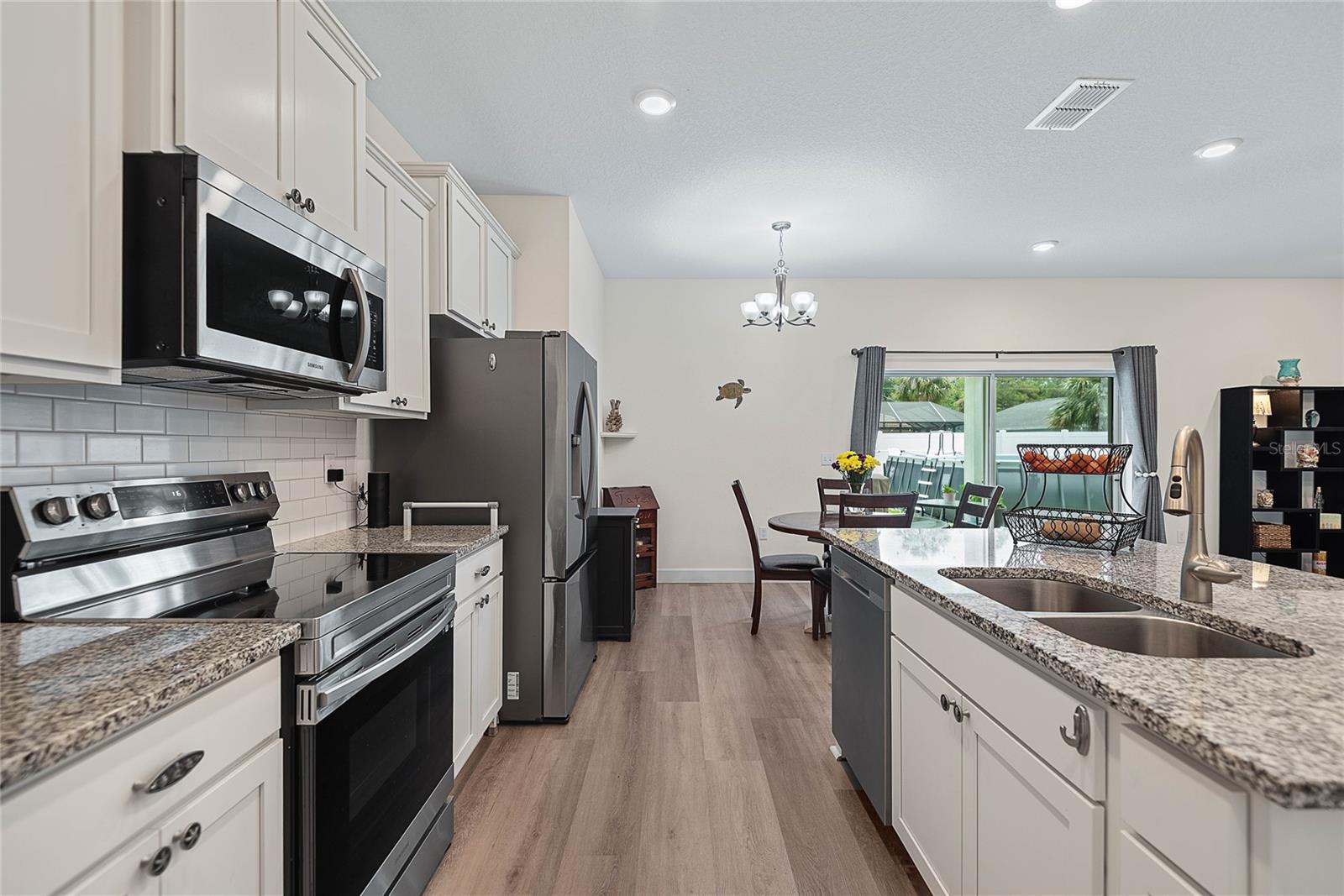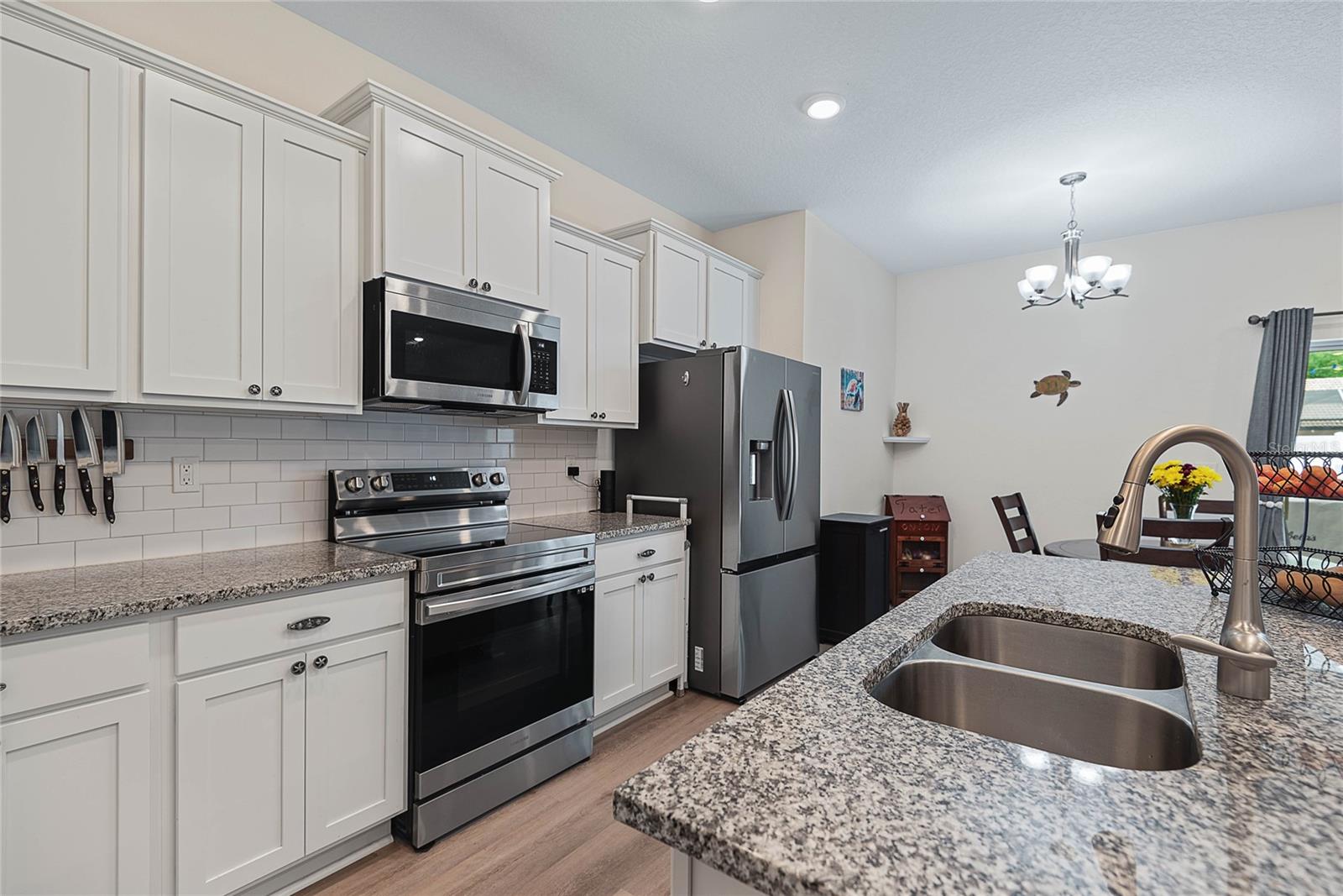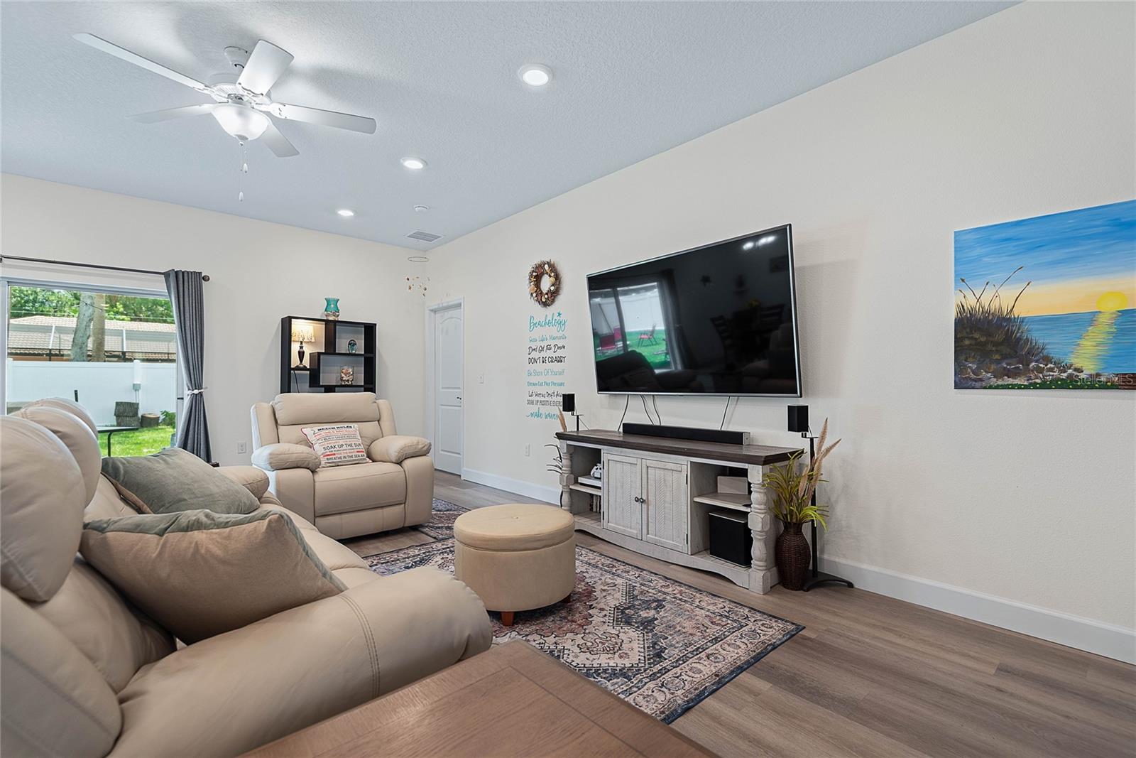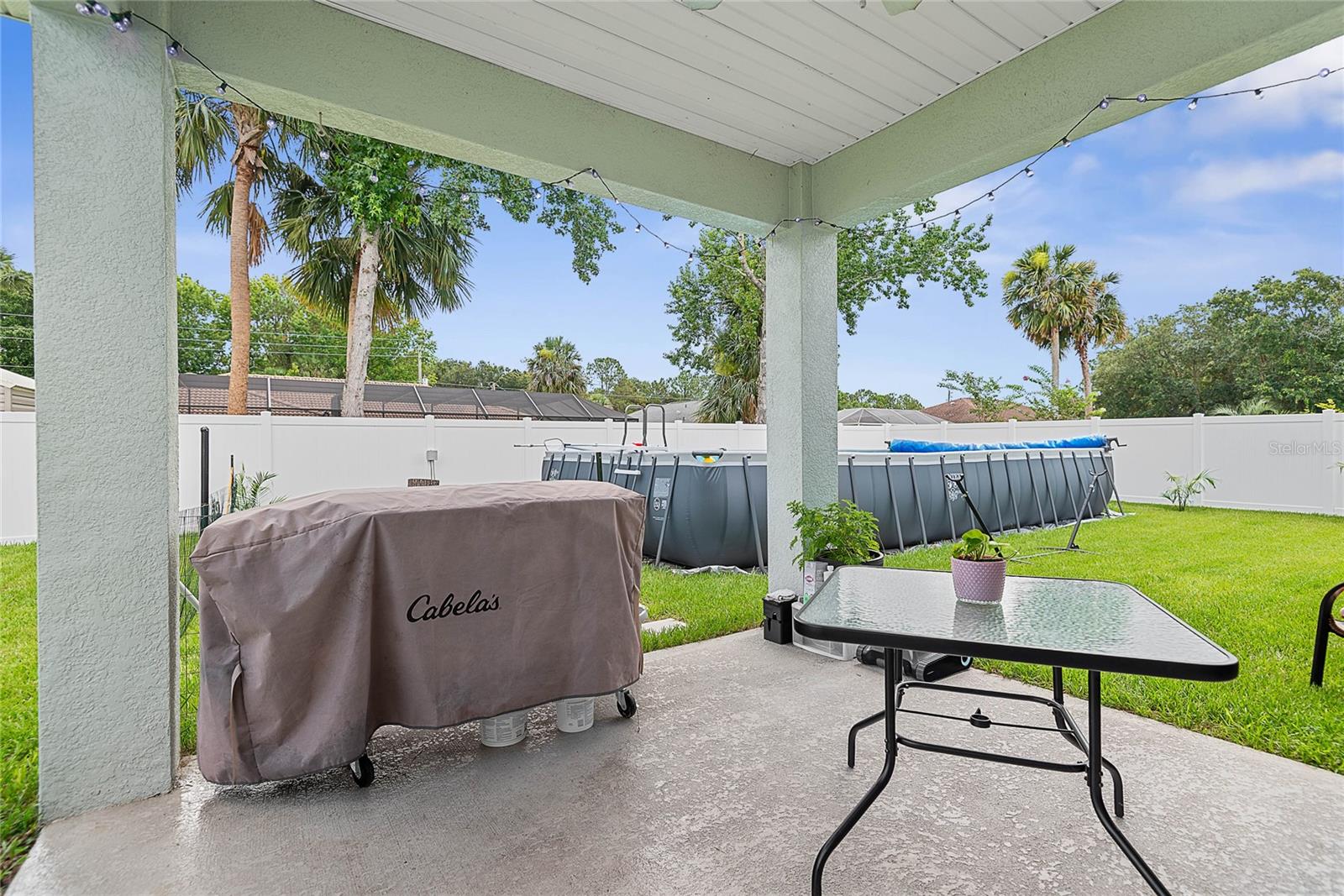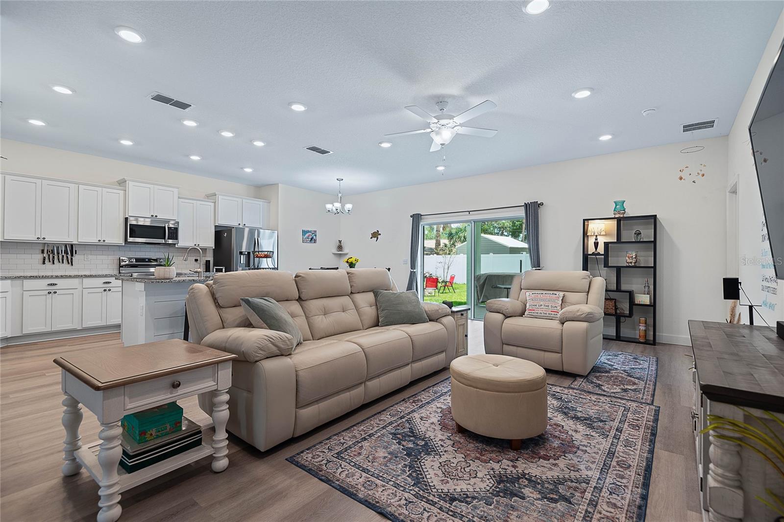 Looking for new construction? Without the hassle of still having to homestead your taxes, install a fence, add landscaping, or wait for completion?! Have the nicest house on the block with its upgraded front porch featuring a beautiful porch swing to soak in the sunshine. With upgraded meticulously maintained landscaping, a lifetime warrantied vinyl fencing, programmable Goovee exterior lighting, and the perfect backyard entertainment space with rear concrete block patio porch and outdoor fireplace you are move in ready! Inside this home features an open floor plan, split bedrooms, an oversized primary bedroom with plenty of space for a lounge or workout area, two spacious walk in closets, a large walk in shower, dual primary bathroom sinks, and a private water closet! Need a fourth bedroom? No worries! The 12x12 flex room/office/den could easily be converted to a fourth bedroom. This gourmet kitchen features a large double door pantry, oversized real wood cabinets, granite countertops, plenty of space for all your spices and the perfect ambiance to get creative in the kitchen. Looking for separate laundry room? No compromise here! Spacious laundry room just to the right of the foyer. This home truly checks all the boxes! Don’t forget about the three car garage & FULL three car driveway! Never park in the swale again. Plenty of space for all your vehicles and to have parking for guest. Don’t miss out on a chance to own a brand new home at a great price in a quiet neighborhood. Just 15 minutes to Flagler Beach! Close to Publix, Walking & Bike Trails, the new Southern Recreational Center featuring pickleball, tennis, and more! No HOA. Your paradise awaits! *Ask about the 10 year structural warranty and lifetime warranty on the vinyl fence*