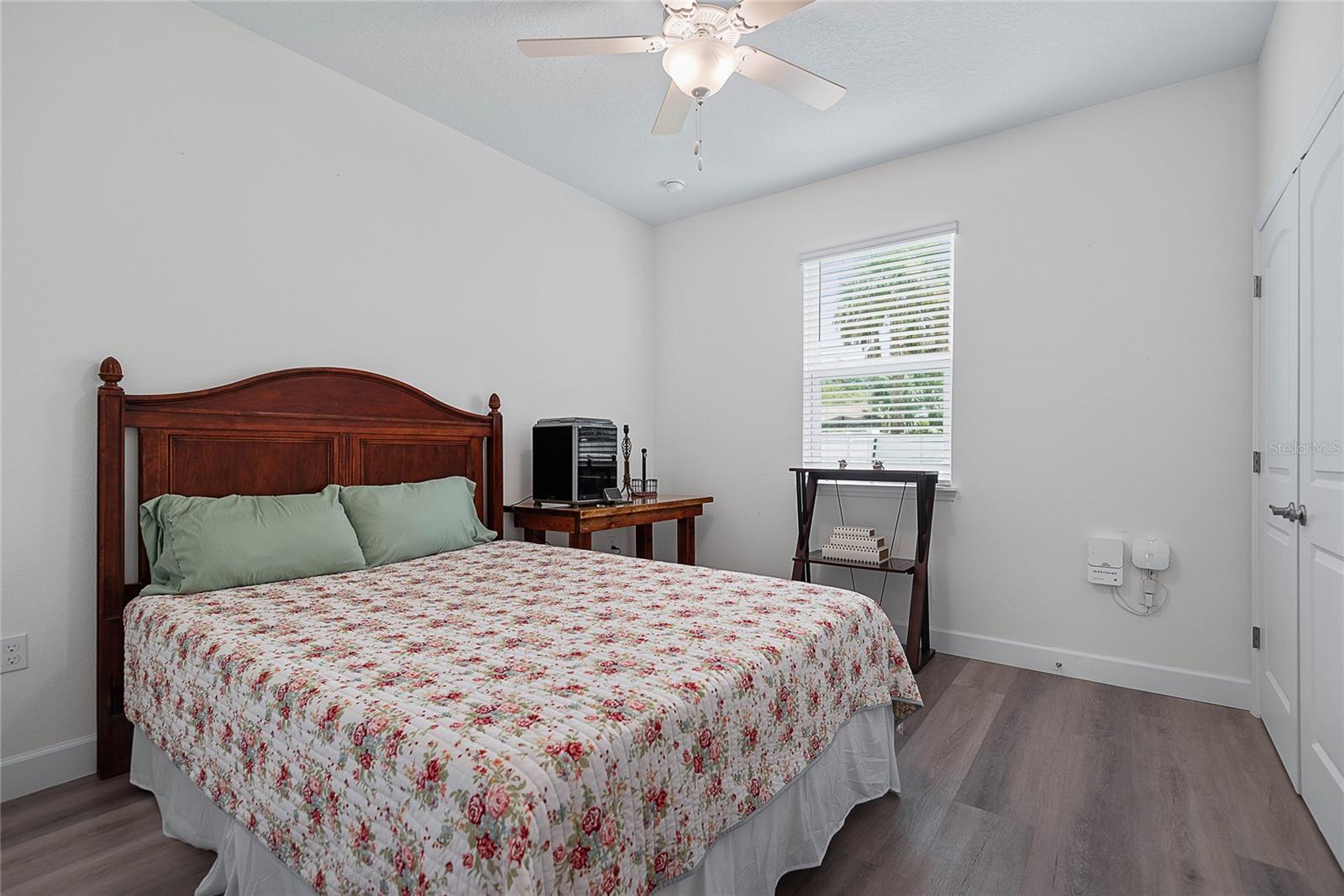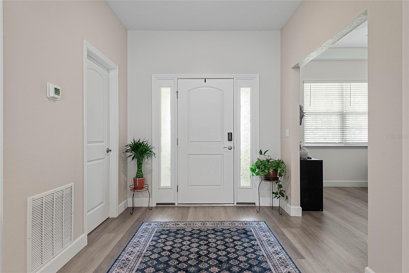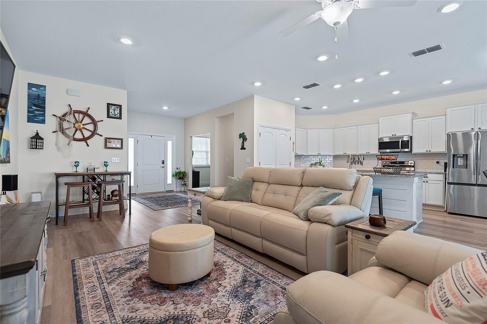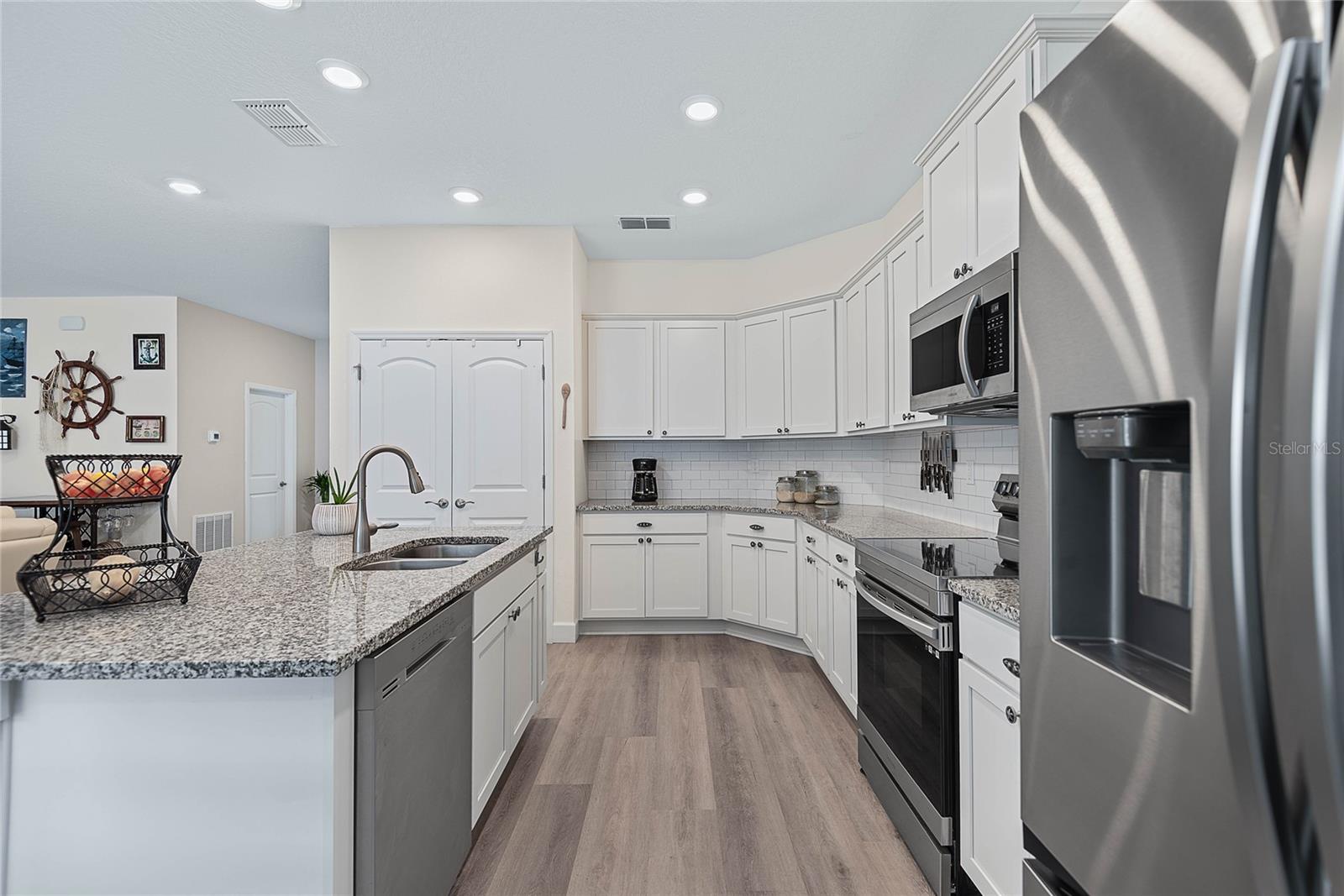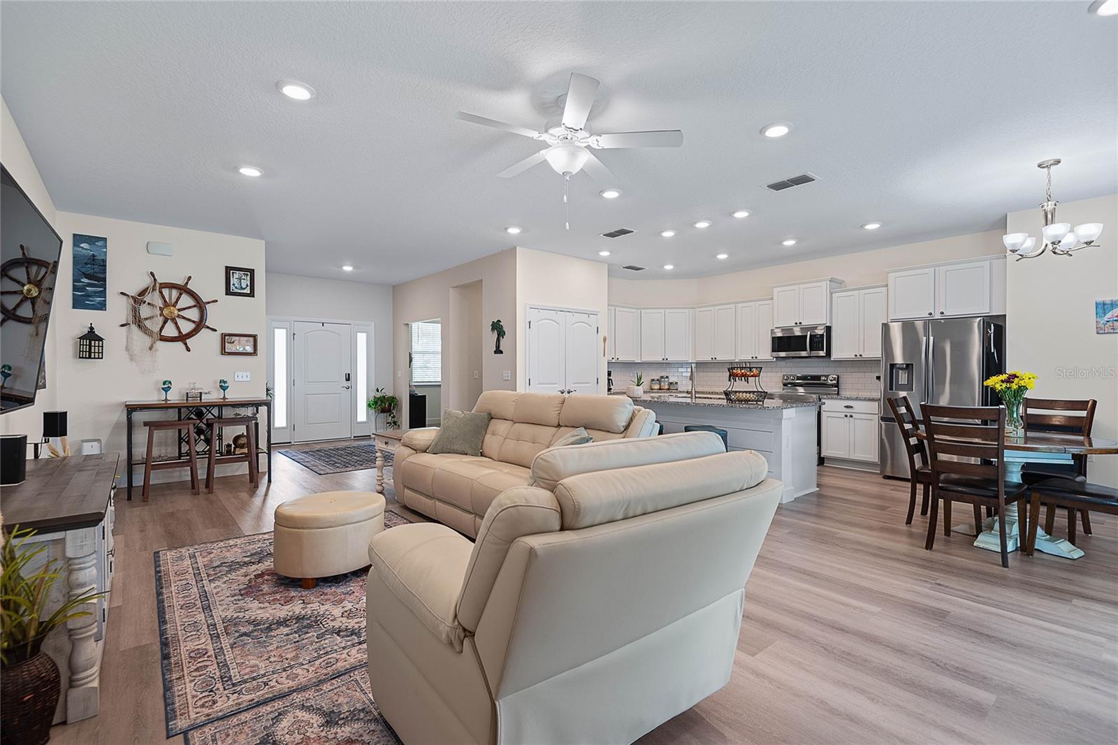 Looking for new construction? Without the hassle of still having to homestead your taxes, install a fence, add landscaping, or wait for completion?! Have the nicest house on the block with its upgraded front porch featuring a beautiful porch swing to soak in the sunshine. With upgraded meticulously maintained landscaping, a lifetime warrantied vinyl fencing, programmable Goovee exterior lighting, and the perfect backyard entertainment space with rear concrete block patio porch and outdoor fireplace you are move in ready! Inside this home features an open floor plan, split bedrooms, an oversized primary bedroom with plenty of space for a lounge or workout area, two spacious walk in closets, a large walk in shower, dual primary bathroom sinks, and a private water closet! Need a fourth bedroom? No worries! The 12x12 flex room/office/den could easily be converted to a fourth bedroom. This gourmet kitchen features a large double door pantry, oversized real wood cabinets, granite countertops, plenty of space for all your spices and the perfect ambiance to get creative in the kitchen. Looking for separate laundry room? No compromise here! Spacious laundry room just to the right of the foyer. This home truly checks all the boxes! Don’t forget about the three car garage & FULL three car driveway! Never park in the swale again. Plenty of space for all your vehicles and to have parking for guest. Don’t miss out on a chance to own a brand new home at a great price in a quiet neighborhood. Just 15 minutes to Flagler Beach! Close to Publix, Walking & Bike Trails, the new Southern Recreational Center featuring pickleball, tennis, and more! No HOA. Your paradise awaits! *Ask about the 10 year structural warranty and lifetime warranty on the vinyl fence*