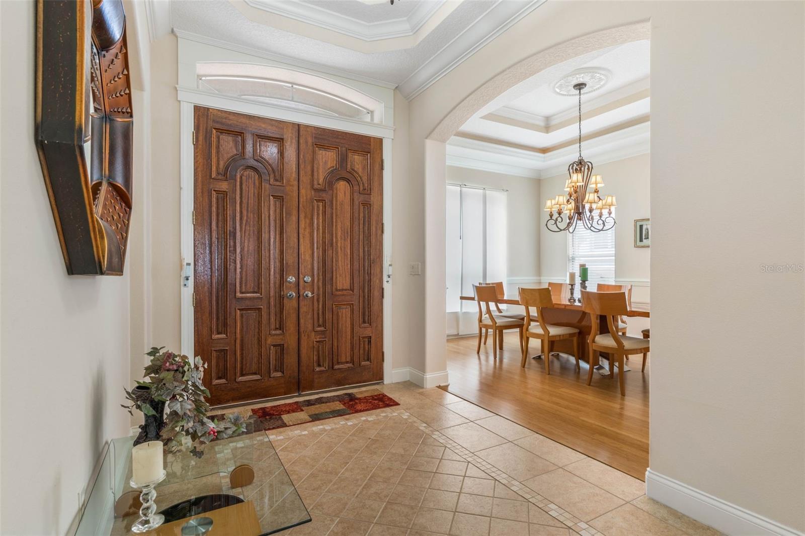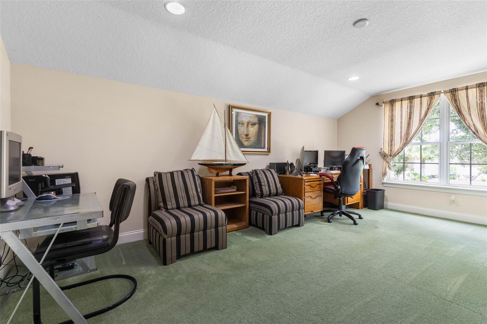 SOLD AS IS, with select furniture included, this meticulously maintained custom residence by Grandeur Homes is located in the prestigious Riverwalk section of Palm Coast Plantation. Light-filled and brimming with upgrades, this home blends elegance, privacy, and modern comfort into one remarkable package. Inside, you’ll find refined details such as rounded drywall corners, 8’ interior doors, a propane cooktop and fireplace, intricate tray ceilings with crown molding, decorative archways and niches, and transom windows above the kitchen backsplash. The open-concept layout enhances the flow between spaces, while upscale finishes create a warm, sophisticated atmosphere throughout. A state-of-the-art camera system ensures 24/7 peace of mind. Thoughtful design and quality craftsmanship are evident in every room. Outdoor living is just as impressive—with a paver driveway, brand-new landscaping and upgraded sprinkler system, a tile roof, and an outstanding entertainment area. The private, walled-in courtyard features an outdoor kitchen, new screen enclosure, and decorative lighting. The backyard, which backs onto serene conservation land, includes a custom entertainment space the owner is transforming into a simulated golf retreat—and will include a set of golf clubs with the purchase. With 4 spacious bedrooms and 3 full bathrooms, this home offers flexibility for relaxed daily living or hosting guests in style. Palm Coast Plantation provides gated security and top-tier amenities: a clubhouse, resort-style pool, fitness center, tennis and pickleball courts, basketball, bocce ball, shuffleboard, a 128-acre lake with pier and gazebo, plus boat and RV storage. Conveniently located near shopping, dining, medical facilities, and the I-95 corridor—yet only minutes from the Atlantic beaches—this is a rare Florida lifestyle opportunity.