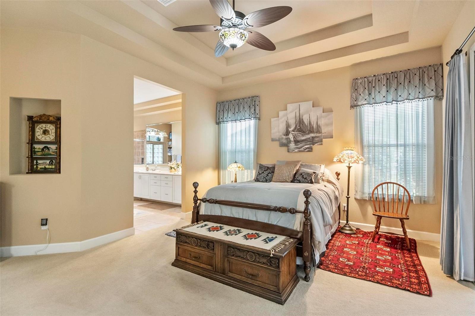 You'll be amazed by the beautifully landscaped front garden, impressed by the thoughtfully designed interior layout and features, and absolutely captivated by the serene backyard lake view! ICI Grand Stratford model in fabulous Creekside Village at Grand Haven offers 4 Bedroom, 3 Bathroom, 3 car garage, and 2633 Sqft living space complete with an oversized L-shaped POOL. This gem showcases 12’ceiling in the main living areas and 10’ in the bedrooms. Recent upgrades include a NEW ROOF and interior A/C unit in 2024. Meticulously tended, the property features a split floor plan and includes a formal dining room, family room, and breakfast nook for added privacy. The spacious living room features abundant windows and extra-wide sliding glass doors that flood the space with natural light. The primary suite includes a garden tub, oversized walk-in shower, dual vanities, and a large walk-in closet. Both guest bathrooms are equipped with a walk-in tub and shower combination. The elegant kitchen offers sitting area, 42” cabinets, porcelain tile backsplash, and granite countertop. Throughout the home, you’ll find luxury Tiffany-style light fixtures. Enjoy cozy winter evenings by the beautiful gas fireplace. Additionally, the home is equipped with a water softening system, which is beneficial for your health. Generously sized laundry room offers plenty of shelving and a utility sink. The oversized 3-car garage provides ample space not only for vehicles but also for extra storage, a workshop area, or hobby space—perfect for those who need flexibility and functionality. The pool patio overlooks the oversized, lush green backyard and the tranquil lake view. To enjoy the Florida lifestyle to the fullest, take advantage of the exceptional recreational activities this community offers: clubhouse, 2 public pools, 2 restaurants, fitness center, tennis courts, and countless walking trails with street lighting. If you've ever dreamed of living in paradise—this is your place!