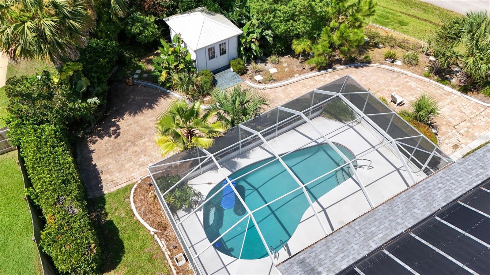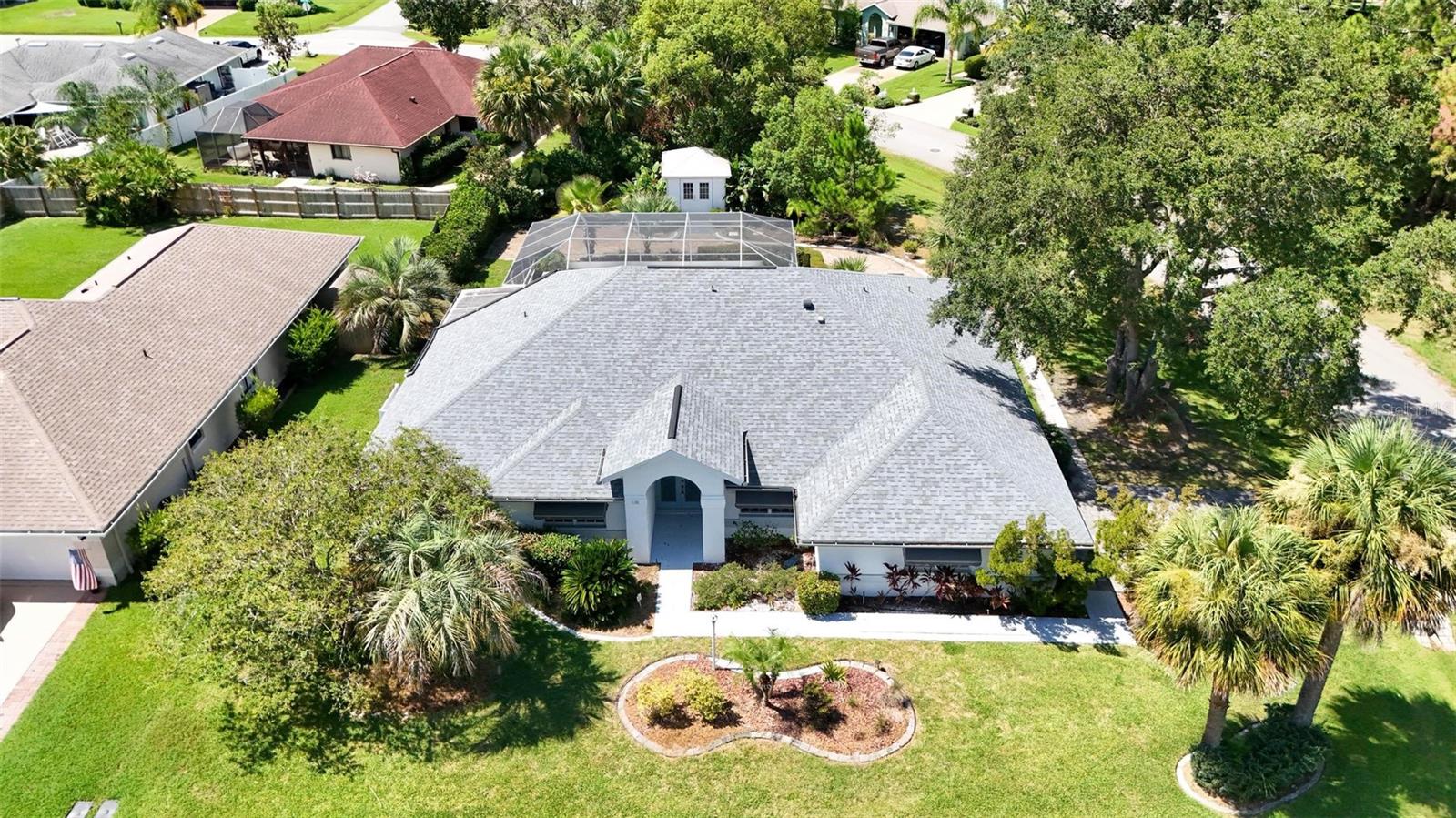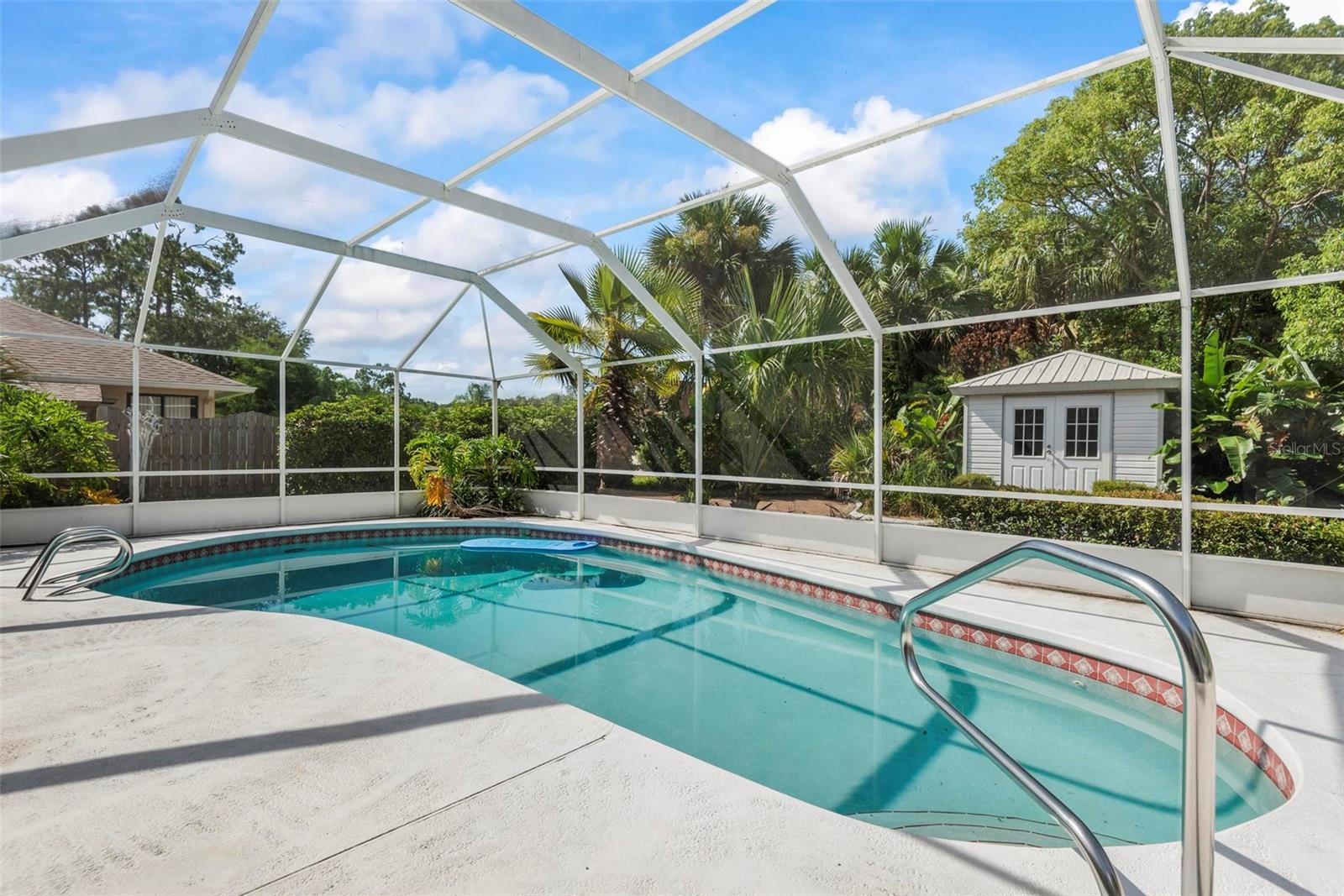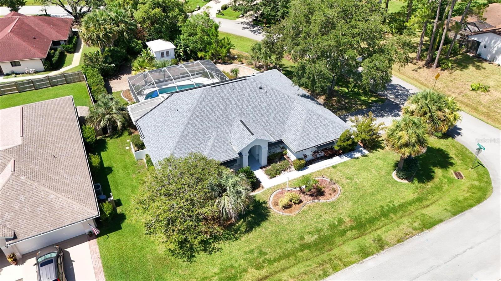 Spacious 4-Bed, 3-Bath Home with Split Layout, Pool & Huge Yard! This beautifully maintained 4-bedroom, 3-bath home is the perfect setup for multi-generational living, guests, or just having extra space to spread out. Sitting on a oversize, professionally landscaped corner lot with large covered patio, fully screened private pool and custom storage shed, this one really has it all! Inside, the smart split-floor plan offers great privacy and flexibility. One side of the home features two bedrooms and two full bathrooms, including a spacious primary suite. On the other side, you’ll find two more bedrooms and a full bath — ideal for families, guests, or even a home office setup. This third bath is also accessible from the pool area! The kitchen has been updated with modern finishes, includes a Breakfast Nook and flows into a bright family room, living room and dining room filled with natural light. Step out back and you’ll love the oversized yard, lush landscaping, and sparkling pool — great for summer BBQs, relaxing weekends, or entertaining friends. With updates like Plantation Shutters, Travertine Floors, new roof in 2023, enjoy a flexible layout, and plenty of outdoor space. This home is move-in ready and located close to schools, shopping, and everything you need. 1 Year Home Warranty provided to the Buyers at closing! Come see it for yourself — you’ll love the space and the setup!