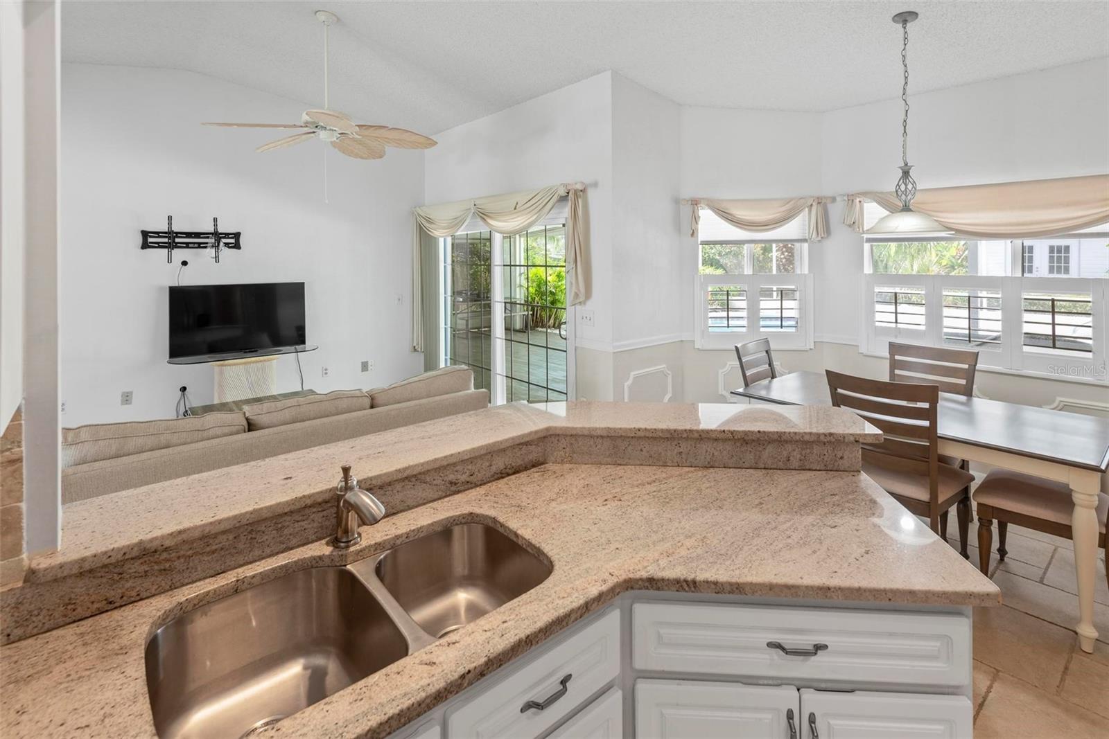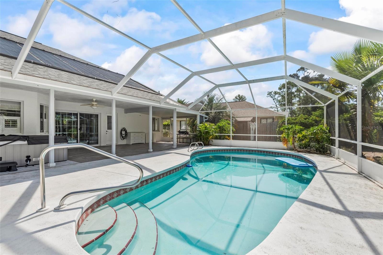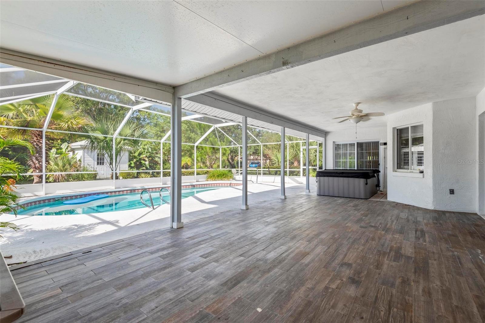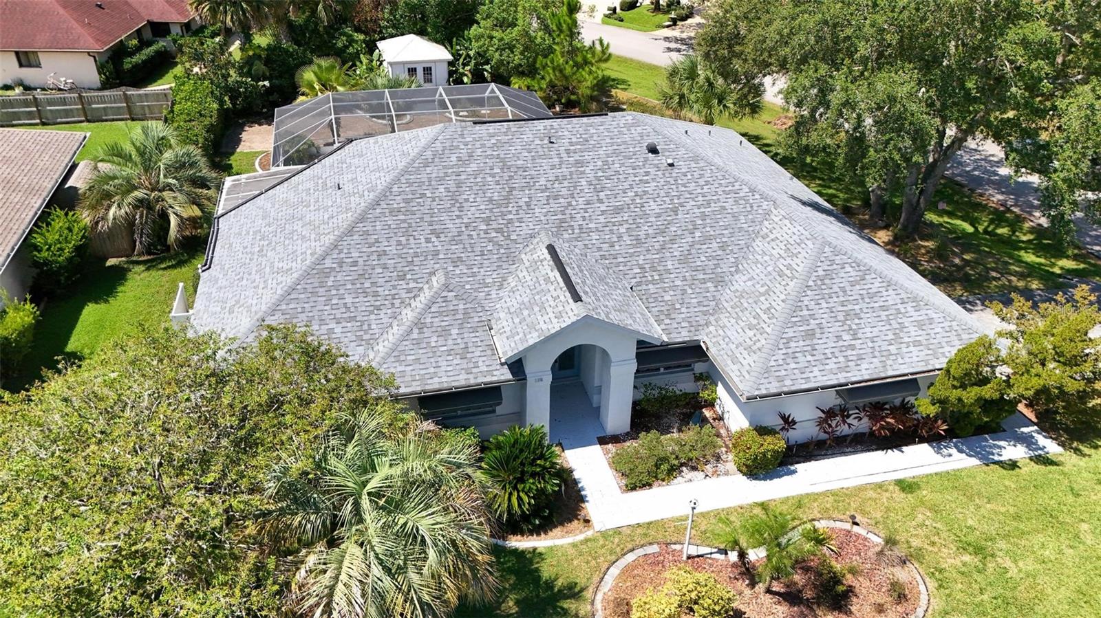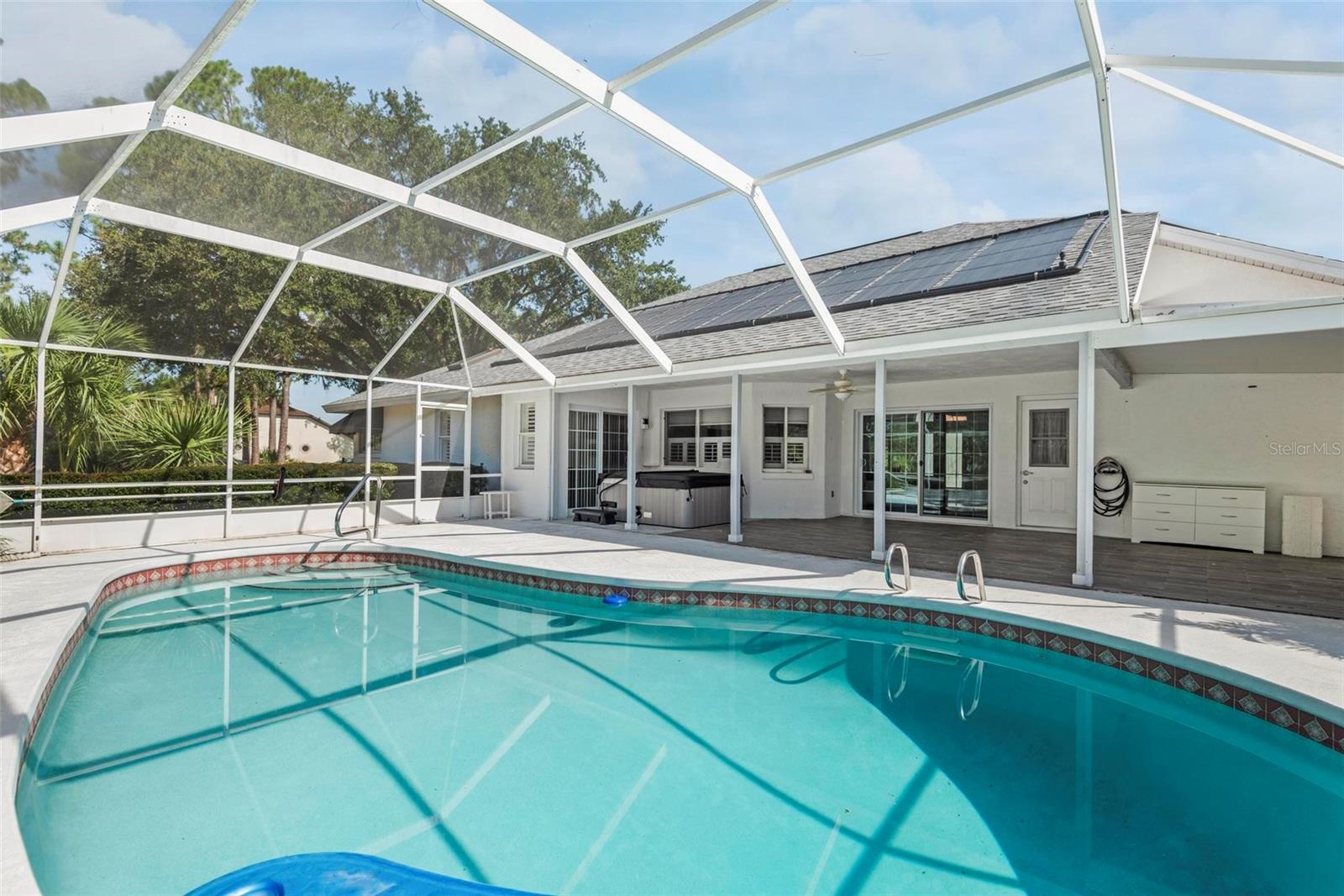 Spacious 4-Bed, 3-Bath Home with Split Layout, Pool & Huge Yard! This beautifully maintained 4-bedroom, 3-bath home is the perfect setup for multi-generational living, guests, or just having extra space to spread out. Sitting on a oversize, professionally landscaped corner lot with large covered patio, fully screened private pool and custom storage shed, this one really has it all! Inside, the smart split-floor plan offers great privacy and flexibility. One side of the home features two bedrooms and two full bathrooms, including a spacious primary suite. On the other side, you’ll find two more bedrooms and a full bath — ideal for families, guests, or even a home office setup. This third bath is also accessible from the pool area! The kitchen has been updated with modern finishes, includes a Breakfast Nook and flows into a bright family room, living room and dining room filled with natural light. Step out back and you’ll love the oversized yard, lush landscaping, and sparkling pool — great for summer BBQs, relaxing weekends, or entertaining friends. With updates like Plantation Shutters, Travertine Floors, new roof in 2023, enjoy a flexible layout, and plenty of outdoor space. This home is move-in ready and located close to schools, shopping, and everything you need. 1 Year Home Warranty provided to the Buyers at closing! Come see it for yourself — you’ll love the space and the setup!