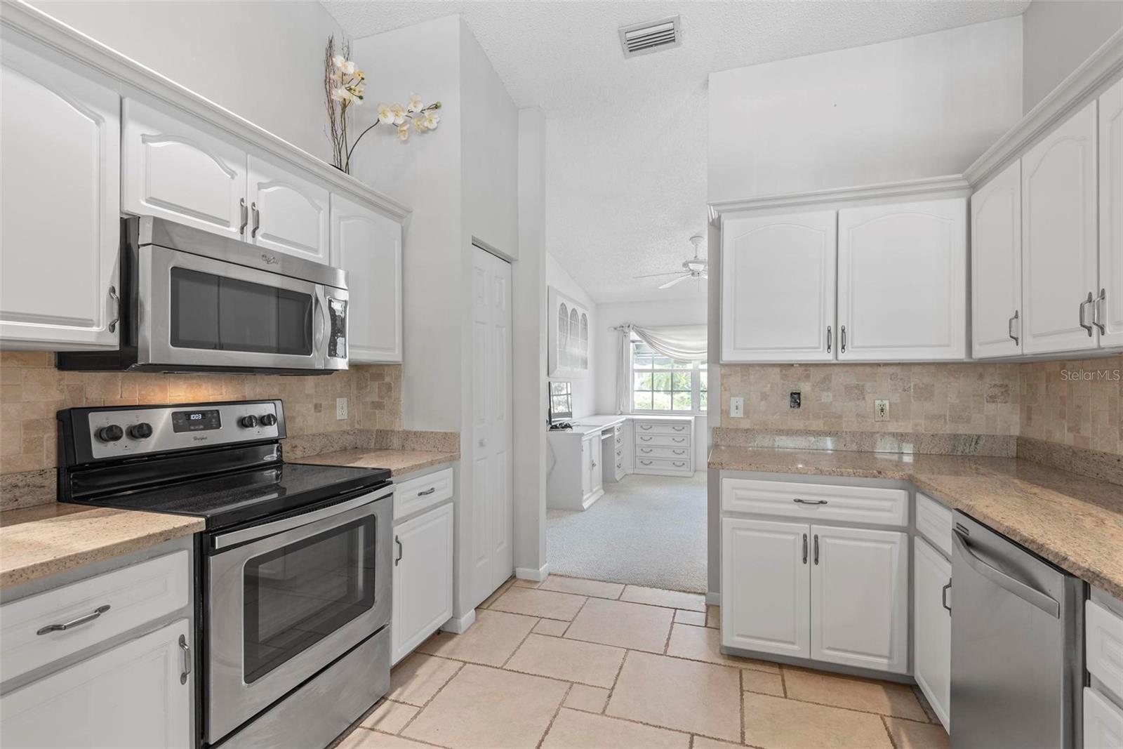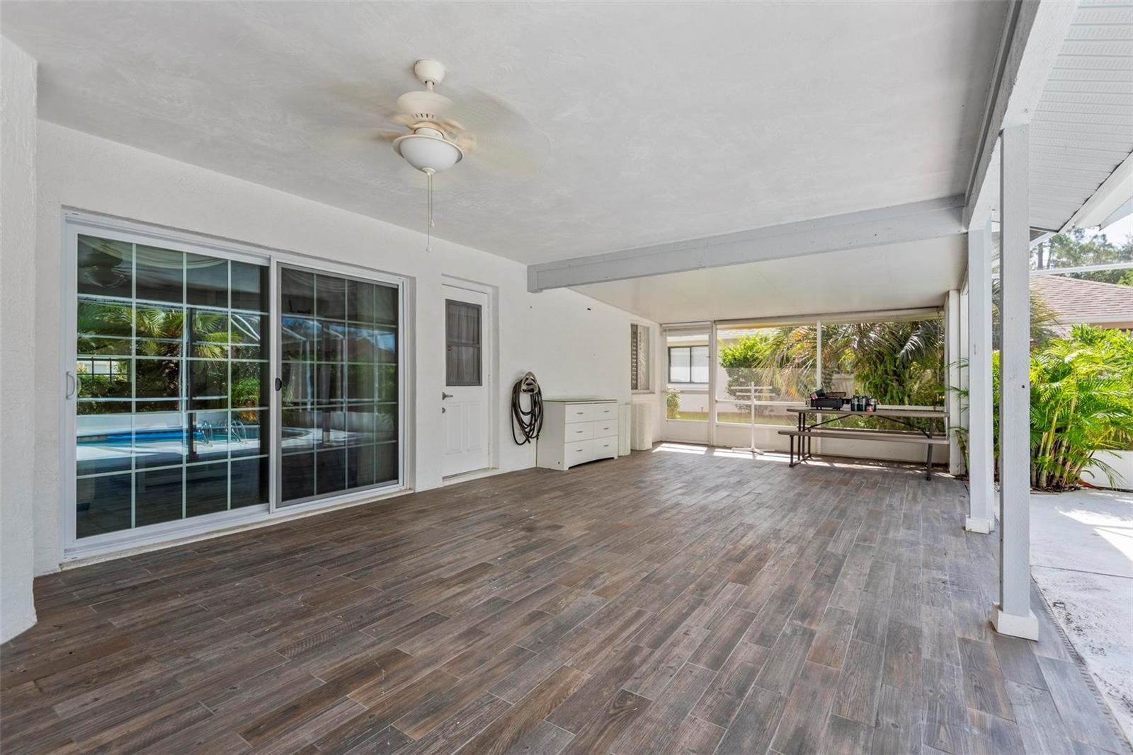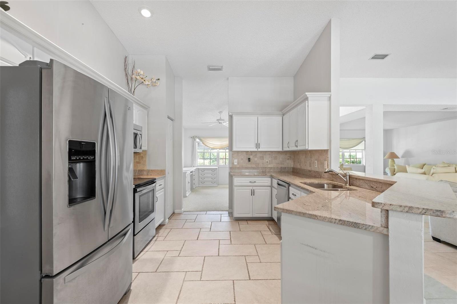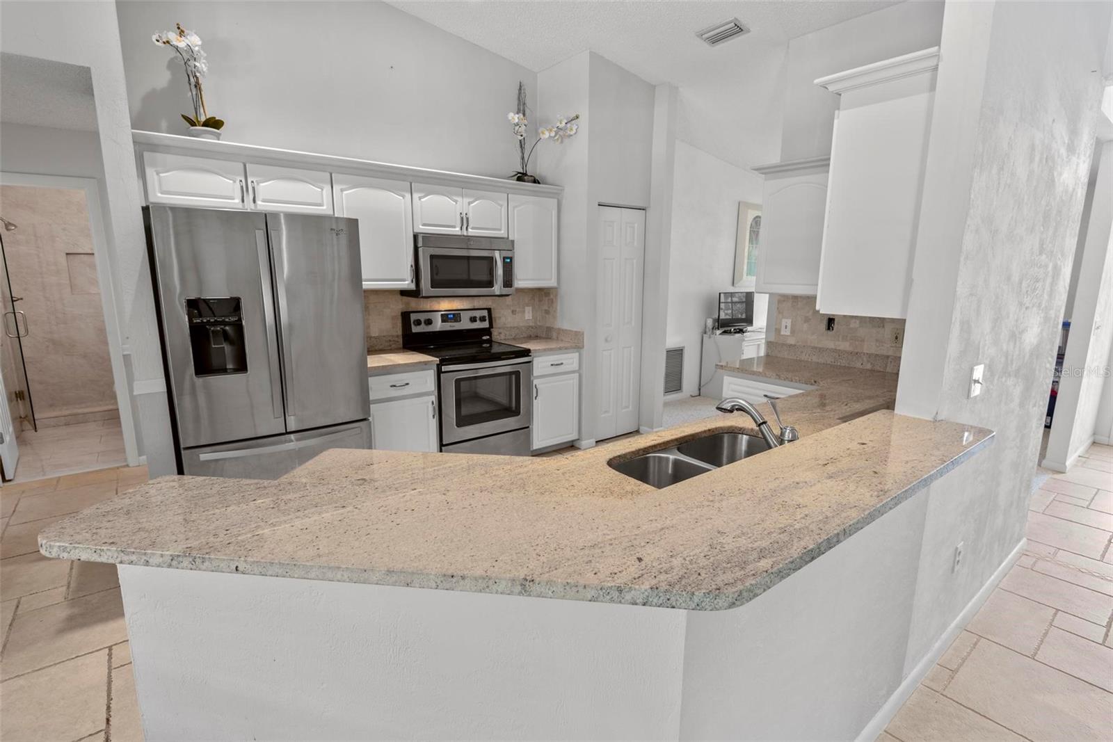 Spacious 4-Bed, 3-Bath Home with Split Layout, Pool & Huge Yard! This beautifully maintained 4-bedroom, 3-bath home is the perfect setup for multi-generational living, guests, or just having extra space to spread out. Sitting on a oversize, professionally landscaped corner lot with large covered patio, fully screened private pool and custom storage shed, this one really has it all! Inside, the smart split-floor plan offers great privacy and flexibility. One side of the home features two bedrooms and two full bathrooms, including a spacious primary suite. On the other side, you’ll find two more bedrooms and a full bath — ideal for families, guests, or even a home office setup. This third bath is also accessible from the pool area! The kitchen has been updated with modern finishes, includes a Breakfast Nook and flows into a bright family room, living room and dining room filled with natural light. Step out back and you’ll love the oversized yard, lush landscaping, and sparkling pool — great for summer BBQs, relaxing weekends, or entertaining friends. With updates like Plantation Shutters, Travertine Floors, new roof in 2023, enjoy a flexible layout, and plenty of outdoor space. This home is move-in ready and located close to schools, shopping, and everything you need. 1 Year Home Warranty provided to the Buyers at closing! Come see it for yourself — you’ll love the space and the setup!
