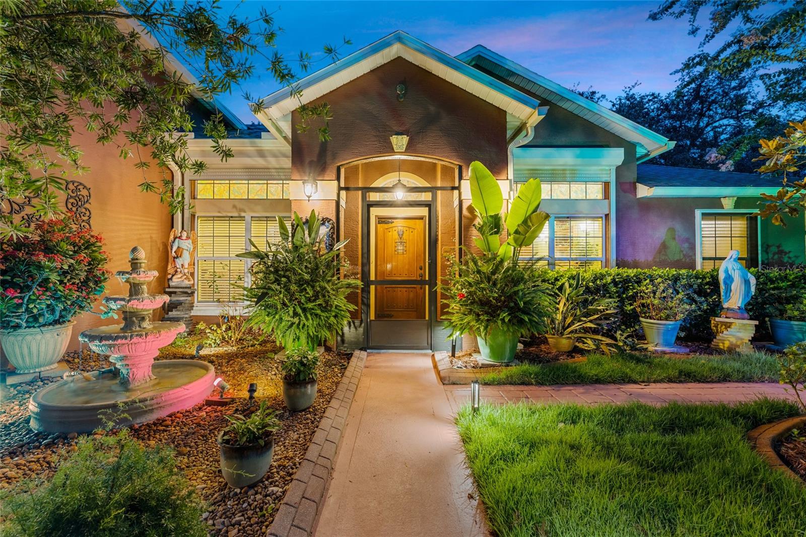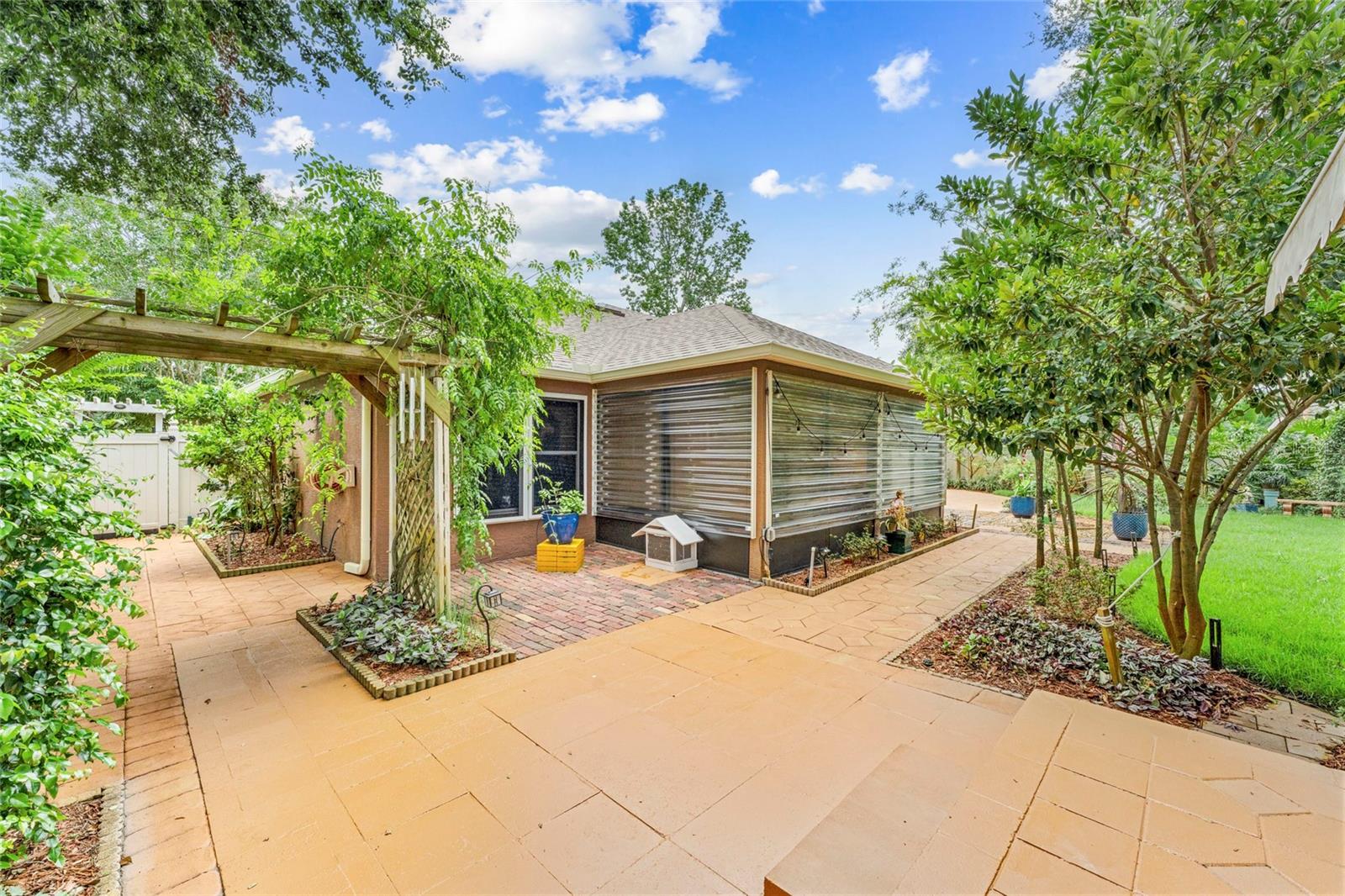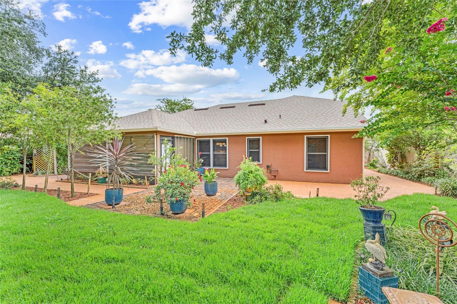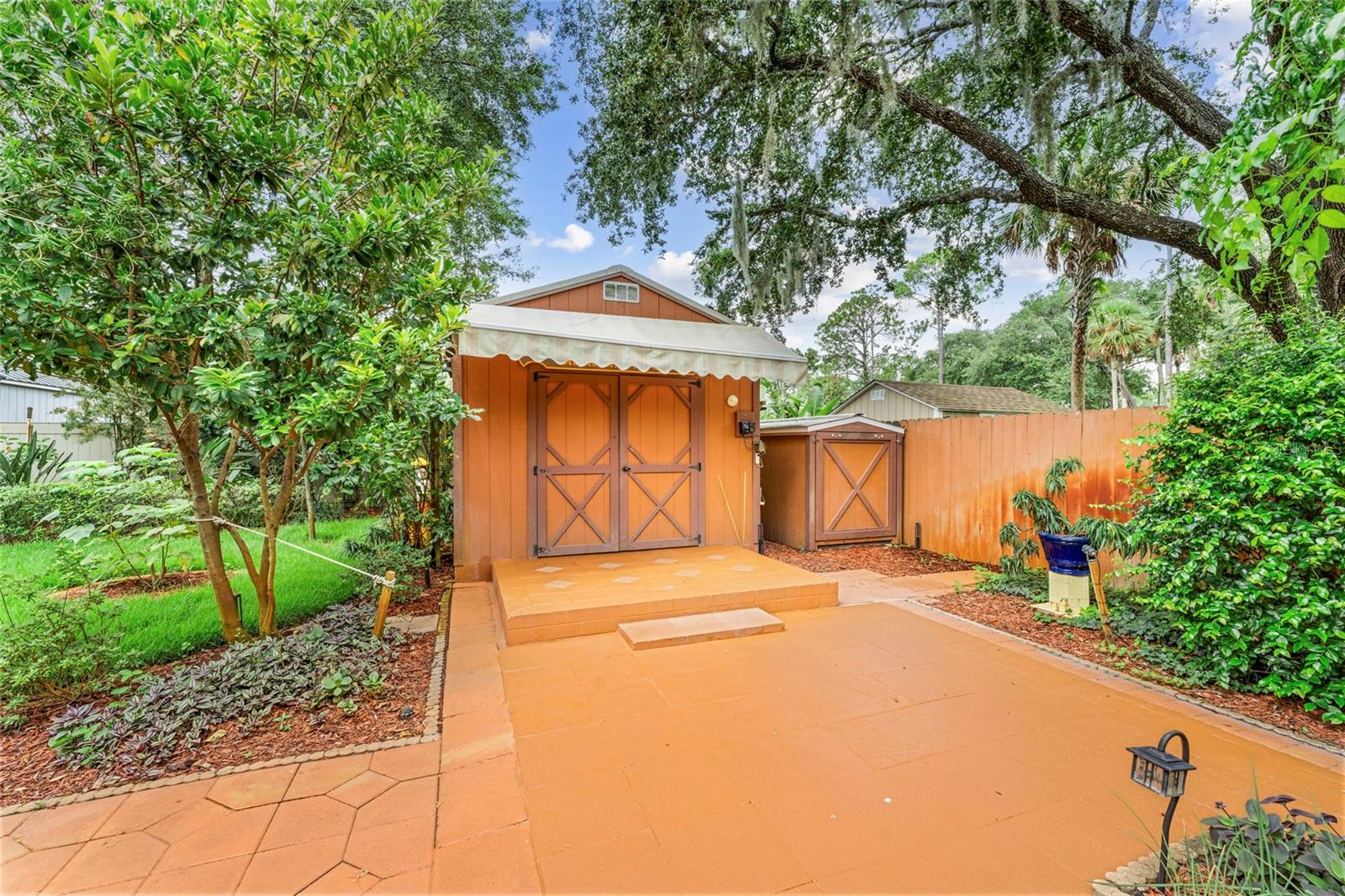 From the grand front door to the peaceful, park-like backyard, this spacious home is truly special. It features a rare upstairs 4th bedroom with its own full bath—perfect for guests or a private office. You'll love the formal living, dining, and family rooms with brand-new tile throughout, high ceilings, and big, bright windows. The split floor plan gives the master suite plenty of privacy, with vaulted ceiling, two walk-in closets, and a fully updated bathroom with new vanity, tiled shower, and bright LED lights. The kitchen has solid wood cabinets, stainless steel appliances, and a sunny breakfast nook that opens to the large family room. Step out back to relax in the screened porch, enjoy the fire pit under the pergola, and pick fruit from your own trees! Upgrades include, new roof (2025), Fence, hurricane shutters and screens (rated up to 130+ mph), impact sliding glass door, newer A/C motor (2023), cleaned and improved HVAC system (2024), new sod (2025), drip irrigation, and two large sheds for extra storage. This move-in ready Florida gem has it all—and furniture is negotiable! It's a rare opportunity, schedule your showing today!