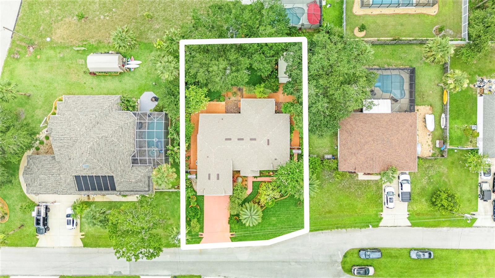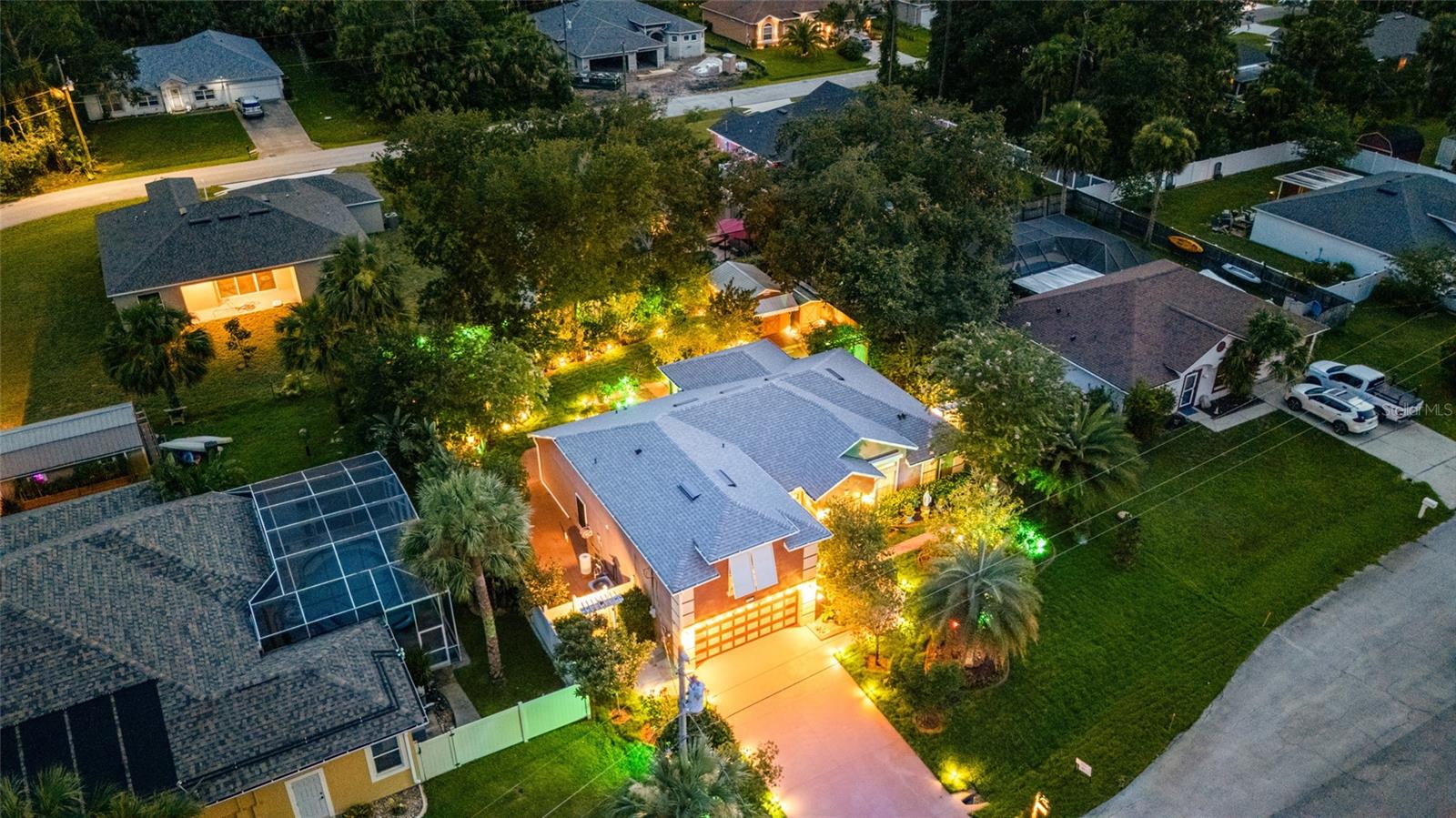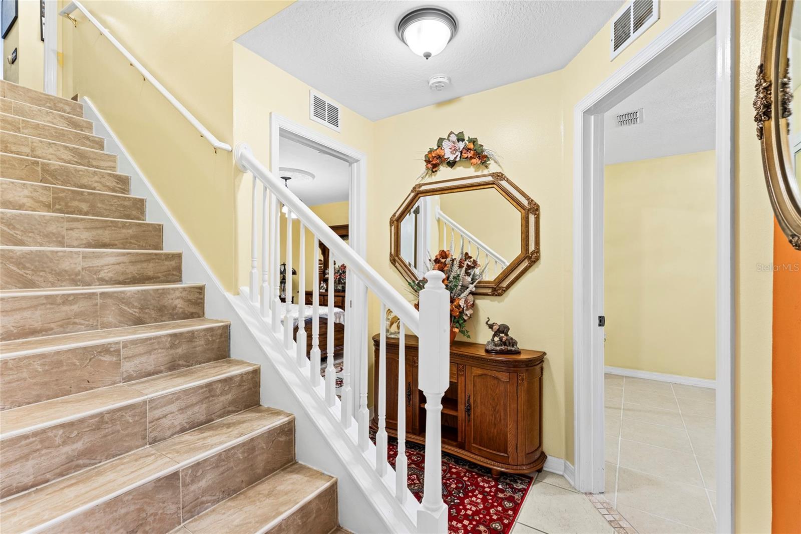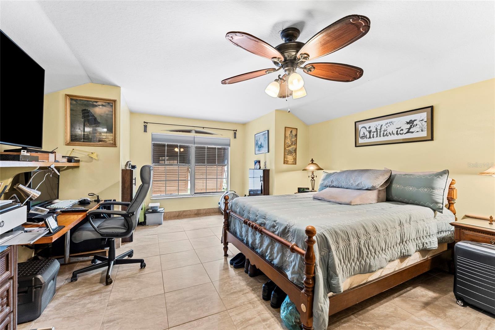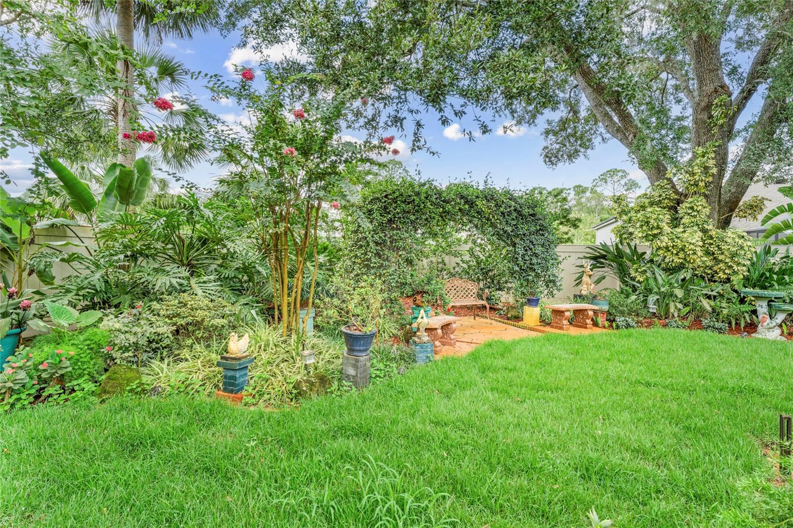 From the grand front door to the peaceful, park-like backyard, this spacious home is truly special. It features a rare upstairs 4th bedroom with its own full bath—perfect for guests or a private office. You'll love the formal living, dining, and family rooms with brand-new tile throughout, high ceilings, and big, bright windows. The split floor plan gives the master suite plenty of privacy, with vaulted ceiling, two walk-in closets, and a fully updated bathroom with new vanity, tiled shower, and bright LED lights. The kitchen has solid wood cabinets, stainless steel appliances, and a sunny breakfast nook that opens to the large family room. Step out back to relax in the screened porch, enjoy the fire pit under the pergola, and pick fruit from your own trees! Upgrades include, new roof (2025), Fence, hurricane shutters and screens (rated up to 130+ mph), impact sliding glass door, newer A/C motor (2023), cleaned and improved HVAC system (2024), new sod (2025), drip irrigation, and two large sheds for extra storage. This move-in ready Florida gem has it all—and furniture is negotiable! It's a rare opportunity, schedule your showing today!