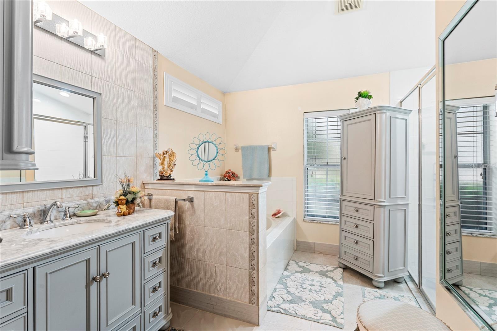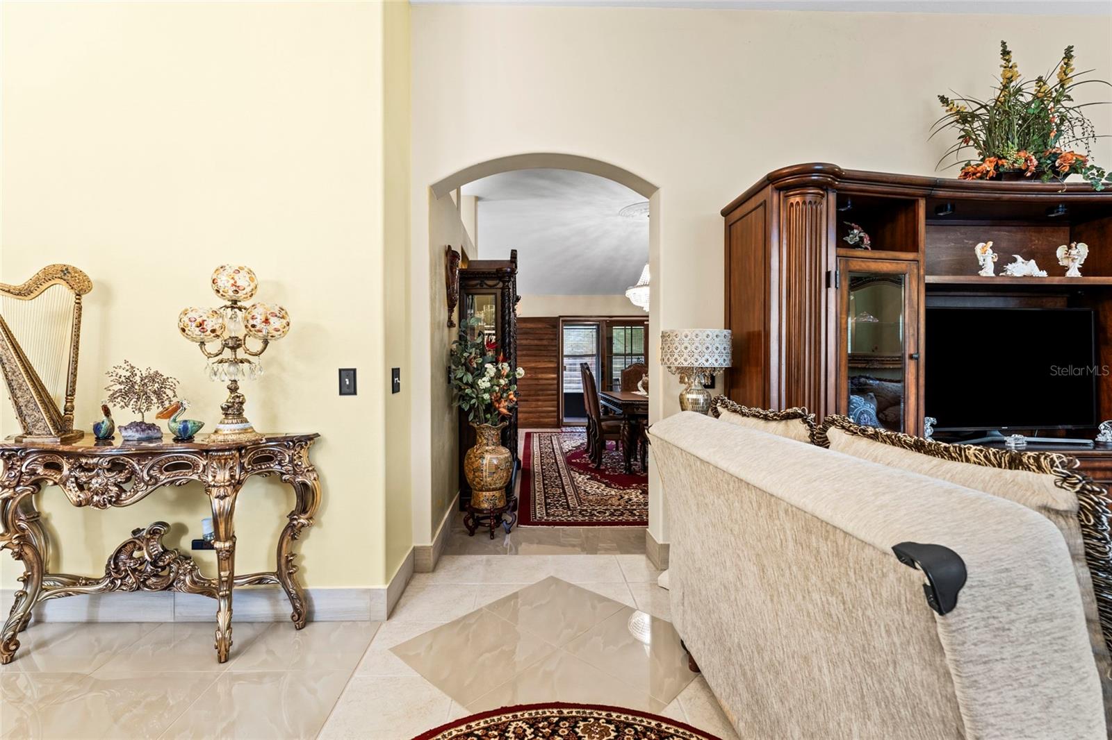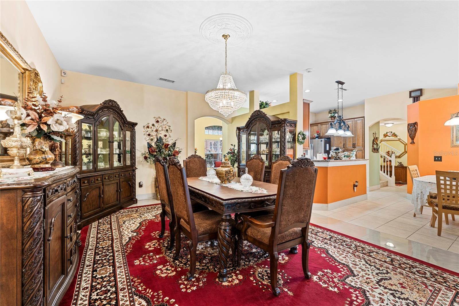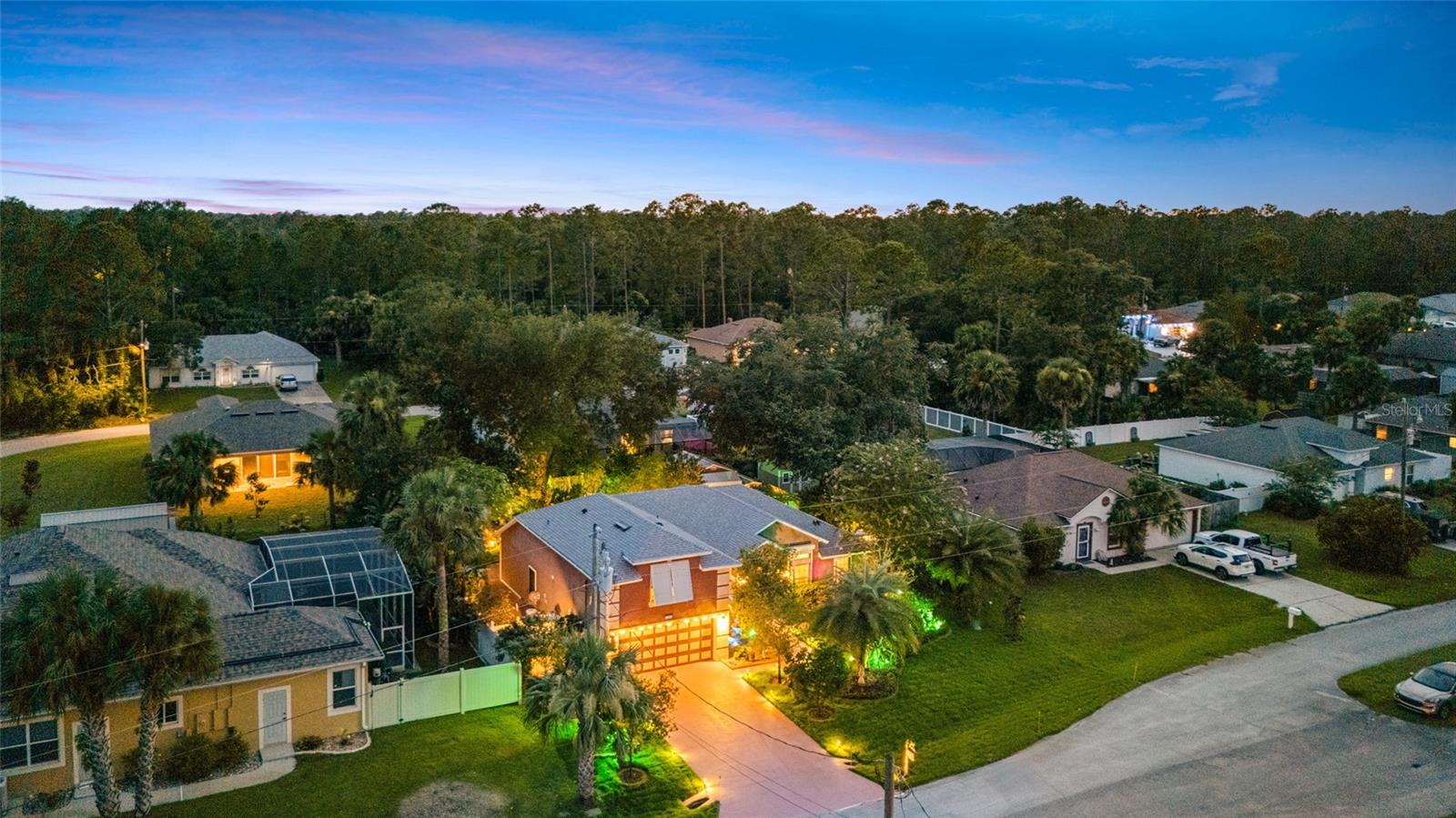 From the grand front door to the peaceful, park-like backyard, this spacious home is truly special. It features a rare upstairs 4th bedroom with its own full bath—perfect for guests or a private office. You'll love the formal living, dining, and family rooms with brand-new tile throughout, high ceilings, and big, bright windows. The split floor plan gives the master suite plenty of privacy, with vaulted ceiling, two walk-in closets, and a fully updated bathroom with new vanity, tiled shower, and bright LED lights. The kitchen has solid wood cabinets, stainless steel appliances, and a sunny breakfast nook that opens to the large family room. Step out back to relax in the screened porch, enjoy the fire pit under the pergola, and pick fruit from your own trees! Upgrades include, new roof (2025), Fence, hurricane shutters and screens (rated up to 130+ mph), impact sliding glass door, newer A/C motor (2023), cleaned and improved HVAC system (2024), new sod (2025), drip irrigation, and two large sheds for extra storage. This move-in ready Florida gem has it all—and furniture is negotiable! It's a rare opportunity, schedule your showing today!