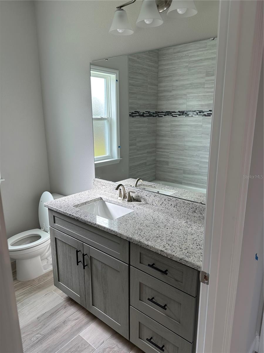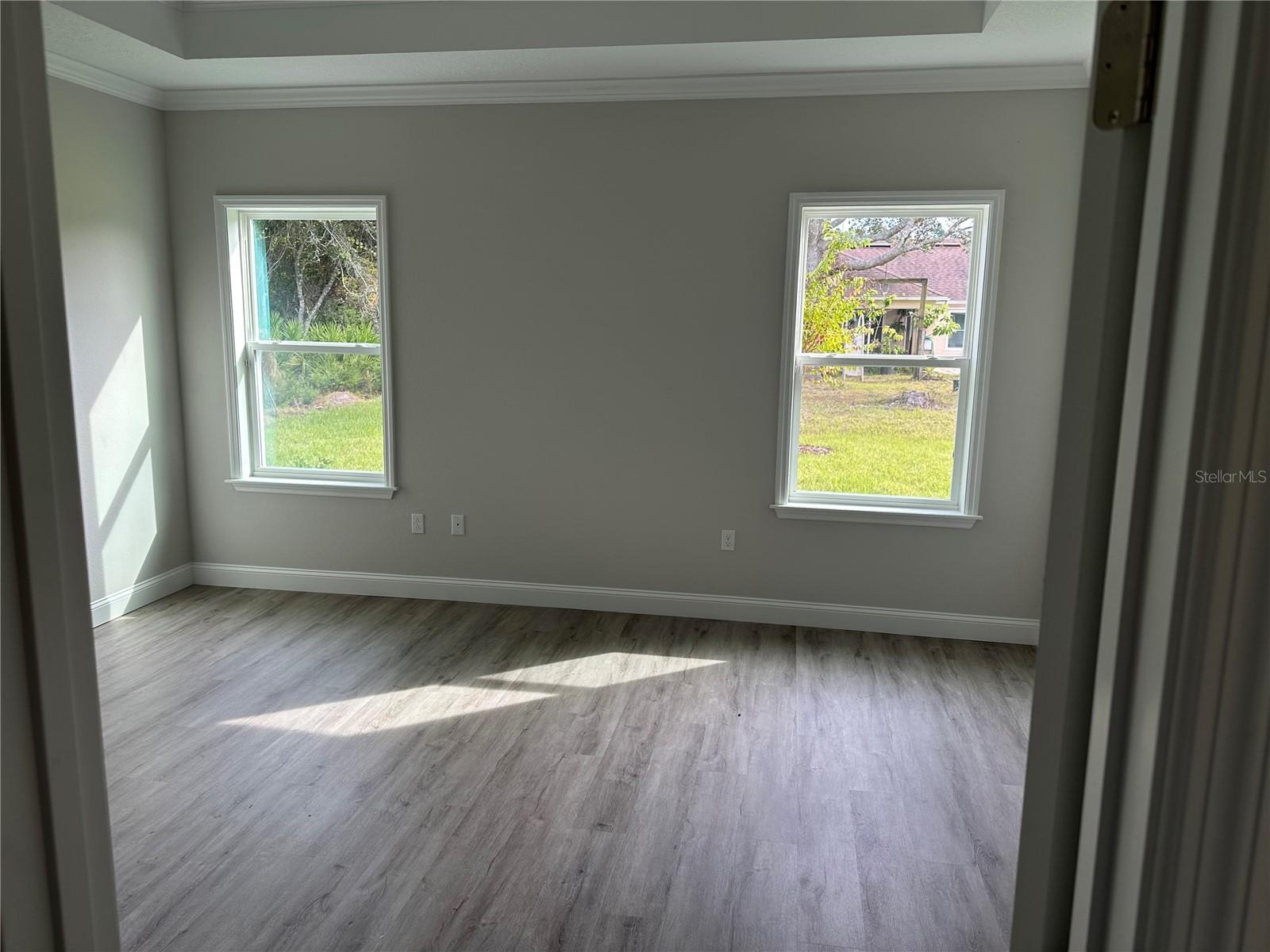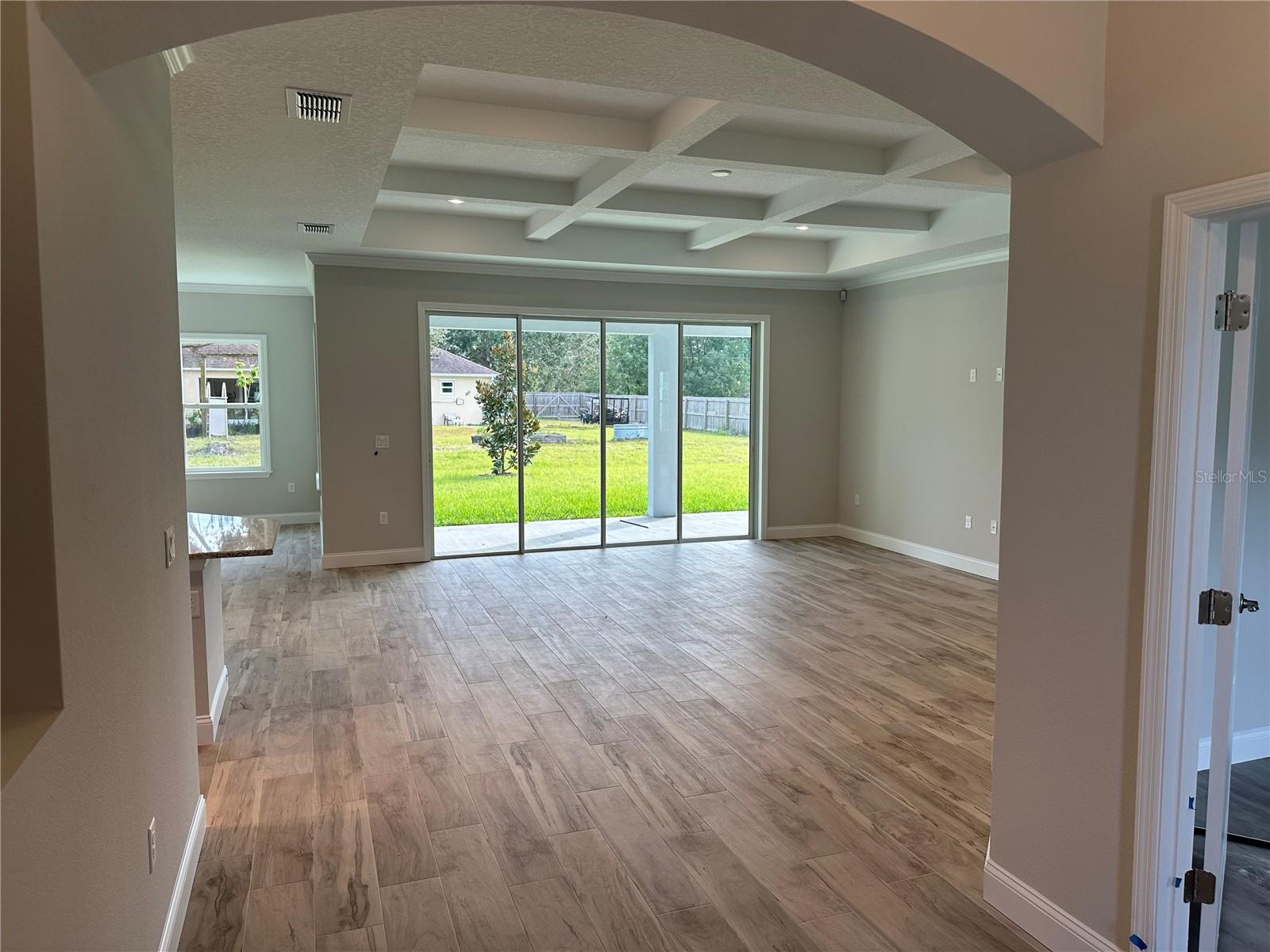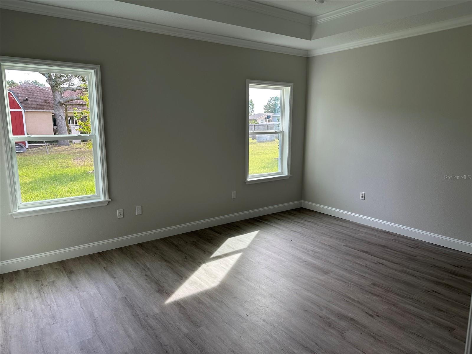 EVERLAST HOMES, INC. presents the Barrington. This 3/2/3 offers a split floor plan with porcelain tile floors in all of the main living areas and luxury vinyl in the bedrooms and office. The kitchen features granite countertops, solid wood cabinetry with soft close doors and drawers, stainless steel appliances with refrigerator and a garbage disposal. Kitchen is open to a large great room with coffered ceilings centered on the area, custom trim work which includes 5" baseboards and Crown Moldings and accordion style sliding glass doors leading to a covered lanai. Master bedroom offers a huge walk in closet, gorgeous en suite bathroom with a walk in shower, his and her vanities with all wood cabinets and granite countertops. All prices include whole house alarm system, St. Augustine sod, irrigation system, garage door openers and much much more.