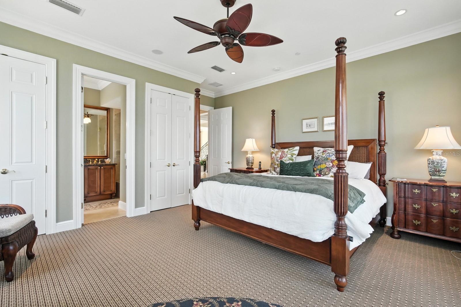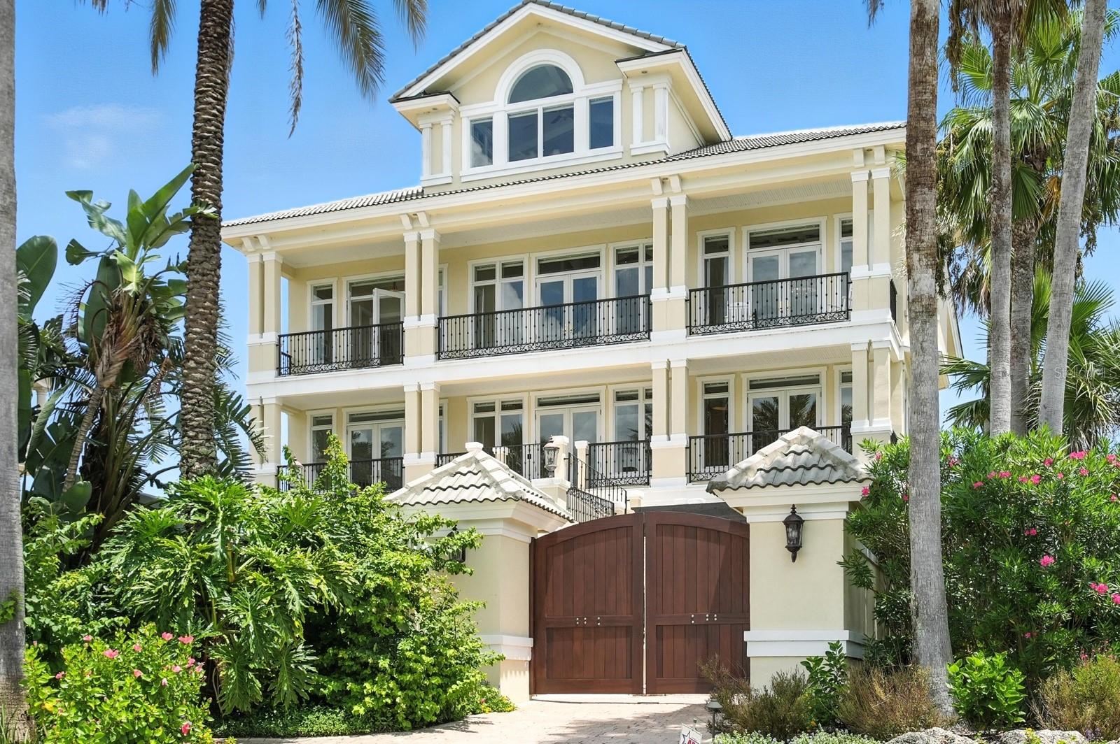 DIRECT OCEANFRONT LIVING - FULLY FURNISHED - THE PINNACLE OF OCEANFRONT LIVING This stunning seaside dream home is one of the most magnificent oceanfront estates. Located in the highly desirable Playa del Sur neighborhood within the Hammock Dunes Private Oceanfront Community, the property features expansive homesites with 100 feet of frontage along the Atlantic Ocean, showcasing a pristine coastline. As you drive down Calle del Sur, the impressive collection of homes, with the Atlantic Ocean at the rear and the sparkling Lake San Gabriel at the front, will captivate you. All rooms in the house provide glorious views of breathtaking sunrises and sunsets, thanks to large windows and sliding doors. This home is being offered fully furnished, allowing for immediate enjoyment of coastal living. Each room is exquisitely appointed with rich furnishings and decor, designed to take advantage of the beautiful ocean vistas, featuring numerous windows and doors equipped with both motorized and manual shades. Upon entering the main level, you are greeted by open views and exquisite marble flooring that continues up the elegant staircase. This floor includes a lavish sitting/studio room, a media room, an oceanfront balcony, and three en-suite bedrooms. The second level boasts a true gourmet kitchen with incredible ocean views from every angle. It is equipped with top-of-the-line GE Monogram appliances, including a refrigerator, a standalone freezer, an oven, a microwave with a warming drawer, a six-burner range, two dishwashers, a wine cooler, a pot filler, and a walk-in pantry complete with a laundry chute. The dining room offers stunning views of the lake, while the living room, filled with ocean views, features a fireplace and a bar. The oceanfront primary bedroom on this level comes with triple sinks, ample cabinets, and spacious walk-in closets. The top level includes a fireplace, an office, a living room bar, a refrigerator, a full bath, and a sitting area overlooking the lake, making it perfect for a guest suite. A special highlight is the cabana on the first level, featuring a full wall of sliding doors that open to the courtyard-style pool and spa. It is equipped with a kitchen that includes a refrigerator, dishwasher, sink, oven, and a full bath. The spacious, air-conditioned garage can comfortably accommodate up to seven cars and provides plenty of storage space. Membership to the award-winning Hammock Dunes Club is available, though not mandatory. This membership grants access to two renowned Audubon-certified 18-hole golf courses, two stunning clubhouses, casual and oceanfront dining, tennis, pickleball, bocce, oceanside croquet, a state-of-the-art fitness center, an oceanside pool and spa, a splash pad, and a wealth of activities and friendships that can last a lifetime. Conveniently located just three miles from I-95, this home offers easy access to Daytona, Orlando, Jacksonville, and Flagler Executive Airports