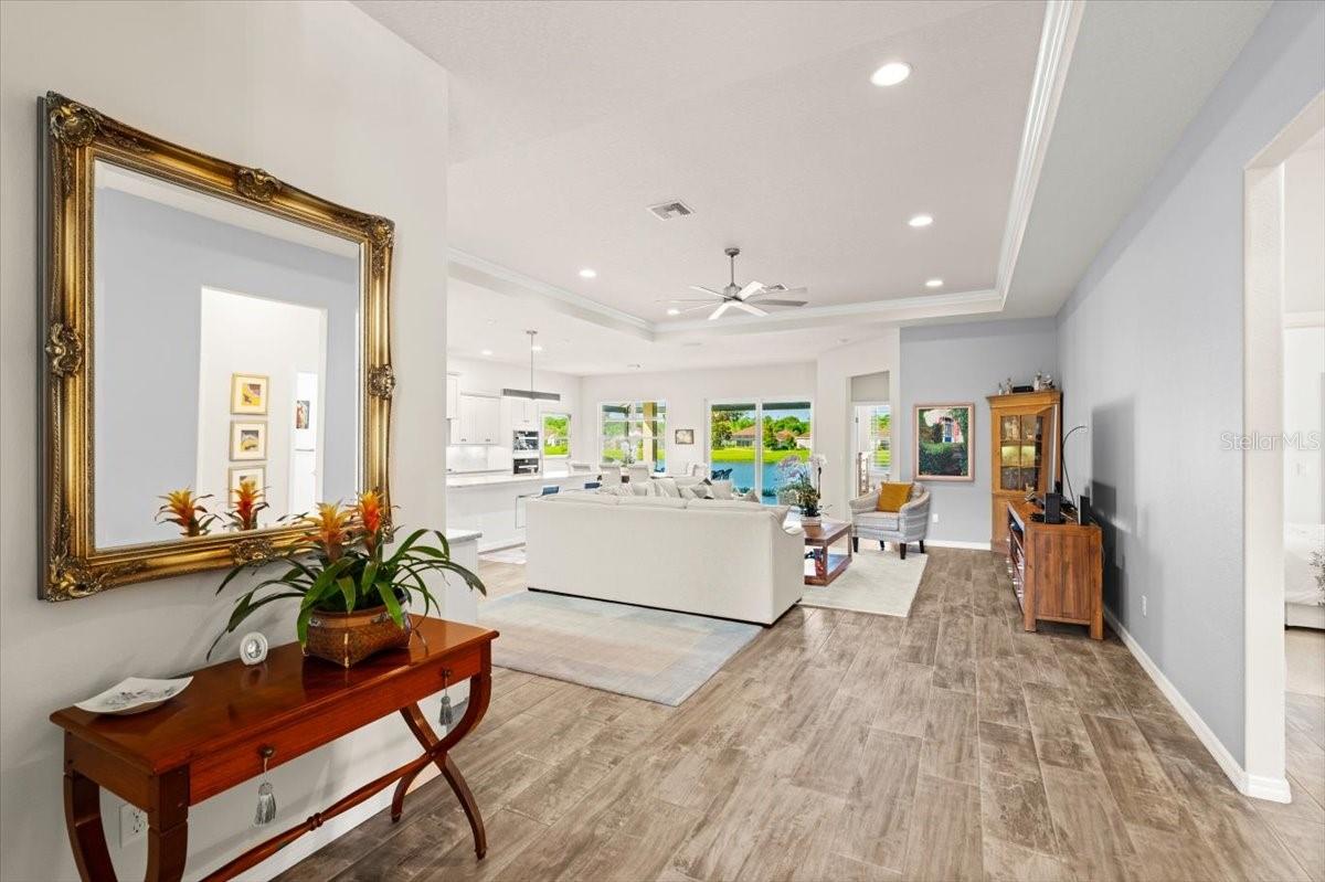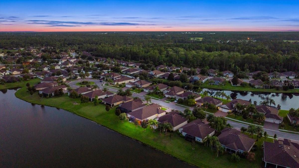 Elegant LAKEFRONT 3 bedroom, 2 full bathroom home in Hidden Lakes! This architectural standout offers an incredible opportunity to own a lakefront residence in Hidden Lakes - Palm Coast’s upscale master-planned community known for its lush preserve, fountain-topped lakes, walking trails, resort-style pool, club house, and playgrounds—all with low HOA fees. Setback behind a covered front porch and stone archways, you’ll appreciate the manicured landscaping and long paved driveway. Interior Features That Impress! Step into a home where wood-look tile flooring spans the open floor plan framed by high ceilings, crisp plantation shutters and stylish three-panel interior doors throughout. The expansive living area, centered by a tray-ceiling and a custom-designed coffee or wine bar with built-in fridge—perfect for entertaining or relaxed gatherings. A spacious den/office, complete with a storage closet and French-door entry is a bonus! The stunning gourmet kitchen showcases granite countertops, glass-front cabinetry, stone backsplash, cooktop with a side grill and overhead exhaust, and top-tier built-in double oven. A massive island with a breakfast bar and pantry enhance functionality - all overlooking the oversized screened-in back porch, fully covered and outfitted for ultimate relaxation beside the serene lake and its dancing fountains. All three bedrooms feature plush carpeting and ceiling fans for comfort. The primary suite is a statement of space and luxury: walk-in closet and a spa-like ensuite with dual granite-surface vanities, a huge walk-in tile shower and a separate soaking tub—delivering both elegance and ease daily. This property also comes equipped with Exterior Automatic Hurricane Shutters!! ($45,000 value!) Hidden Lakes offers refined community living with two lakes with fountain views, scenic nature trails, a resort pool, clubhouse and playgrounds—all close to Palm Coast’s Town Center, upscale shopping, I-95 access and pristine Flagler Beaches. This is a home you don't want to pass by - Schedule your exclusive showing today!