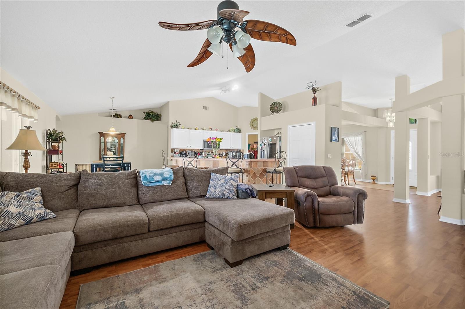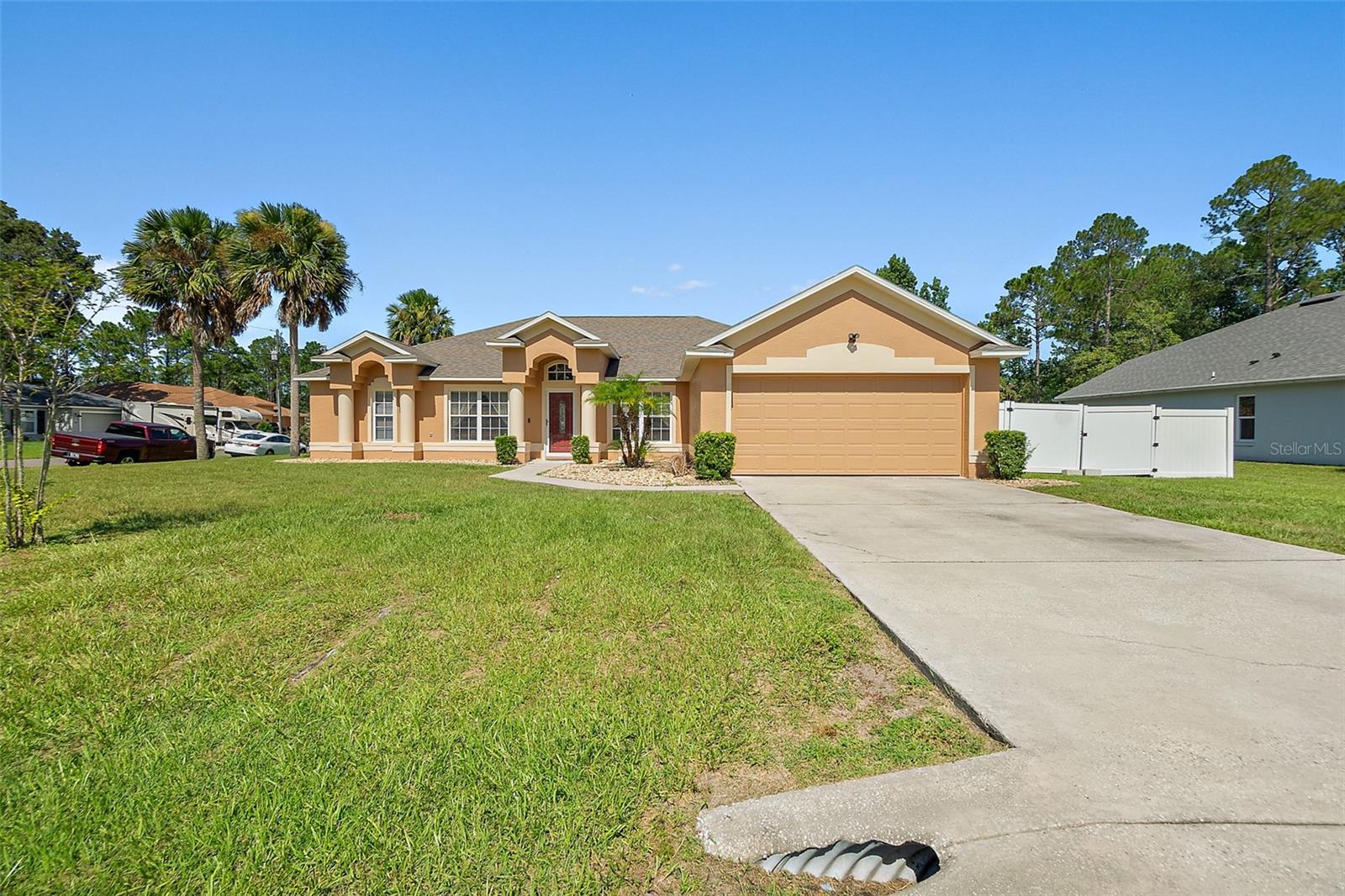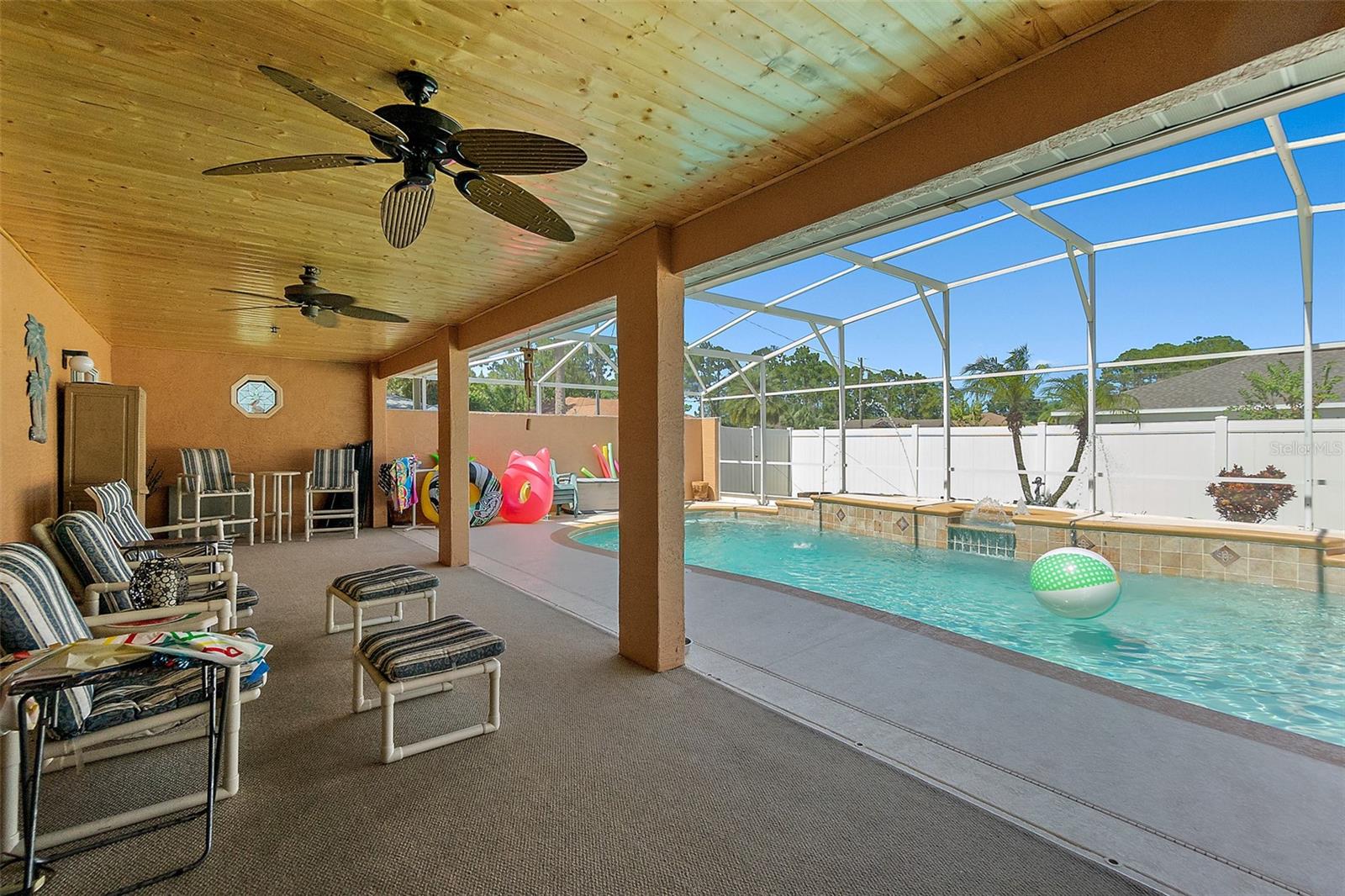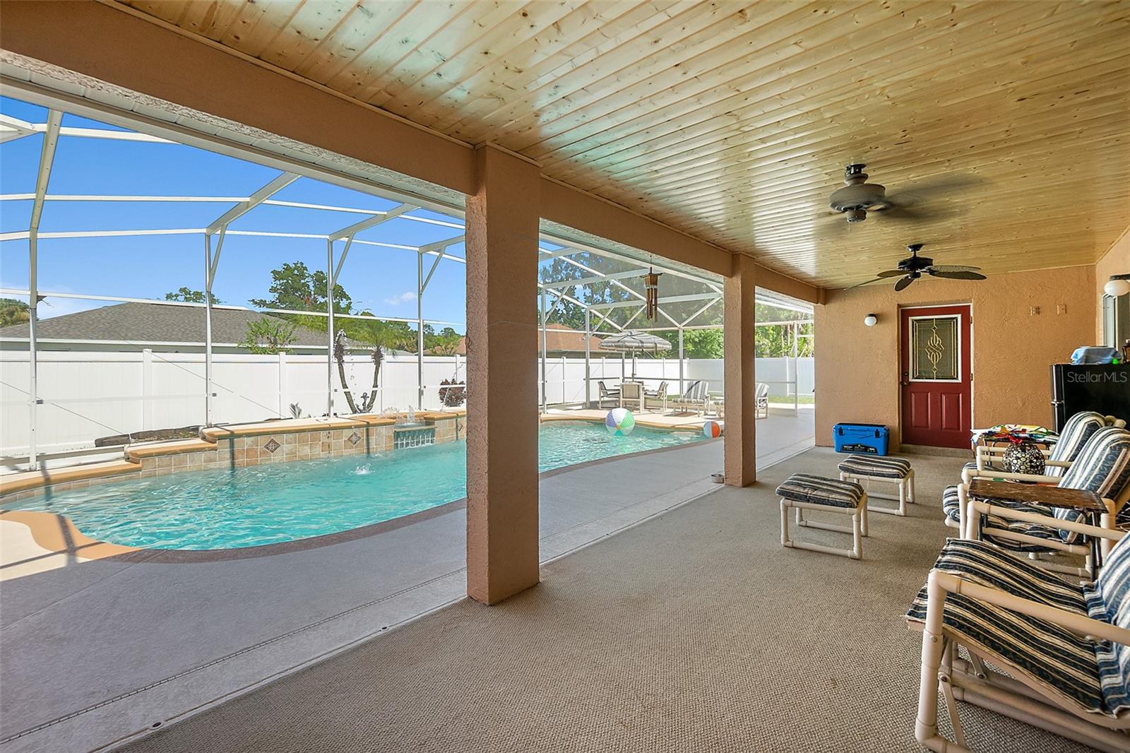Welcome to this beautifully updated 2,200 square-foot home situated on a desirable CORNER LOT. This property offers the perfect blend of comfort, style, and outdoor living. Step Inside, you’ll find a bright and open floor plan with generous living spaces. Features laminate and tile floors in the main areas, carpet in the bedrooms, New fixtures, New thermostat, A/C 2018, Roof 2021 and plenty of natural light throughout. Outside features your own private oasis featuring a LARGE screened-in pool enclosure—ideal for entertaining, relaxing, or enjoying year-round Florida living. The yard is fully fenced in with PVC fencing. The saltwater pool has a BRAND NEW salt system. The oversized yard offers endless possibilities, from gardening to play areas or even future expansion. The exterior also offers a large shed, a privacy wall pool side, paver patio outside the screen room, a child gate for the pool and patio access from the primary bedroom, living room and interior bathroom. Extras's include: a walk-in shower. Exterior and interior has been FRESHLY PAINTED. Termite bond that is transferable to the new owners. Bathroom access to the pool area. With its prime location, updated features, and impressive outdoor space, this home is a rare find. Schedule your showing today!