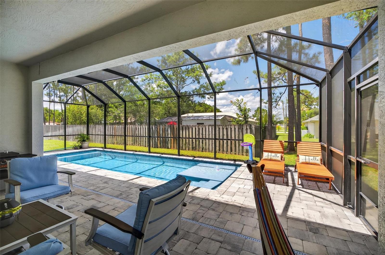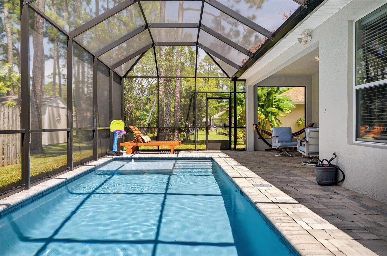 Come take a tour of this beautiful meticulously kept Heated Pool Home located in the desirable Indian Trails Development of Palm Coast. This move in ready home features Ceramic Tile throughout, High Ceilings, three Bedrooms, three Full Bathrooms, an extra bonus room which is being used as an office or could be used as a fourth Bedroom if you would like. All appliances are newer, Granite Countertops, the Pool is just under a year old, ADT Alarm System, Oversized 2 Car Garage, the Roof is just under two years old, Full AC System just replaced on10/28/25, which is a $10,000. upgrade and the home interior was freshly Painted and exterior was also painted from its original color. Close to area beaches such as Matanzas and Flagler, Supermarkets, Pharmacies, Department Stores such as Target, Walmart, Hobby Lobby Bealls and much more. Approximately 1.5 hours to Orlando Airport and Disney World and an hour fifteen minutes to Jacksonville Airport. This is a must see Home!!!!!