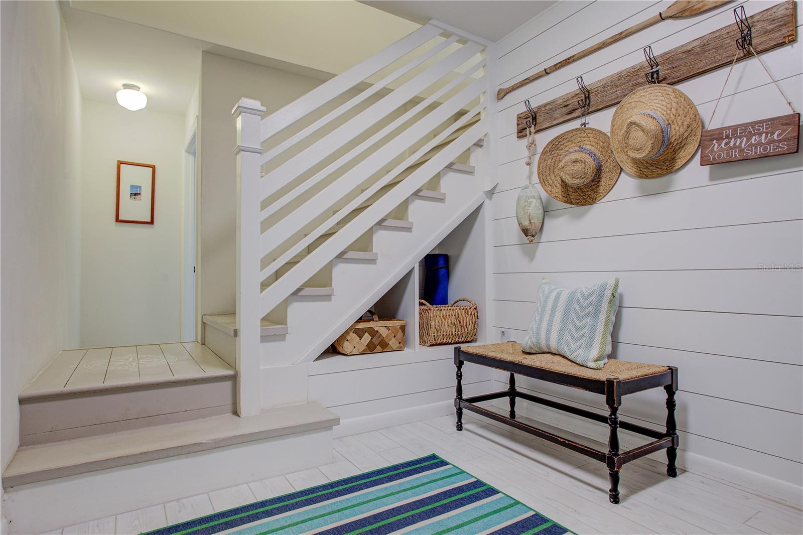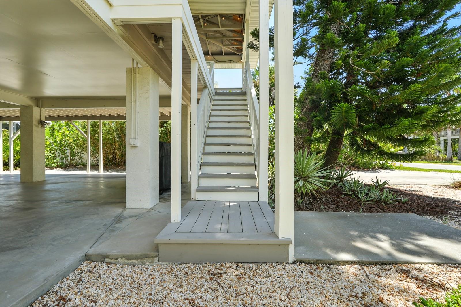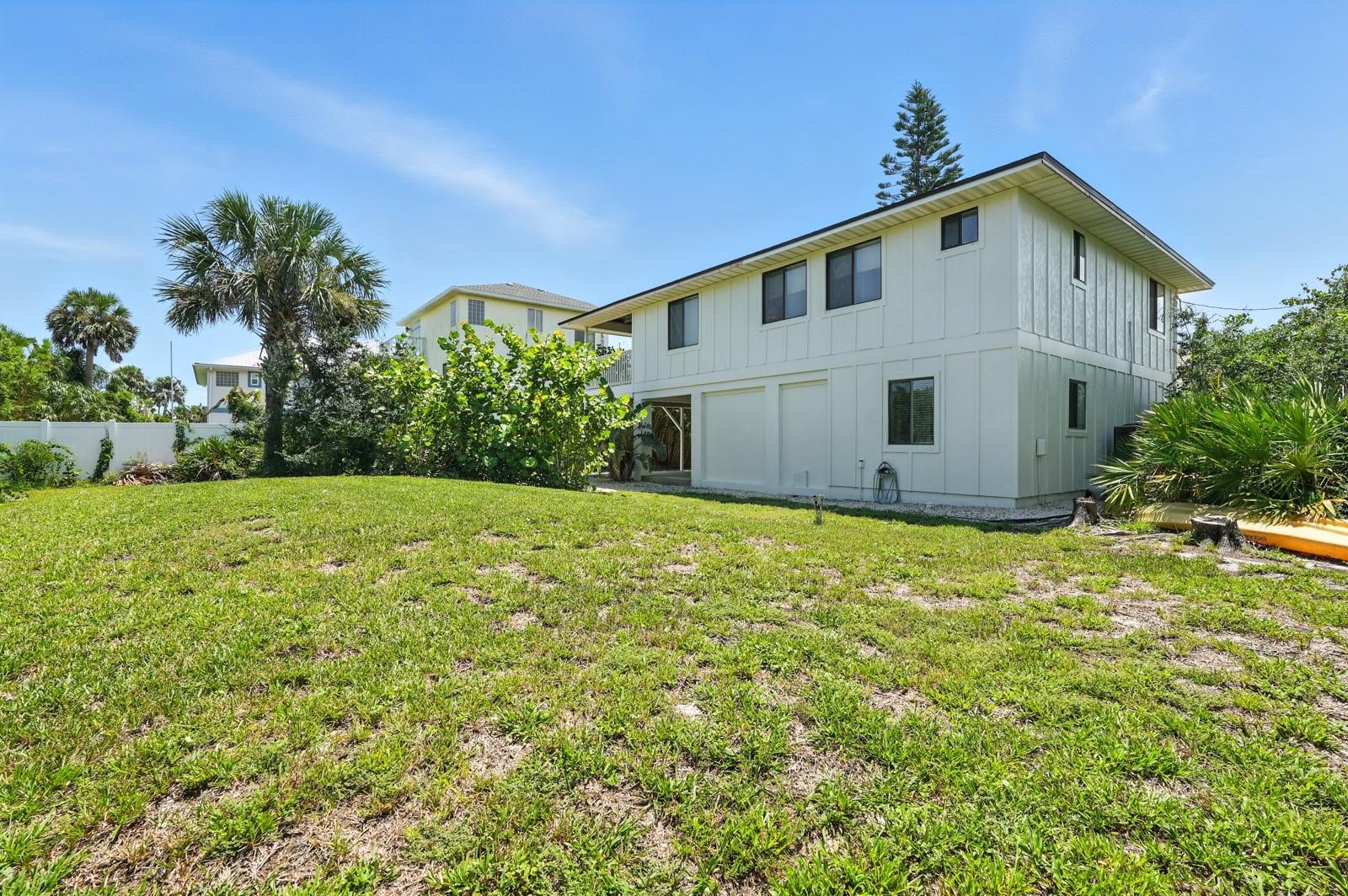 SeaGrape Cottage is an updated Key West–style coastal 2 story retreat located just 700 feet from a private community beach walkover. This 3-bedroom, 2-bath home offers the ideal combination of vacation lifestyle and investment potential. With Airbnb Superhost status and consistent rental income, the property is proven as both a family beach retreat or turnkey rental opportunity! No HOA – Short Term Rentals Allowed. The open-concept floor plan connects a remodeled kitchen with quartz hard surface counters, coastal open shelving, new cabinetry and updated stainless steel appliances. The dining area and great room connect to an expansive outdoor covered deck with 2 fans and magical mood lighting. The home is designed for entertaining. The home is bright with oversized windows and skylight. The high vaulted ceiling is finished in shiplap giving a spacious coastal vibe. Designer finishes, custom built-ins, and Pottery Barn–inspired details add timeless style. Both the upper and lower covered decks create expansive outdoor living space perfect for relaxation and gatherings. Closets are customized with built in shelving and drawers. Recent improvements include a new roof (2025), new HVAC system (2022), new siding, and reinforced decks. The kitchen features stainless steel appliances, open shelving, and solid-surface countertops. A 2025 wind mitigation study helps keep insurance costs low. Seller notes the property remains high and dry during rain events. Home automation includes keypad locks and Nest smart thermostat. The exterior offers low-maintenance landscaping, two secured storage areas for beach gear, and a spacious backyard with mature trees and firepit area. Private outdoor shower to rinse the sand. Carport provides room for 2 vehicles. With no HOA restrictions, you can maximize rental potential or simply enjoy the beach lifestyle yourself. Located in the Hammock area of Palm Coast just minutes from Hammock Beach Resort, SeaGrape Cottage is steps to the beach and close to the Intracoastal Waterway, golf, dining, shopping, and local parks. This property delivers the perfect combination of location, lifestyle, and income potential. Schedule your private showing today.