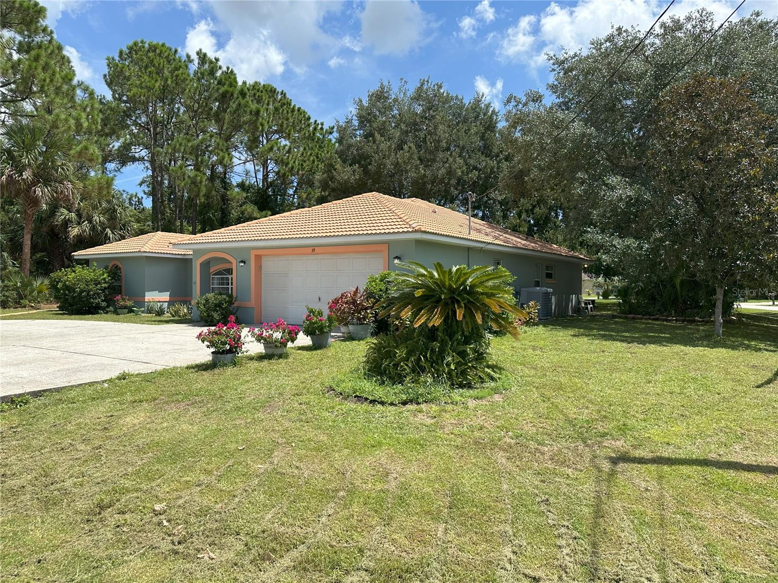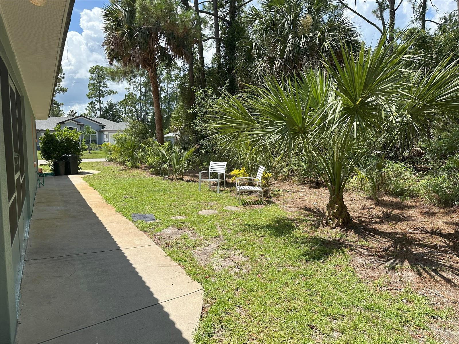 This is a spacious 3-Bedroom/2-Bath TILED ROOF HOME located on a quiet street in the highly-favored Belle Terre subdivision of Palm Coast. It's close to US 100, I-95, and US 1, and not far from some of the hottest retail properties in Flagler County, including Shopping, Dining and Entertainment, as well as Doctors, Hospitals, Recreation, Parks, and our beautiful Florida beaches! Set on an OVERSIZED 0.32-ACRE CORNER LOT on Princess Ruth Lane, this LIGHT-FILLED HOME pairs everyday comfort with Smart, Practical Upgrades. Fresh INTERIOR and EXTERIOR PAINT and NEW CARPET set a crisp, move-in-ready tone the moment you walk in. The main living areas open under VAULTED CEILINGS with PLANT SHELVES, BULLNOSE CORNERS (the rounded edges provide a softer curved profile), and ARCHED WINDOWS that add architectural interest and lots of natural light. At the back of the home, gathering spaces connect easily to a Large TILED and SCREENED LANAI--a true Indoor/Outdoor Living Area perfect for coffee at sunrise or evening dinners al fresco. The split Primary Suite features a TRAY CEILING, THREE CLOSETS--including a WALK-IN CLOSET and a LINEN CLOSET--and a Generously-Sized EN SUITE BATHROOM with an ARCHED WINDOW and WALK-IN SHOWER with TILED WALLS and TILED CEILING. SLIDING GLASS DOORS from the Suite and another from the FAMILY ROOM lead out to the LANAI and its soothing views of Dappled Sunlight streaming through the MATURE TREES and PLANTS, all part of the natural beauty of the LARGE BACKYARD. Everyday function shines with an Inside LAUNDRY ROOM with POCKET DOOR, and in the Garage you’ll appreciate the UTILITY SINK, NEWLY-EPOXIED FLOOR, and an ELECTRICAL PANEL set up for a WHOLE-HOUSE GENERATOR (generator not included). And let's not forget the CIRCULAR DRIVEWAY that provides additional parking and an easy in-and-out, as well as the CONCRETE WALKWAY that wraps around the North-Side of the House. There's an Irrigation Well and Sprinkler System present that's currently inoperable; they convey "As-Is." Recent/Mechanical notes (from Seller): The 2014 HVAC has a new motor with a warranty remaining, and the Water Heater was replaced in April 2021. With its large lot size, comfortable layout, and practical upgrades, this property is an excellent value and a terrific Palm Coast find.