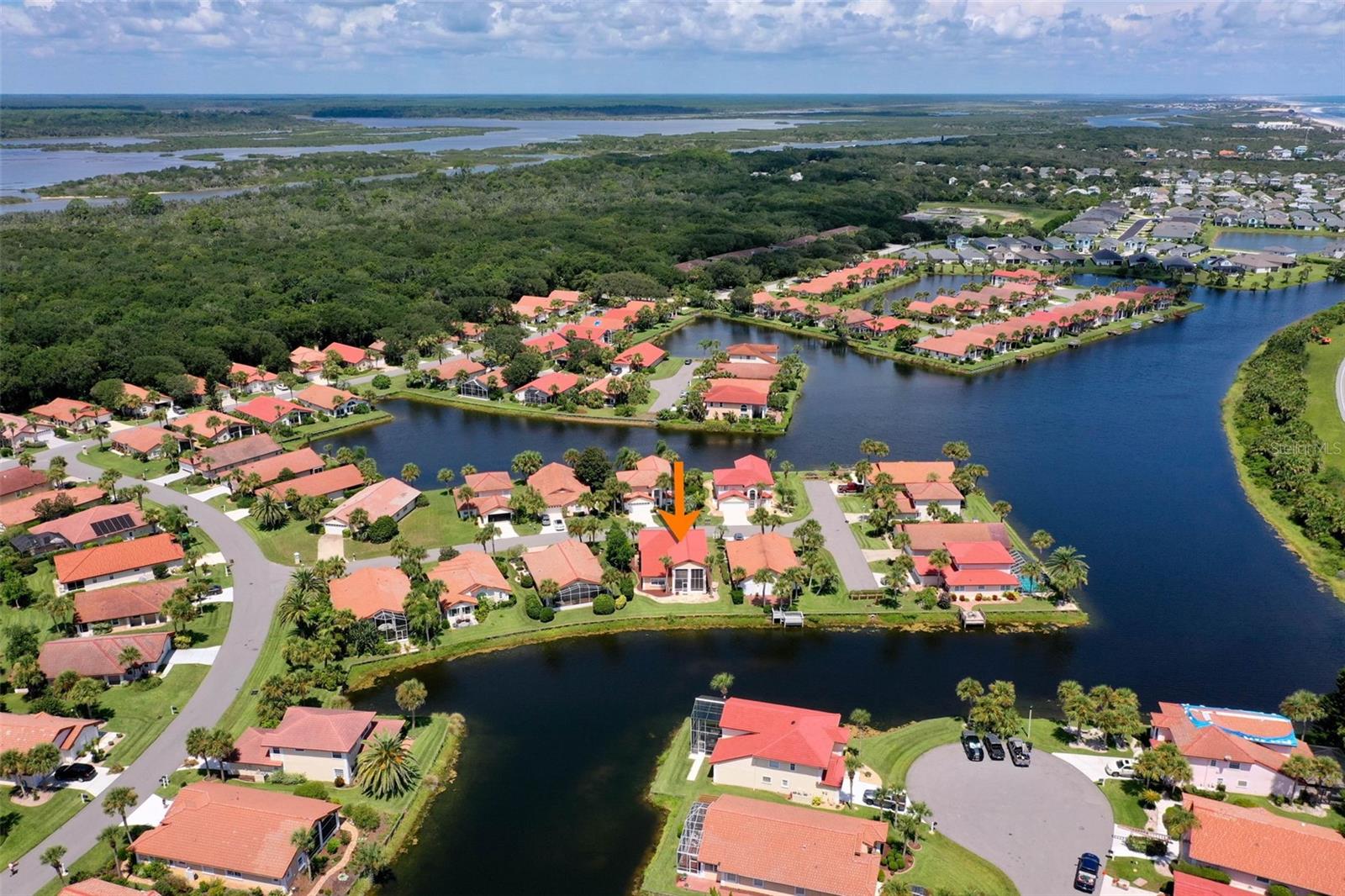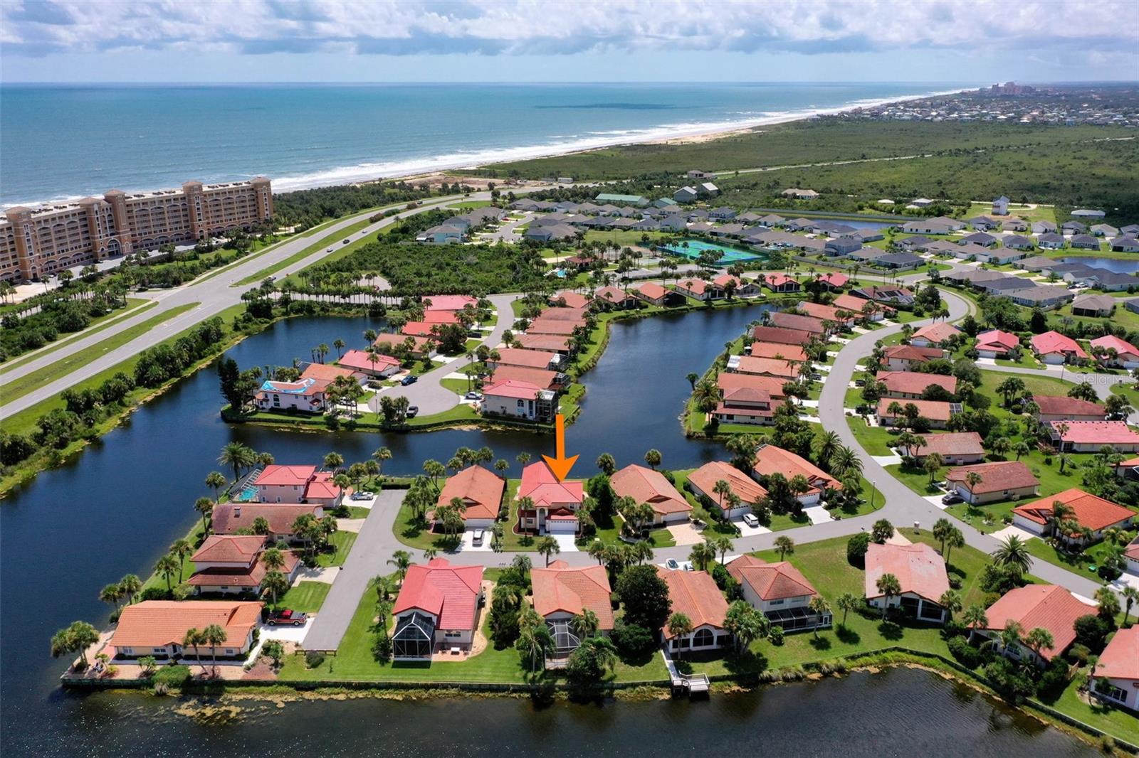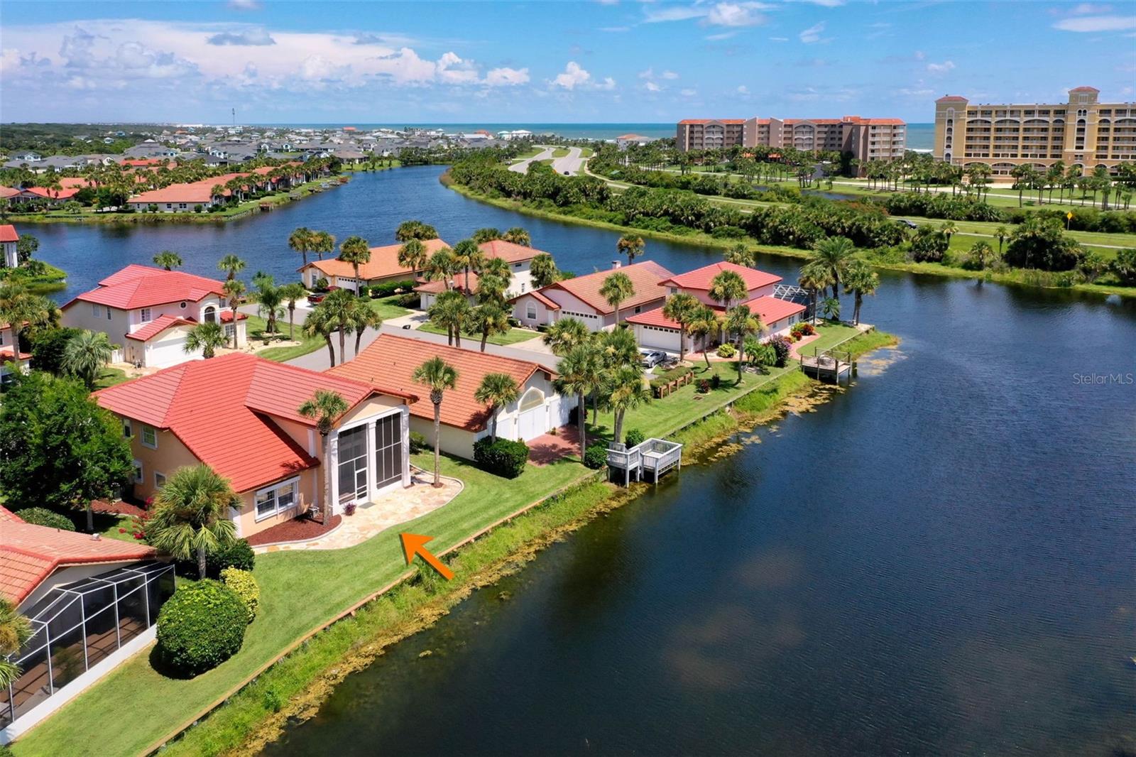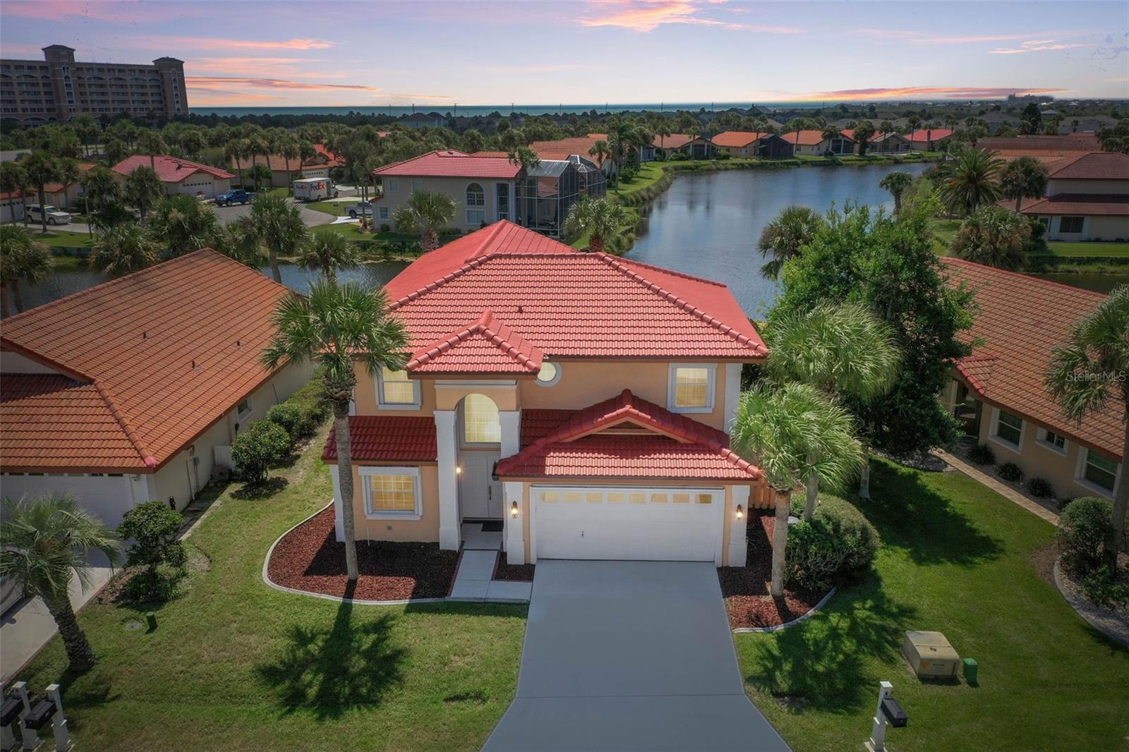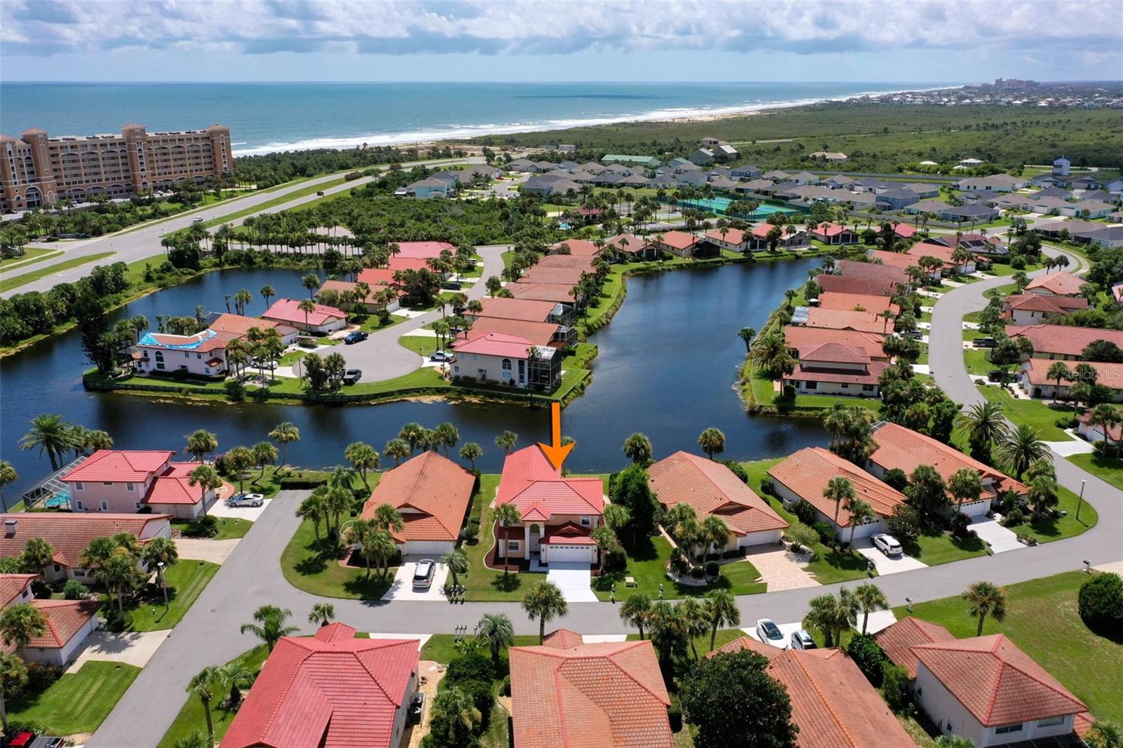 One or more photo(s) has been virtually staged. Waterfront Luxury with Private Beach Access – PRICED TO SELL!! This is the one you've been waiting for. A BRAND-NEW TILED ROOF with a 15-YEAR TRANSFERABLE WARRANTY sets the stage for this meticulously maintained 2-story lakefront home on a sought-after private cul-de-sac with underground electricity in the guard-gated community of Lakeside by the Sea. Easy-care tile flooring throughout ensures low maintenance living with timeless style. The chef’s kitchen features granite countertops, designer backsplash, custom cabinetry, and energy-efficient stainless steel appliances, including a 2024 range, dishwasher, and brand new 2025 microwave. A spacious walk-in laundry room includes a 2024 LG heavy-duty SS washer and dryer. The home is also equipped with a 2022 water heater and two well-maintained AC systems installed in 2017. A versatile flex room ideal for a den, office, or entertainment space The primary suite is located on the ground level and offers panoramic lake views, dual walk-in closets, and a private bathroom tiled floor-to-ceiling with a walk-in shower. The great room/dining area impresses with: Soaring 20' ceilings Arched windows Walls of glass that flood the space with natural light Elegant plantation shutters and electronic hurricane shutters throughout Upstairs, two spacious bedrooms and a porcelain-tiled bathroom provide comfort and privacy for guests or family. Step outside to a screened-in patio with designer stone, perfect for entertaining or relaxing. The attached 2-car garage offers ample parking and storage. Resort-Style Amenities and Private Beach Access Make Every Day Feel Like Vacation. Two heated pools (oceanfront and west side) Sport Center with 8 brand new pickleball courts, 2 tennis courts, table tennis, volleyball, basketball, and bocce ball Intracoastal front gazebo, boat day dock, fishing pier, kayak launch, and clubhouse with full kitchen and bathrooms Miles of scenic walking and biking trails This home offers the best of oceanfront and intracoastal living in a resort-style community designed for those who value comfort, connection, and convenience. Don’t miss this rare opportunity. Schedule a Showing today—This home is now empty and EASY TO VIEW - See new photosbefore someone else wakes up to your dream view.