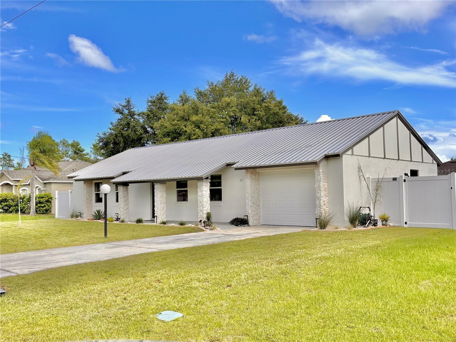 One or more photo(s) has been virtually staged. LOCATION, LOCATION, LOCATION –NO HOA or CDD Fees! Step into this newly renovated, thoughtfully designed block-construction home in the sought after Palm Harbor “F” section – and feel like you’ve just arrived on vacation. From the moment you enter, the open, airy layout and high-end finishes invite you to relax and unwind. Ideally located less than 3 miles from two I-95 exits, you're just 30 miles from Daytona Beach, 28 miles from St. Augustine, and only 5.4 miles from the Atlantic Ocean. Everyday convenience is at your fingertips, with Publix, Home Depot, Lowe’s, Starbucks, Dunkin' Donuts, Planet Fitness, banks, restaurants, and retail options all within less than a 3 mile radius. Nature lovers and outdoor enthusiasts will appreciate over 130 miles of walking and biking trails, multiple golf courses, parks, and beautiful beaches. Zoned for top-rated schools (Old Kings Elementary, Indian Trails Middle School, and Matanzas High School), and with a school bus stop just steps away, this location truly checks all the boxes. Inside, premium porcelain tile flows throughout the spacious floor plan. The heart of the home—the newly updated kitchen—features brand-new LG appliances, soft-close Kraftmaid cabinets, exquisite Caesarstone quartz countertops, a marble backsplash, and a functional workstation sink. The kitchen is illuminated with indirect lighting for ambiance, task lighting to support your culinary adventures, and a soft night light—all on dimmers to set the perfect mood any time of day. Unlacquered brass hardware adds a designer touch to this elevated space. Step outside to your expansive, fully fenced 4,000+ sq ft backyard—ideal for entertaining or peaceful evenings at home. The upgrades throughout this home speak to quality and comfort: Custom California Closet in the primary suite, Updated bathrooms with backlit, anti-fog mirrors, 2018 metal roof and Carrier HVAC for efficiency, 2023 garage door and 2025 opener, Newly upgraded 55-gallon WiFi-enabled water heater, 2024 privacy vinyl fencing, new sod, and fresh landscaping, 2024 upgraded attic insulation for comfort and energy savings, Modern new front door and mailbox for strong curb appeal and more. This is a rare opportunity to own a home that blends luxury, location, and low-maintenance living—perfect as your primary residence, vacation retreat, or investment property. Don’t miss your chance to call this exceptional home yours. Schedule your showing today!