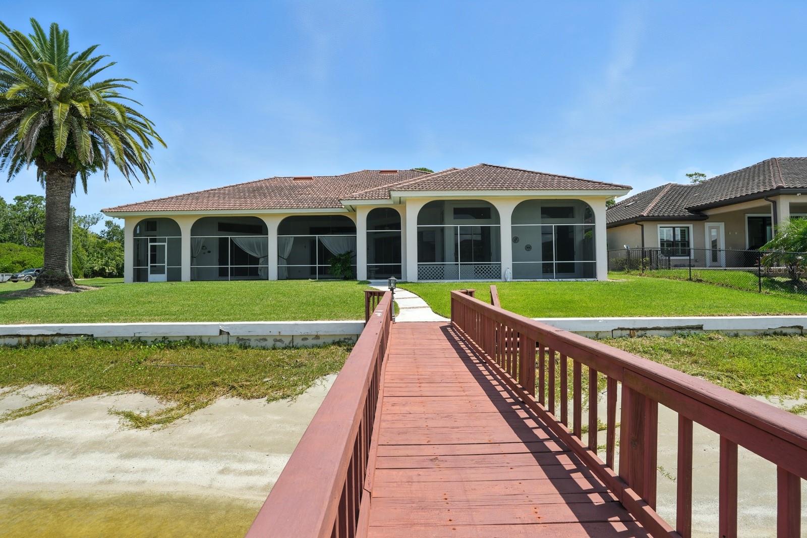 One or more photo(s) has been virtually staged. Welcome to your waterfront paradise! This exceptional custom-built intracoastal home in Bon Terra Estates offers 3,475 sq ft of living space with breathtaking views from the moment you step inside. The open living room features wall-to-wall sliding glass doors that flow seamlessly to a spacious screened patio overlooking the Intracoastal Waterway. Enjoy your private dock reinforced with cement pilings and a new 8,000 lb capacity boat lift, giving you secure access to deep water boating and endless coastal adventures. Inside, you'll find brand new appliances, a split-bedroom floor plan, a Florida room, a butler's pantry, a built-in bar, and a primary suite with a spa-like bath. Wake up to dolphins, manatees, and spectacular sunrises while sipping your morning coffee as boats pass along the Intracoastal. Built with concrete/stucco and a durable tile roof, this home has withstood hurricanes without flooding — a true blend of strength, elegance, and Florida waterfront living at its best.