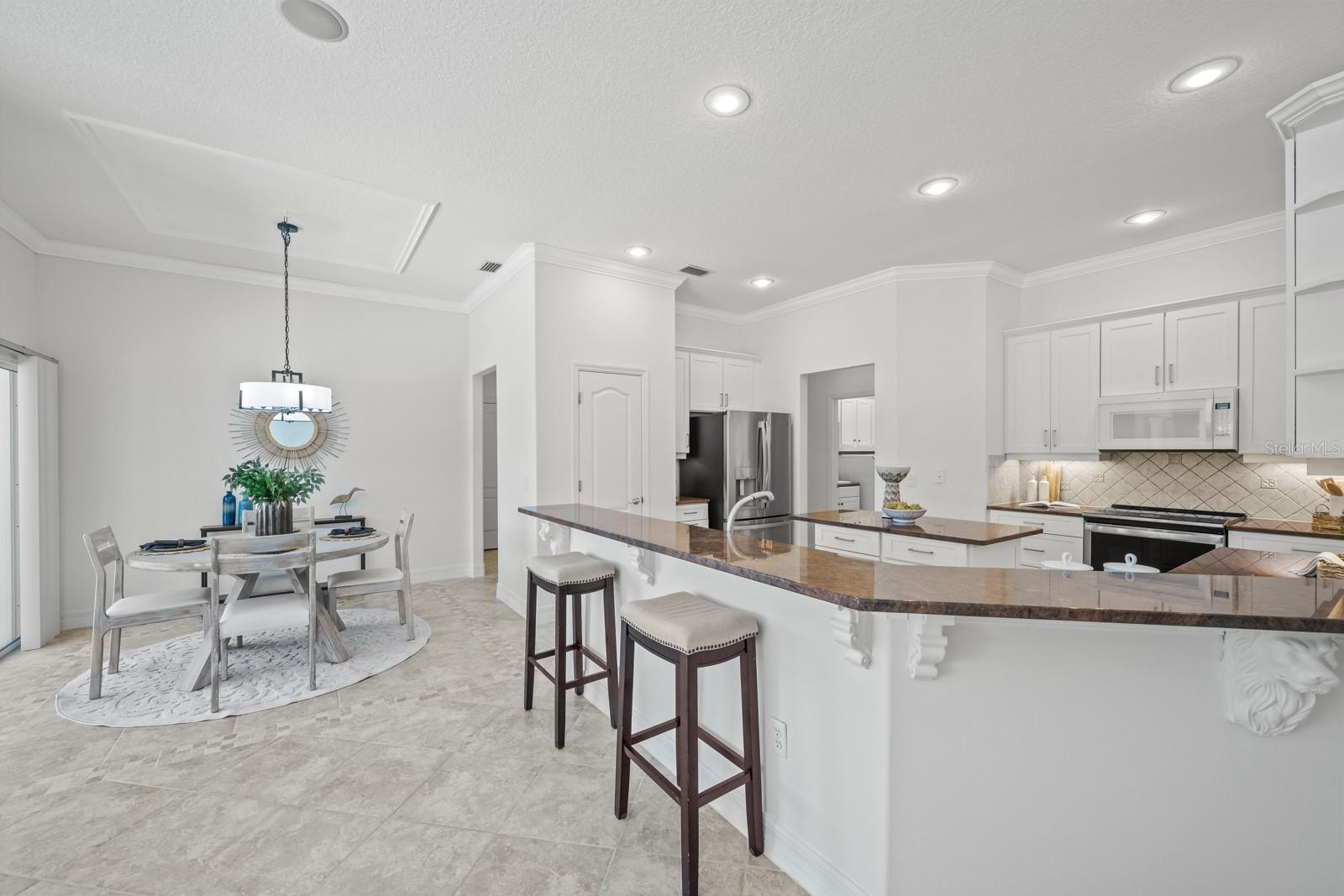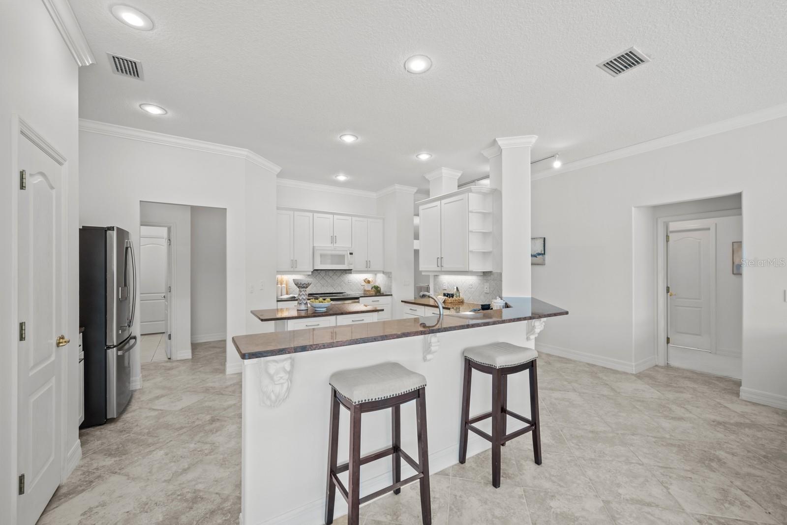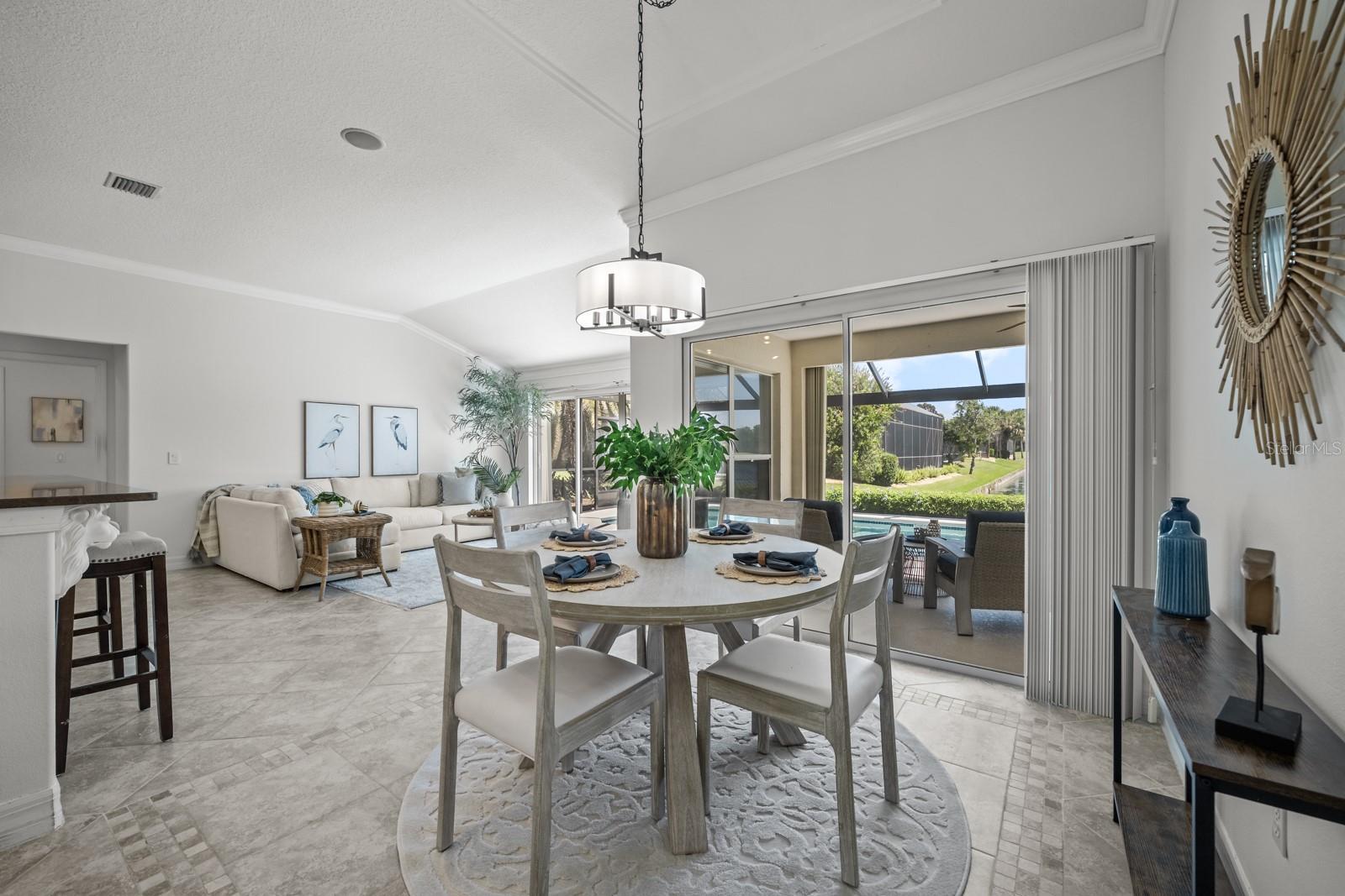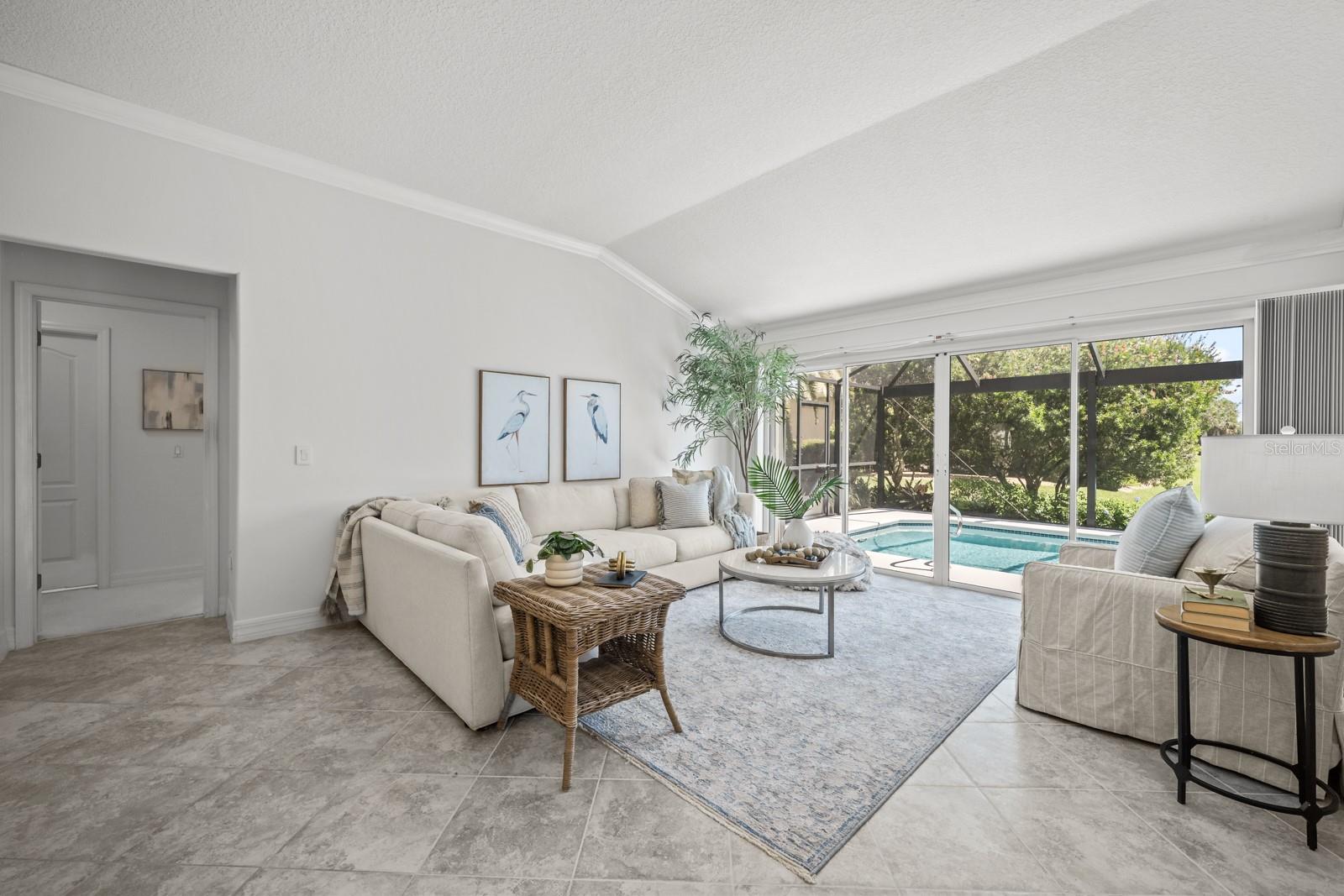 The great room beckons with a view overlooking a 12’ x 35’ sparkling pool and a custom "picture- window-pool-screen” view of the Grand Haven 11th Fairway Pond. Nestled, as it is, in the pond’s corner, the home’s view widens to an over-1000’ panorama of the far shore. The distance protects your privacy, and with a pair of binoculars you’ll often see a sunbathing gator or osprey. Because the covered lanai faces east, the outside living room enjoys perpetual shade. Inside, this home has been meticulously cared for and conveys warmth and invitation. The kitchen’s recent updates to its cabinetry, countertops, and appliances – make it the focal point to the home. The home is hurricane hardened, sporting cinder-block construction, inverter electric generator, corrugated-steel shutters, and a hurricane curtain system that encloses the pool lanai. The widened garage parks two cars and adds an extra 6’x17’ feet of storage. This rare combination of postcard-worthy views and tranquility awaits!