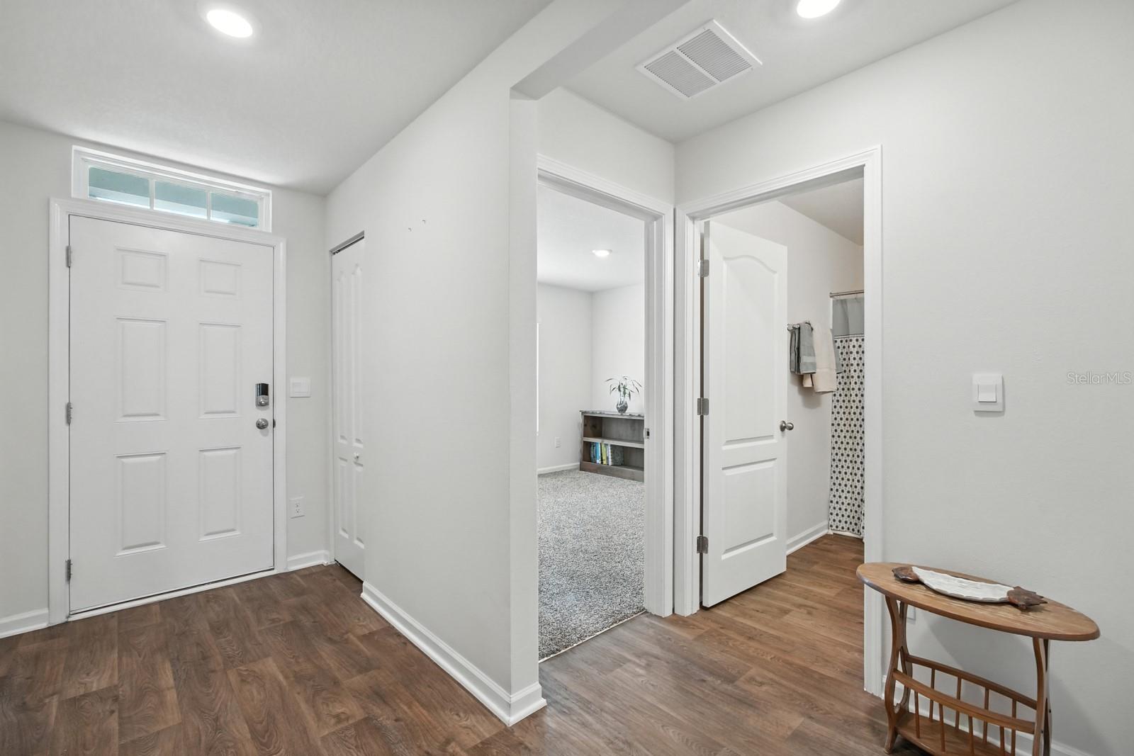 One or more photo(s) has been virtually staged. This home will be where your heart is! Built in 2023, this practically brand-new home spares you the wait of new construction while offering all the modern finishes you’re looking for. The very popular Calle Model delivers 4 bedrooms, 2 full baths and a versatile split-bedroom floor plan perfect for privacy, a dedicated office, home gym, or space for the entire family. Step inside and you’ll find an extra spacious living room with an open living/kitchen combo, allowing everyone to gather in the same space. The kitchen shines with gorgeous quartz countertops and stainless steel appliances, while upgraded vinyl flooring flows seamlessly through all living and wet areas, complemented by plush carpeting in the bedrooms for comfort. The extra-large primary suite is a true retreat, featuring a spacious walk-in closet, separate linen closet and a generously sized bathroom. Outside, enjoy the expansive fully fenced backyard, a slightly oversized lot offering plenty of room for a pool, garden, shed, or all three! Located in a well-established neighborhood in central Palm Coast, this home places you near everything... shopping, dining, parks, trails, golf, boating, and quick access to I-95. You’ll be less than 10 miles from Flagler Beach, 30 miles from historic St. Augustine, and 30 miles from the excitement of Daytona Beach. Palm Coast itself is a Florida paradise, with over 70 miles of saltwater and freshwater canals, the Intracoastal Waterway, abundant fishing, biking and walking trails, world-class golf, and tennis. Don’t miss your chance to own this spacious, like-new home in one of Florida’s most sought-after coastal communities.