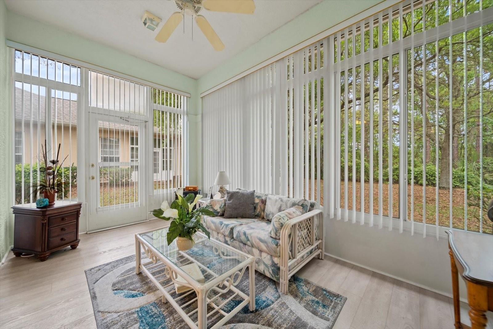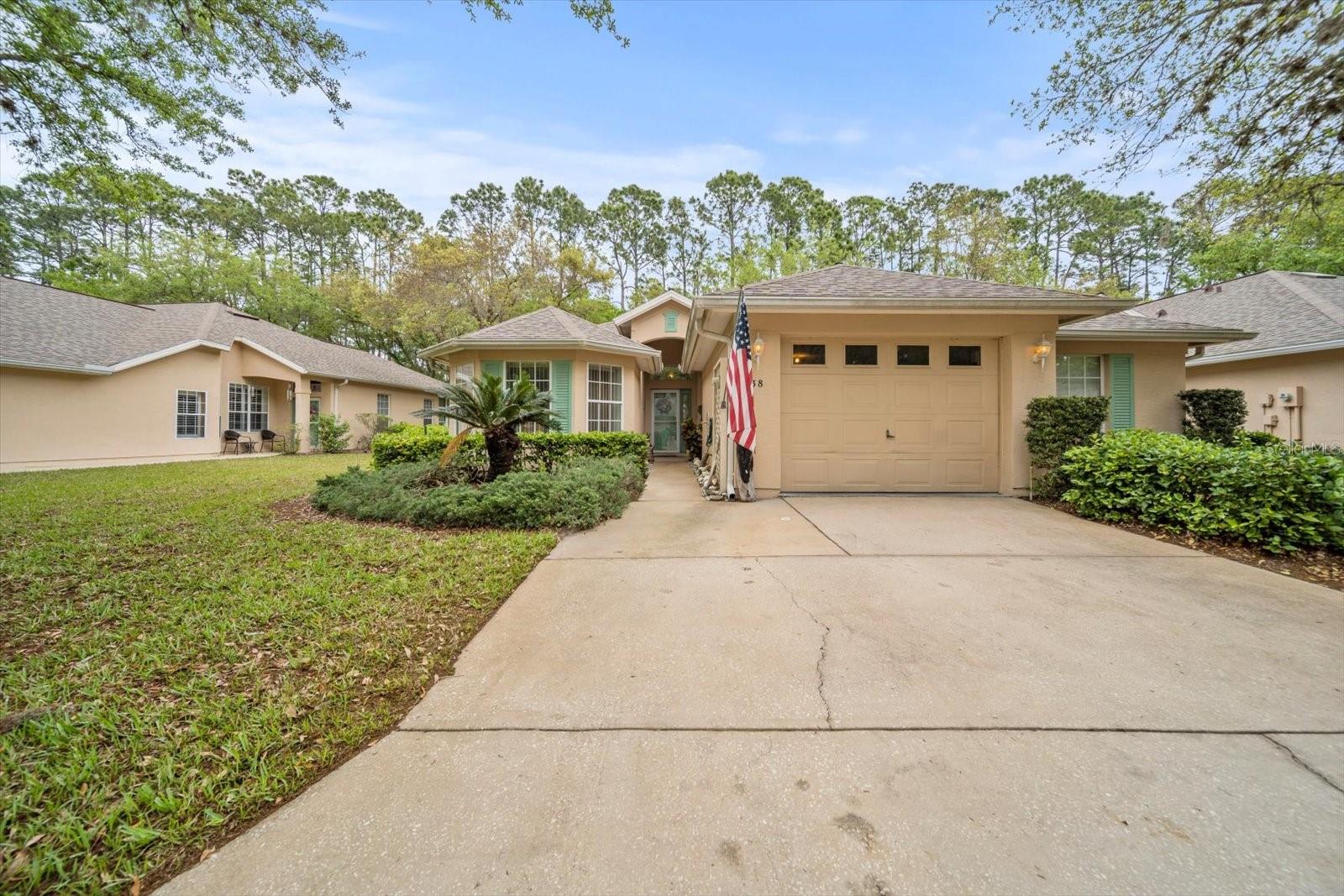 Welcome to the quaint and sought after community of Savannah Square located in the heart of beautiful Palm Coast! This villa is the essence of charm and privacy. You will not believe how spacious the living area & kitchen feel, upon entry. Spacious kitchen with lots of counter and cabinet space, including a breakfast nook area with window, overlooking the front entryway. Tile throughout, no carpet for a sleek & modern feel and making clean-up & maintenance a breeze! Bright and open primary bedroom suite that includes a walk-in closet and large bathroom with a large tiled walk-in shower! Enjoy the split plan layout for when family and friends visit as they can enjoy the privacy of the guest bedroom and guest bath at the front of the home. Oversized one car garage allowing for storage shelves and a vehicle. You will just love starting and ending your days on your large enclosed, under-air porch with wrap around windows allowing you to appreciate nature while you overlook the private wooded area and enjoy your cup of coffee. Perhaps what you will enjoy most of all is ease of maintenance you will have as the monthly HOA fees include roof and exterior maintenance, tree & shrub care, pest control, access to the clubhouse room and pool... It's time to love where you live in this gorgeous tree-lined community close to many conveniences and only 10 miles from the breathtaking Flagler Beach!