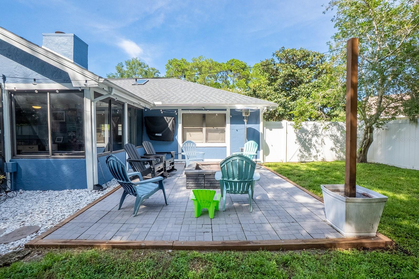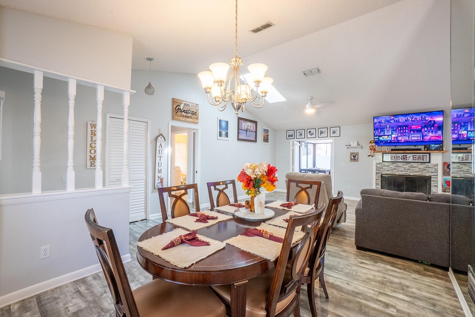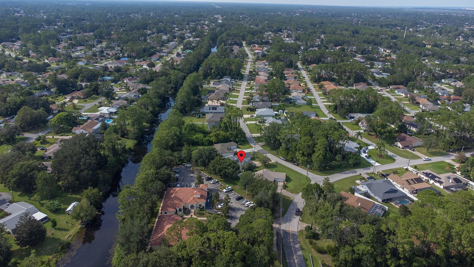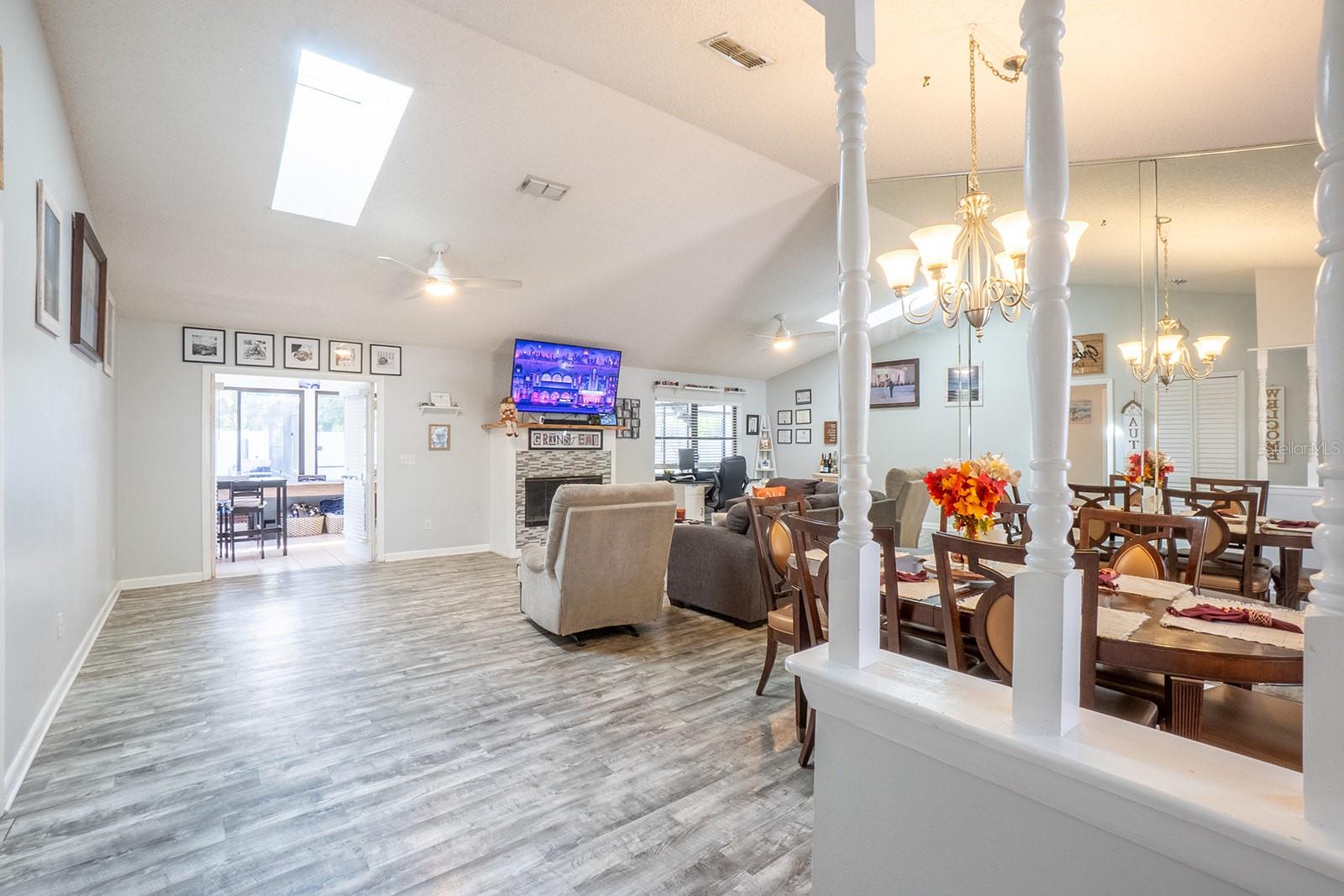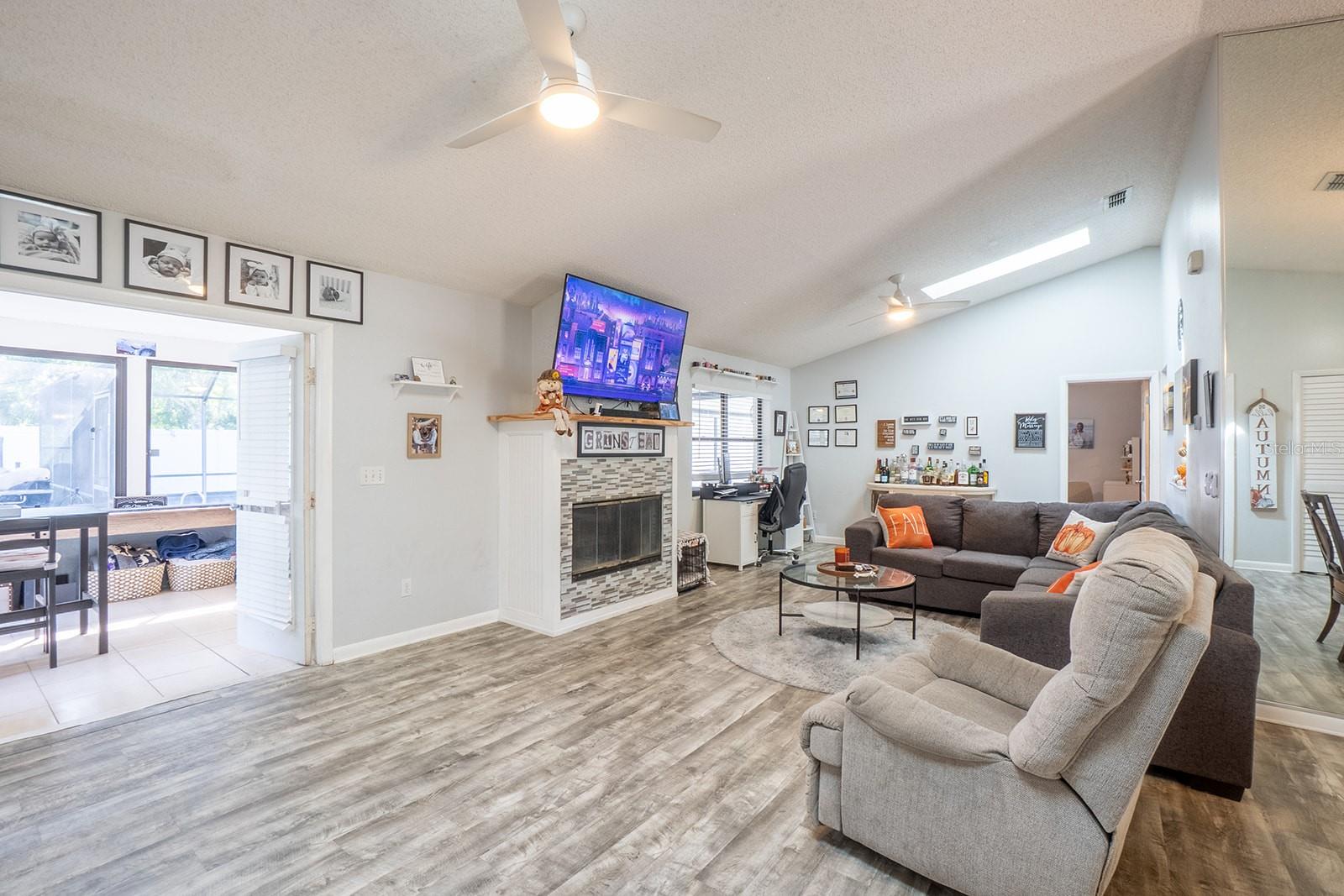 Welcome home to Indian Trails East one of the very few Palm Coast neighborhoods that is walking distance to stores and restaurants! The lovely 3 bedroom 2 bath home on an oversized lot offers a side entry garage volume ceilings, a wood burning fireplace, huge Florida Room. Light and bright with plenty of skylights, LVP flooring through out, formal dining, large living room and cabinet packed kitchen with center island and newer stainless steel appliances. Ample sized guest bedrooms and bath in this split floor plan offers guests privacy, primary bedroom with large walk in closet and en-suite bath. Off the large Florida room great for entertaining you will find a covered lanai and grilling area, screen inground pool and new outdoor fire pit patio in a fully fenced in yard. Centrally located to schools, shopping and I95 yet tucked away in a lovely neighborhood surrounded by fresh water canals. Roof 2021, Hot Water Heater 2023, HVAC 2024, Firepit patio 2024, Gutters 2024, Exterior Paint 2023