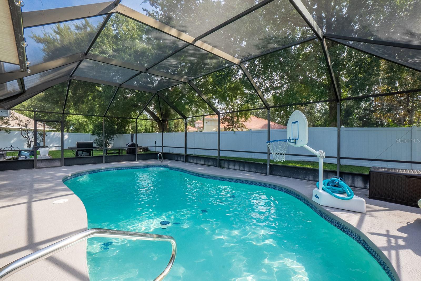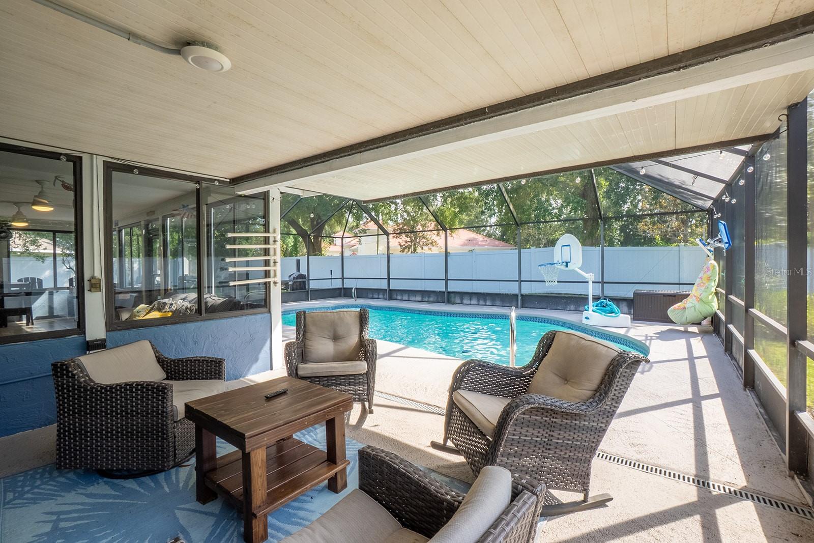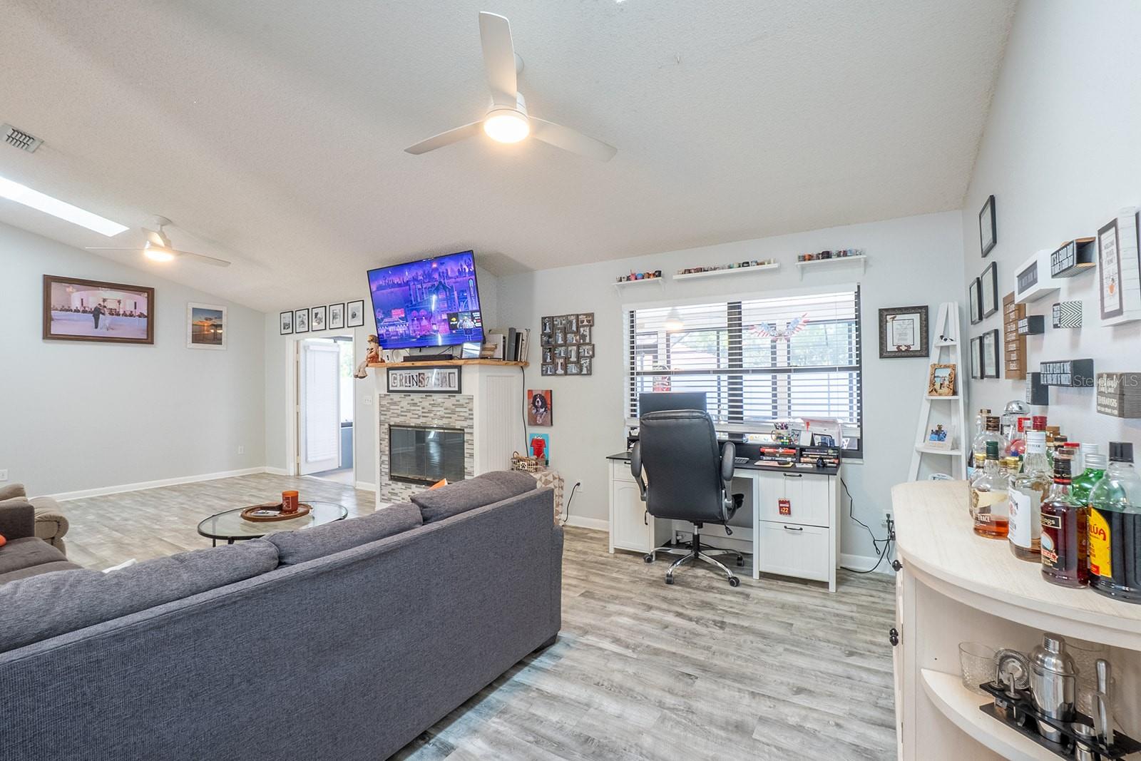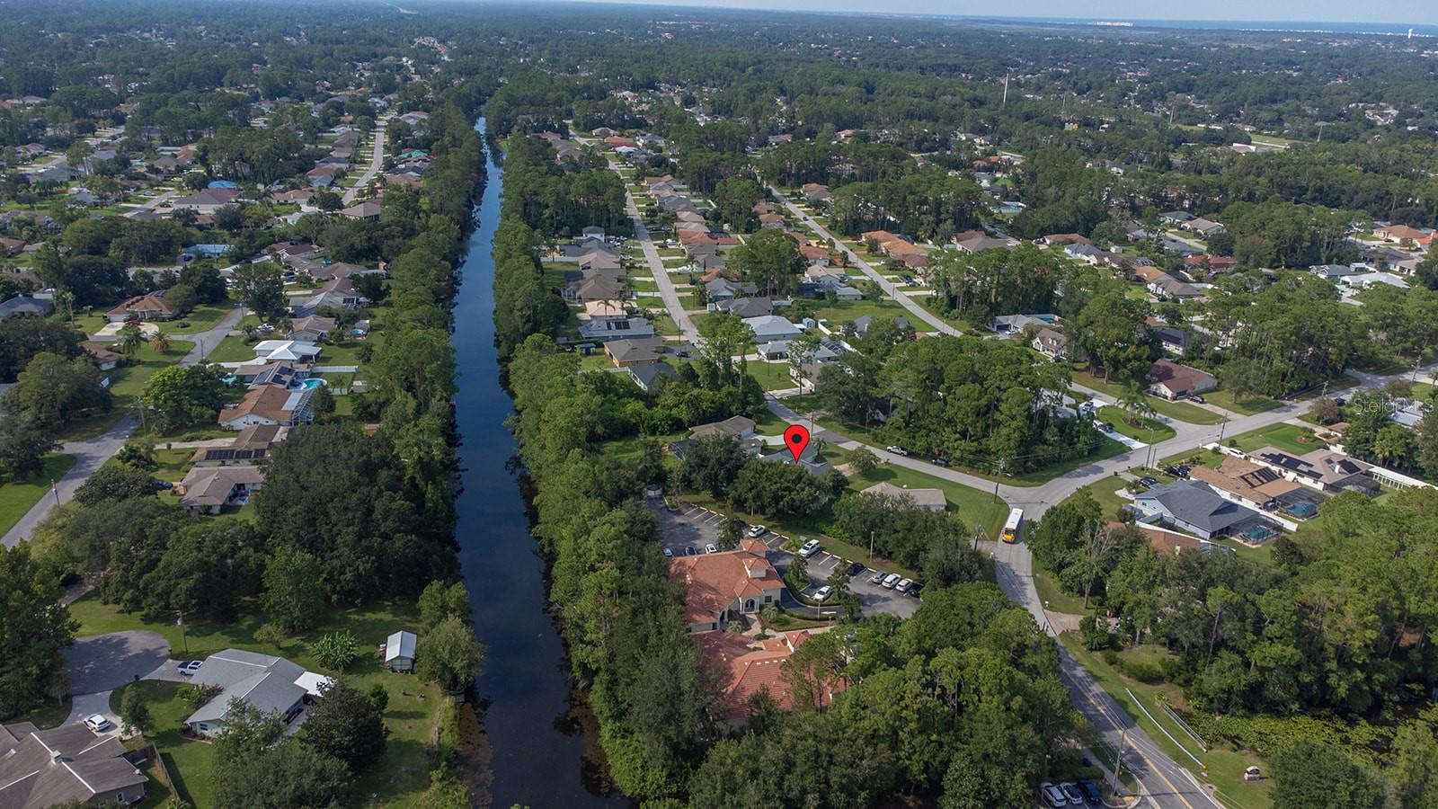 Welcome home to Indian Trails East one of the very few Palm Coast neighborhoods that is walking distance to stores and restaurants! The lovely 3 bedroom 2 bath home on an oversized lot offers a side entry garage volume ceilings, a wood burning fireplace, huge Florida Room. Light and bright with plenty of skylights, LVP flooring through out, formal dining, large living room and cabinet packed kitchen with center island and newer stainless steel appliances. Ample sized guest bedrooms and bath in this split floor plan offers guests privacy, primary bedroom with large walk in closet and en-suite bath. Off the large Florida room great for entertaining you will find a covered lanai and grilling area, screen inground pool and new outdoor fire pit patio in a fully fenced in yard. Centrally located to schools, shopping and I95 yet tucked away in a lovely neighborhood surrounded by fresh water canals. Roof 2021, Hot Water Heater 2023, HVAC 2024, Firepit patio 2024, Gutters 2024, Exterior Paint 2023