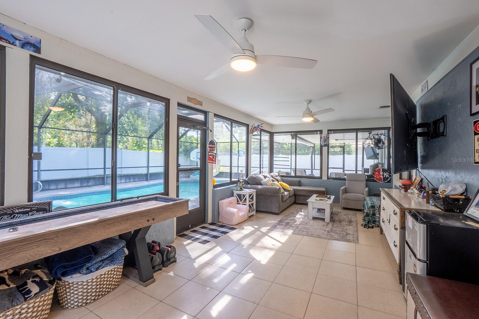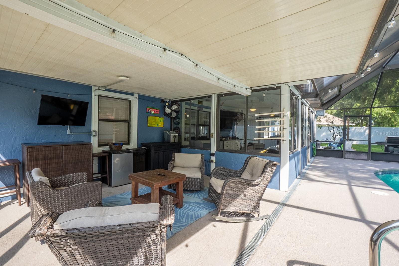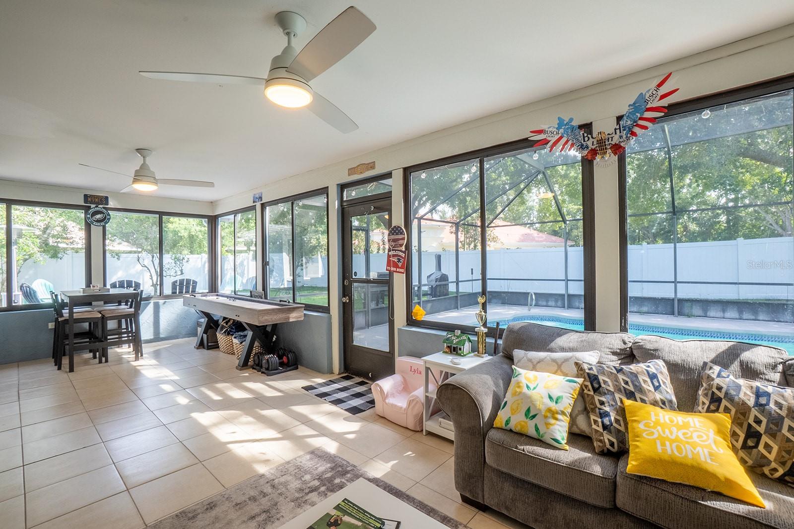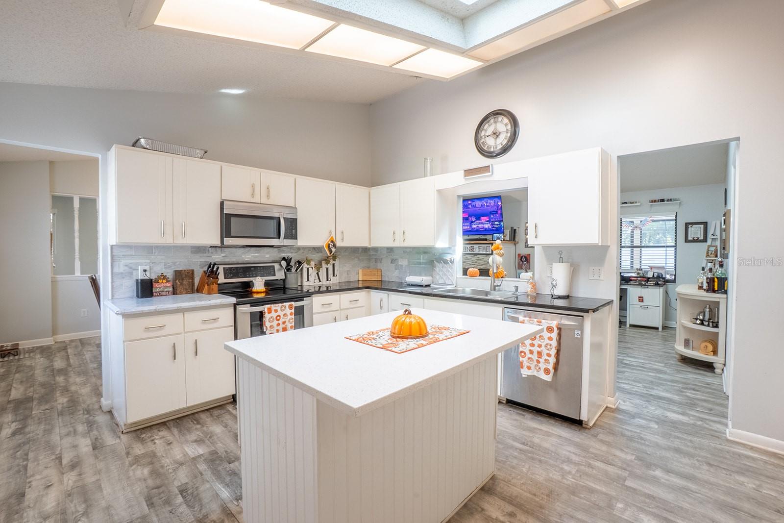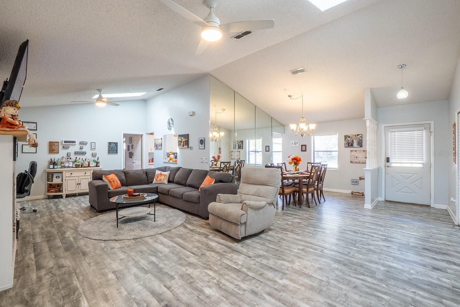 Welcome home to Indian Trails East one of the very few Palm Coast neighborhoods that is walking distance to stores and restaurants! The lovely 3 bedroom 2 bath home on an oversized lot offers a side entry garage volume ceilings, a wood burning fireplace, huge Florida Room. Light and bright with plenty of skylights, LVP flooring through out, formal dining, large living room and cabinet packed kitchen with center island and newer stainless steel appliances. Ample sized guest bedrooms and bath in this split floor plan offers guests privacy, primary bedroom with large walk in closet and en-suite bath. Off the large Florida room great for entertaining you will find a covered lanai and grilling area, screen inground pool and new outdoor fire pit patio in a fully fenced in yard. Centrally located to schools, shopping and I95 yet tucked away in a lovely neighborhood surrounded by fresh water canals. Roof 2021, Hot Water Heater 2023, HVAC 2024, Firepit patio 2024, Gutters 2024, Exterior Paint 2023