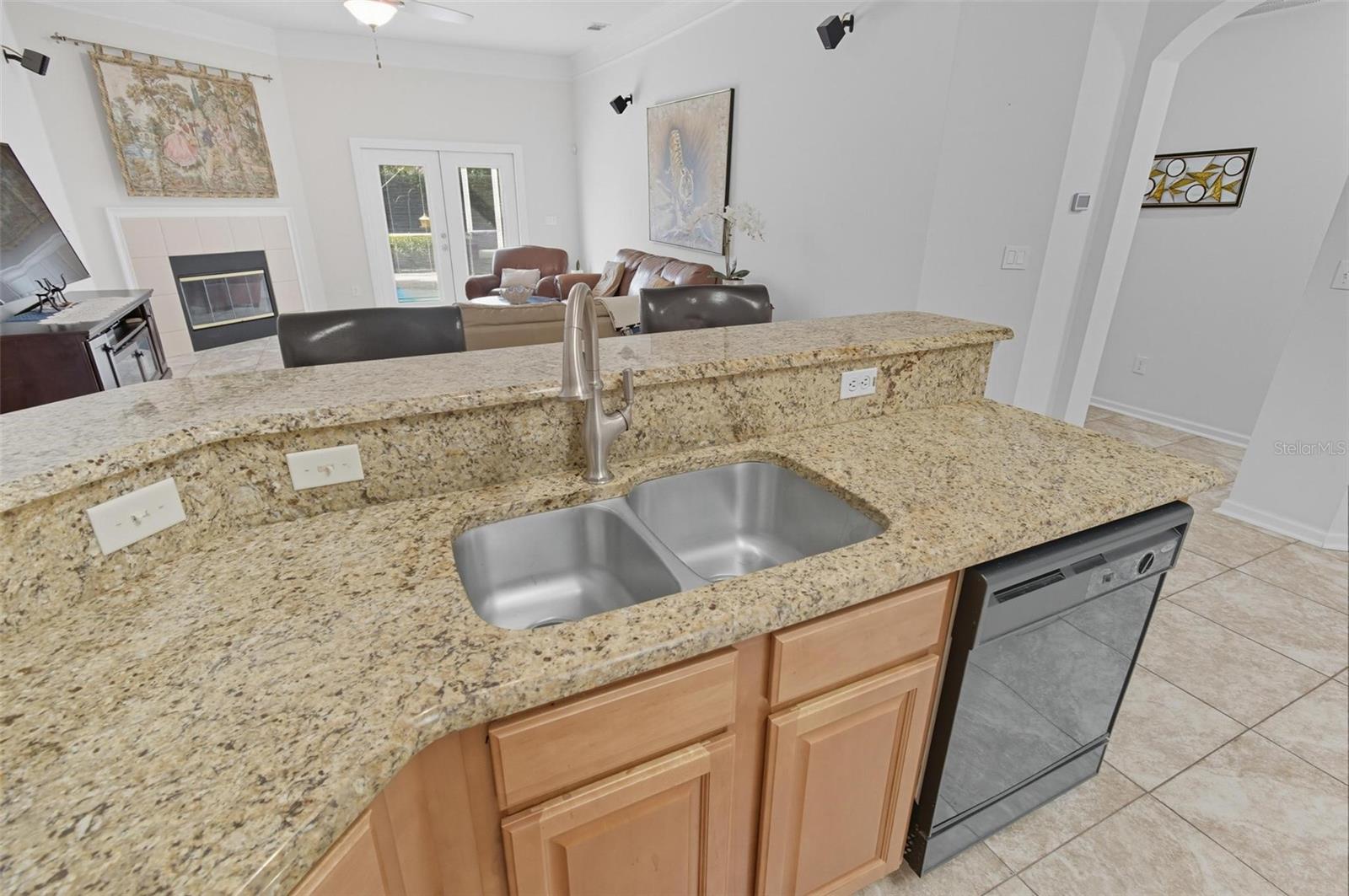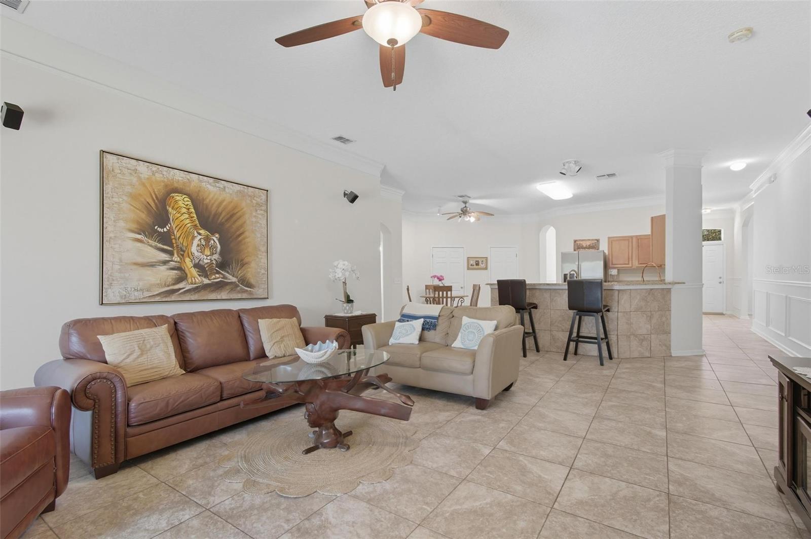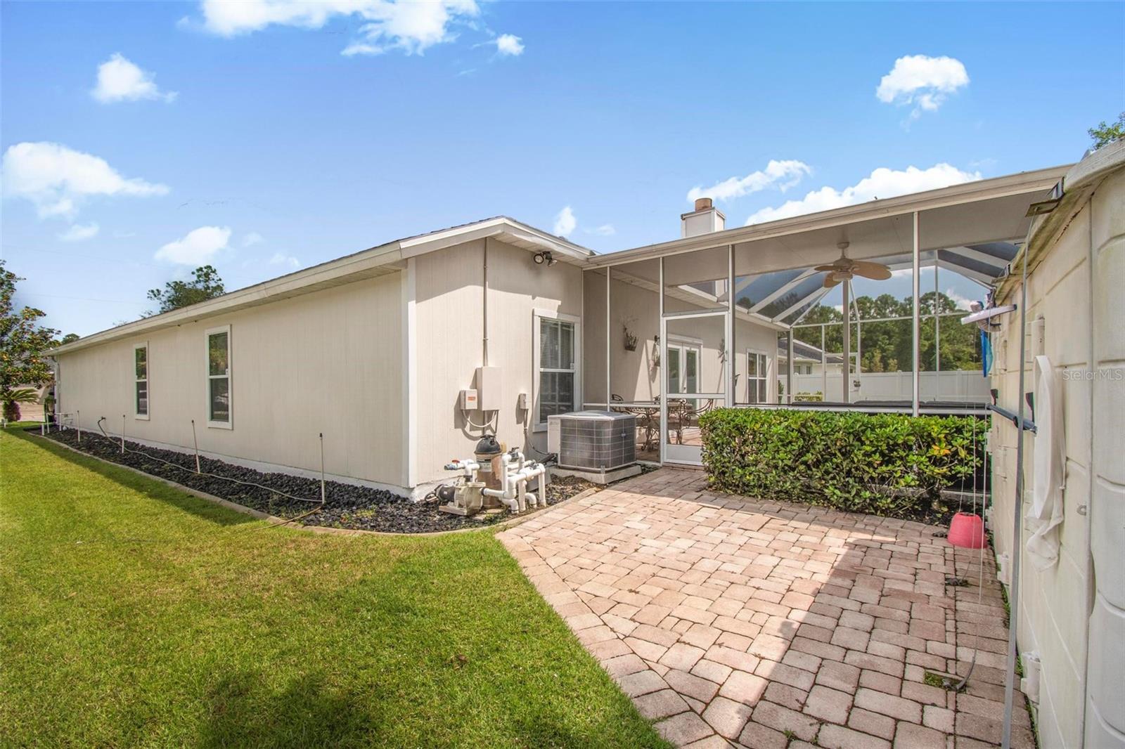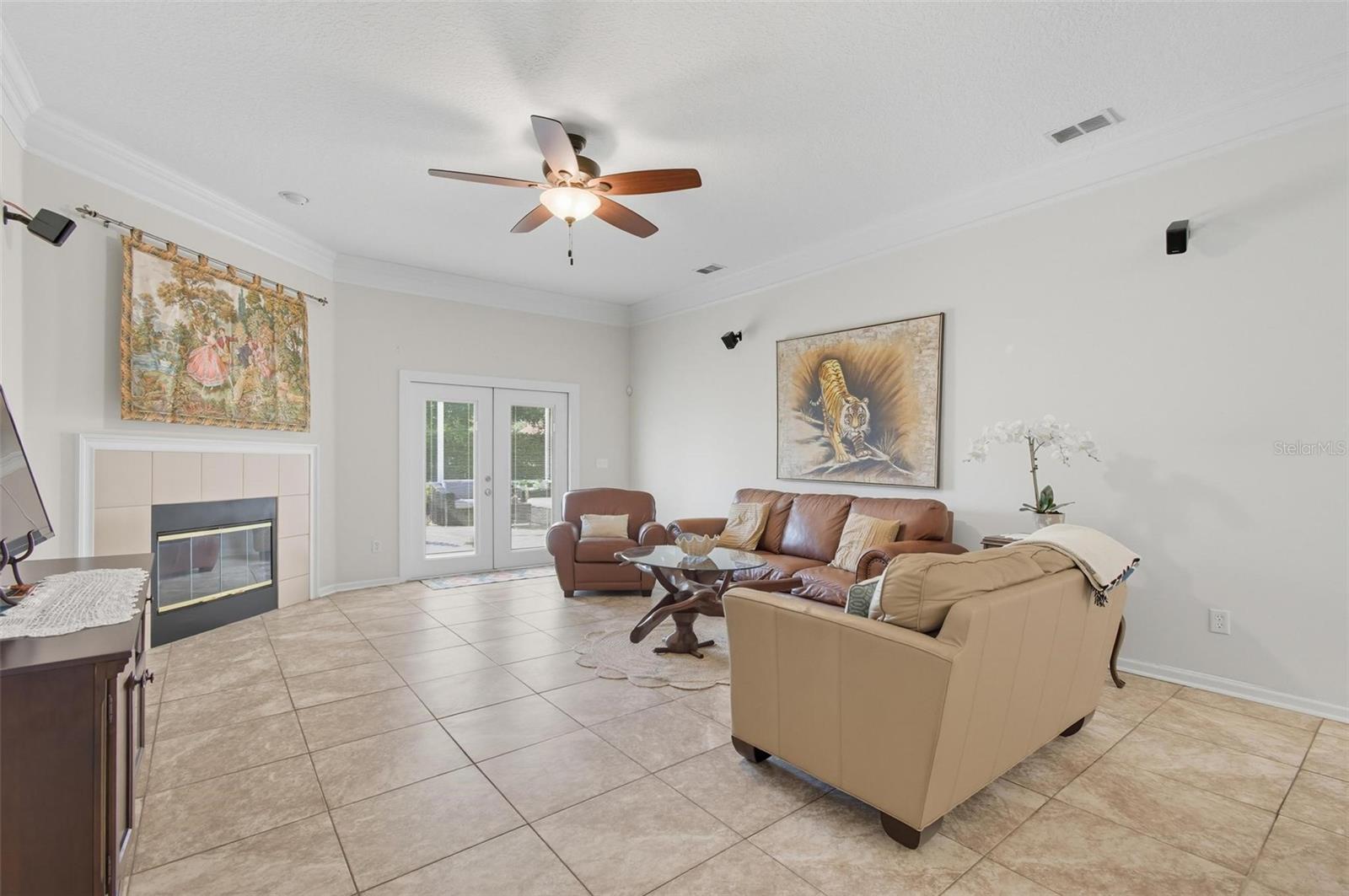 If you are dreaming of the Florida lifestyle near shopping, beaches, parks and golf courses, this home checks all the boxes! This spacious 4 bedroom home ideal for families or guests with outdoor screened-in pool and island seating and ample storage space. Your outdoor oasis is ideal for lounging or entertaining with landscaped backyard. Whole house is tiled except for bedrooms, Kitchen and Bathrooms granite countertops. Ample space in kitchen for eat in. Separate formal dining room and living room. Great room comes with wood-burning fireplace and built-in surround sound with french doors leading to pool area. Installed alarm system, gutters, irrigation system (well) fans in all rooms, window treatments and ample storage shed in backyard.