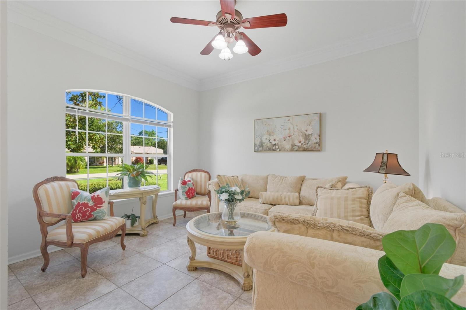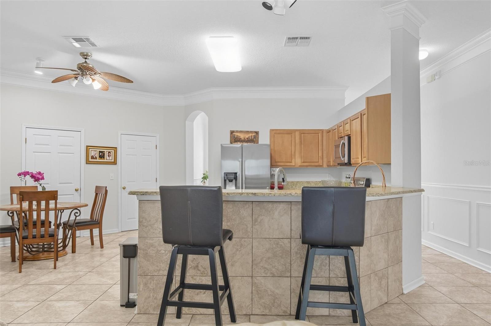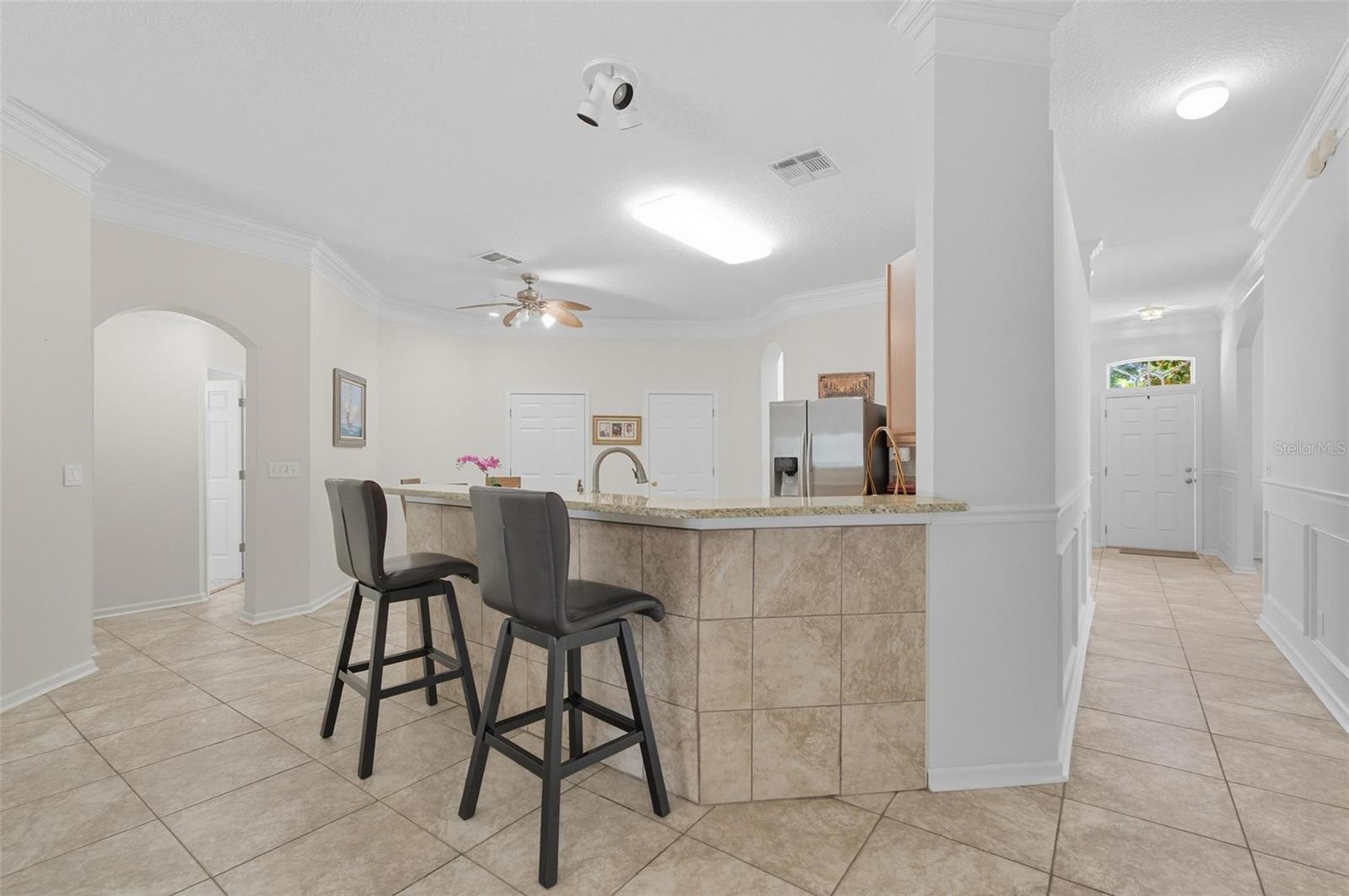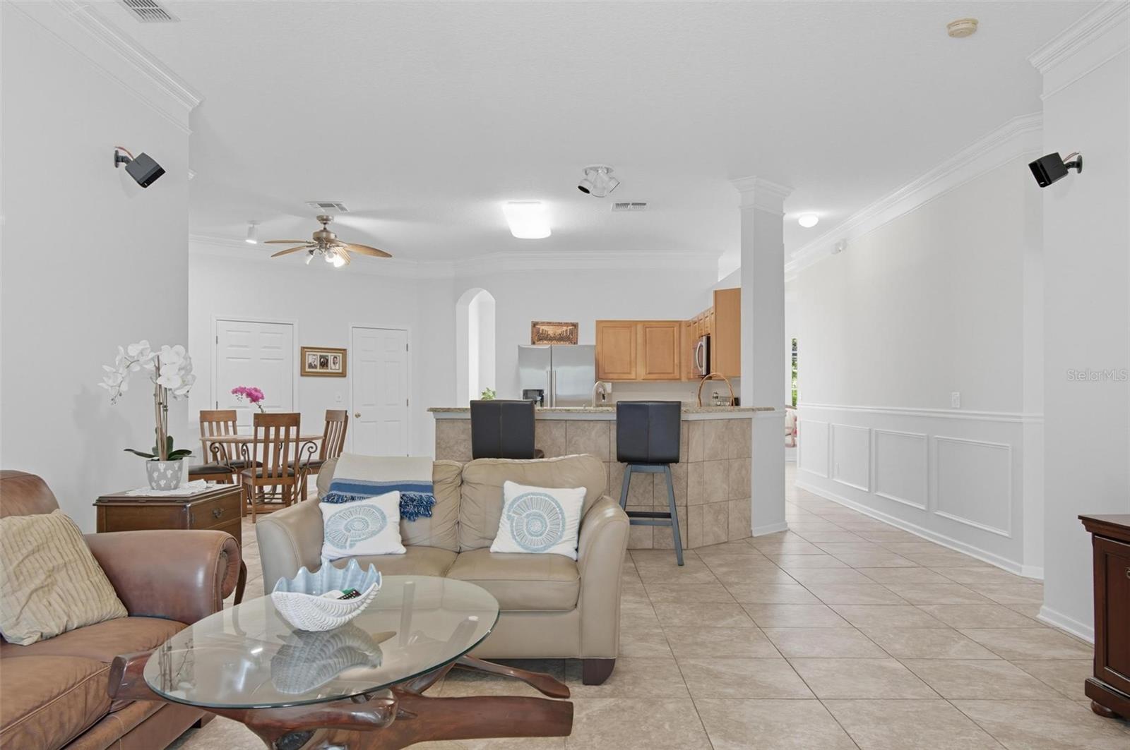 If you are dreaming of the Florida lifestyle near shopping, beaches, parks and golf courses, this home checks all the boxes! This spacious 4 bedroom home ideal for families or guests with outdoor screened-in pool and island seating and ample storage space. Your outdoor oasis is ideal for lounging or entertaining with landscaped backyard. Whole house is tiled except for bedrooms, Kitchen and Bathrooms granite countertops. Ample space in kitchen for eat in. Separate formal dining room and living room. Great room comes with wood-burning fireplace and built-in surround sound with french doors leading to pool area. Installed alarm system, gutters, irrigation system (well) fans in all rooms, window treatments and ample storage shed in backyard.