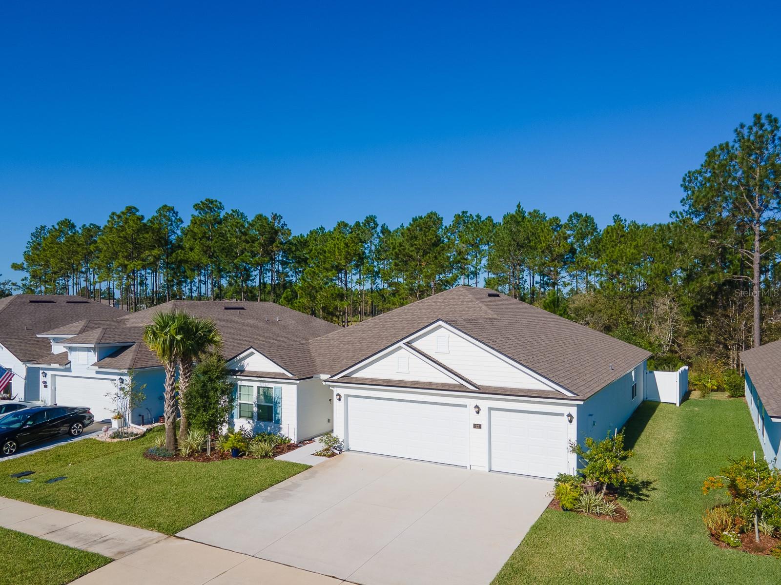 Enjoy resort-style amenities! This highly sought-after Destin model in Sawmill branch offers amenities center with a pool, clubhouse, fitness center, and playground. Built in 2023, this home offers over 2,300 sq ft of thoughtfully designed living space with a 3-car garage. As you enter, you’ll find a bedroom and full bath at the front of the home, ideal for guests. The open-concept kitchen is the heart of the home, featuring quartz countertops, stainless-steel appliances, a large island, and a walk-in pantry with upgraded shelving and pull-out drawers. The kitchen flows into a spacious great room that opens to a screened lanai and a fenced backyard overlooking a wooded conservation area with stunning sunset views, creating a peaceful indoor-outdoor connection. The fourth bedroom with glass-paneled double doors offers flexibility as a home office or study, while the primary suite and an additional bedroom are positioned toward the back for added privacy. The primary suite serves as a relaxing retreat, showcasing a beautifully appointed ensuite with dual vanities, a walk-in shower, two walk-in closets, and a private water closet. Additional upgrades include tile flooring, crown molding, upgraded lighting, and energy-efficient construction. The 3-car garage showcases a shark-coated floor. RV/boat parking and pickle ball courts are coming soon. Just minutes from beaches, shopping, dining, and I-95. Don't miss this opportunity. Assumable 5.5 mortgage available for qualified buyers.